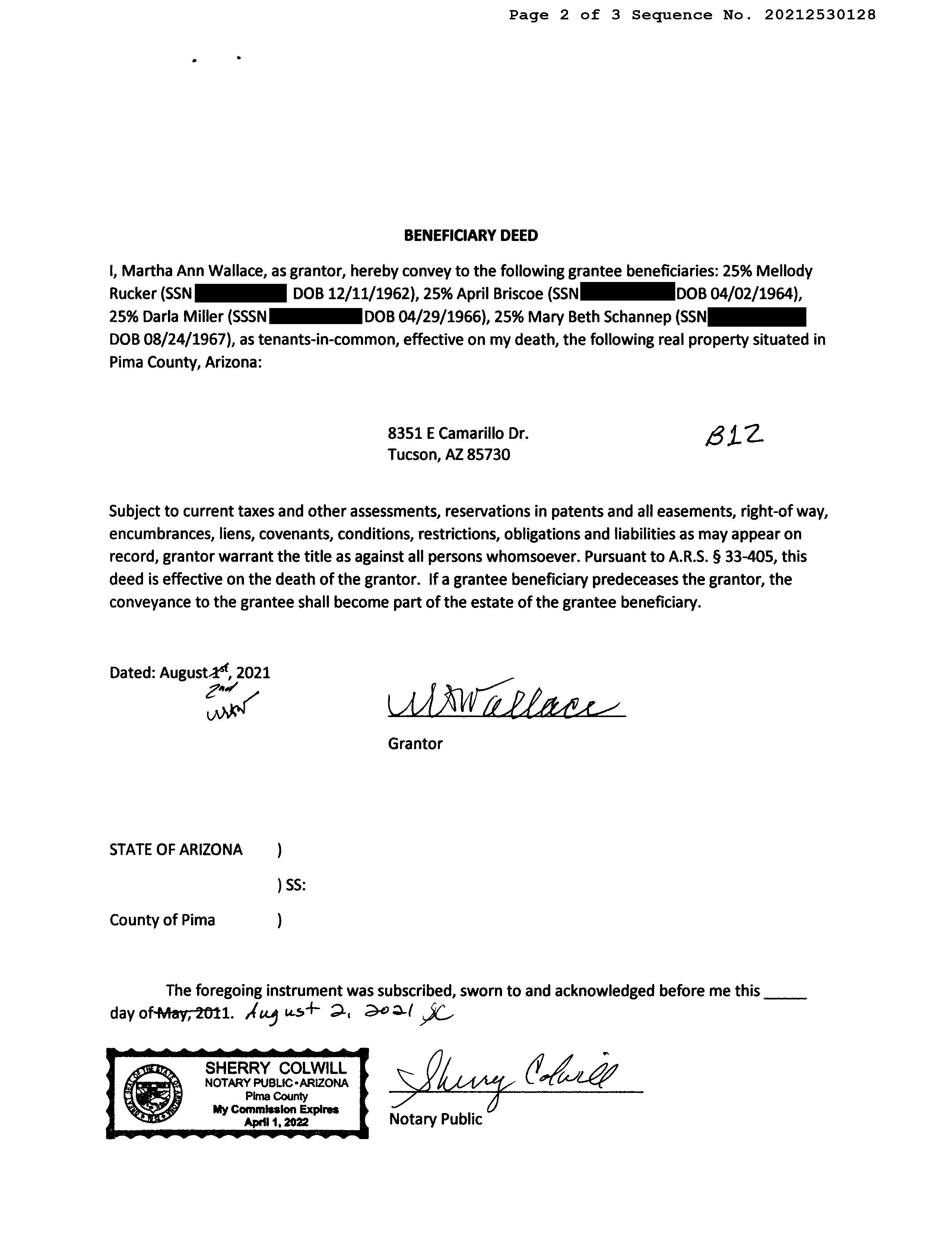 Mailing Address : 8351 E Camarillo Dr, Tucson AZ 85730-2611 C061