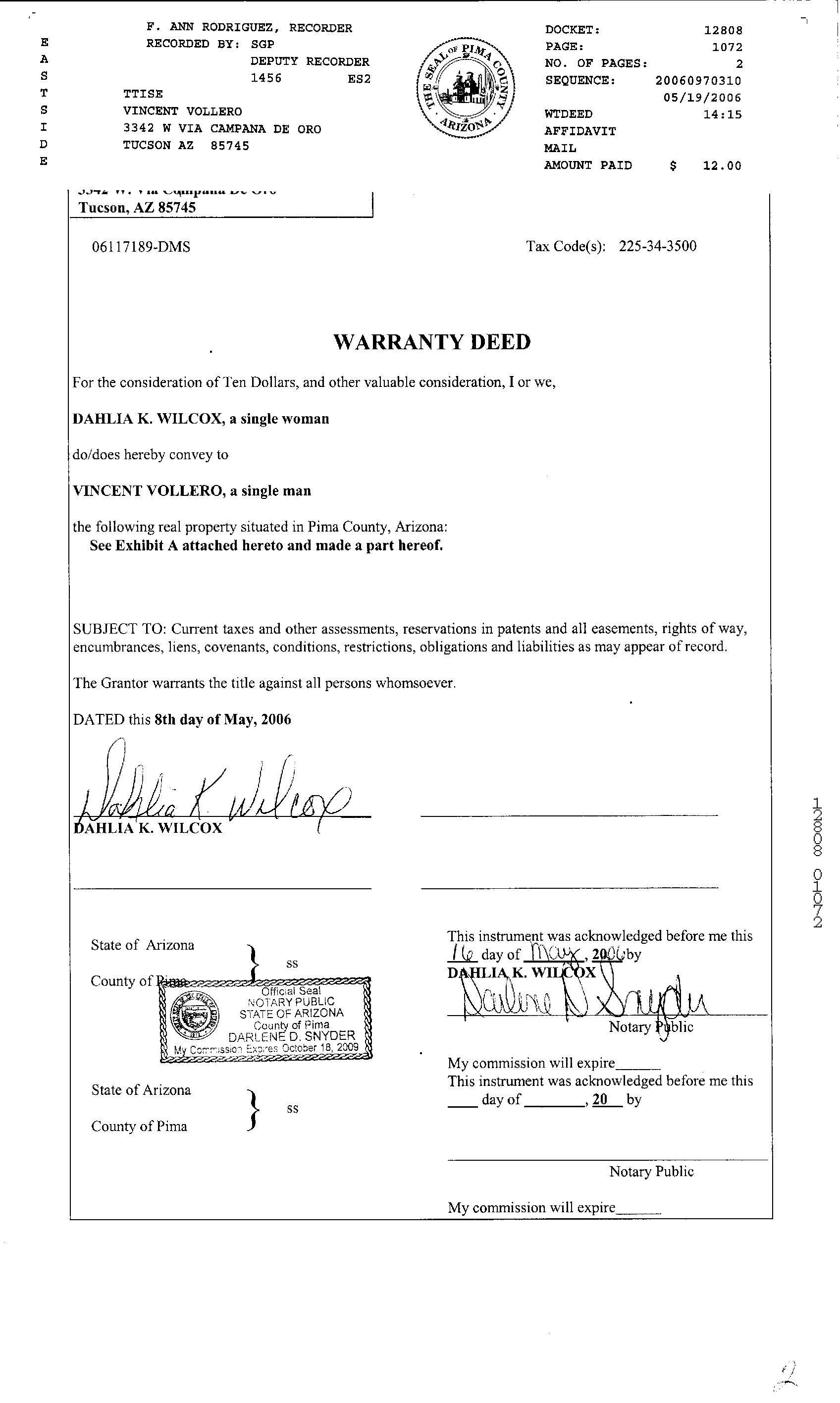 Deed Type : Warranty Deed
