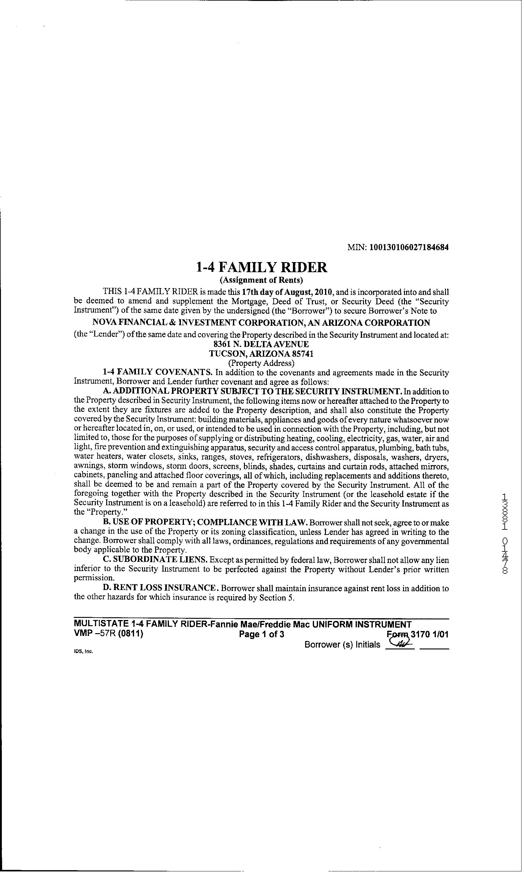 Lender : Nova Fin'l & Inv Corp
