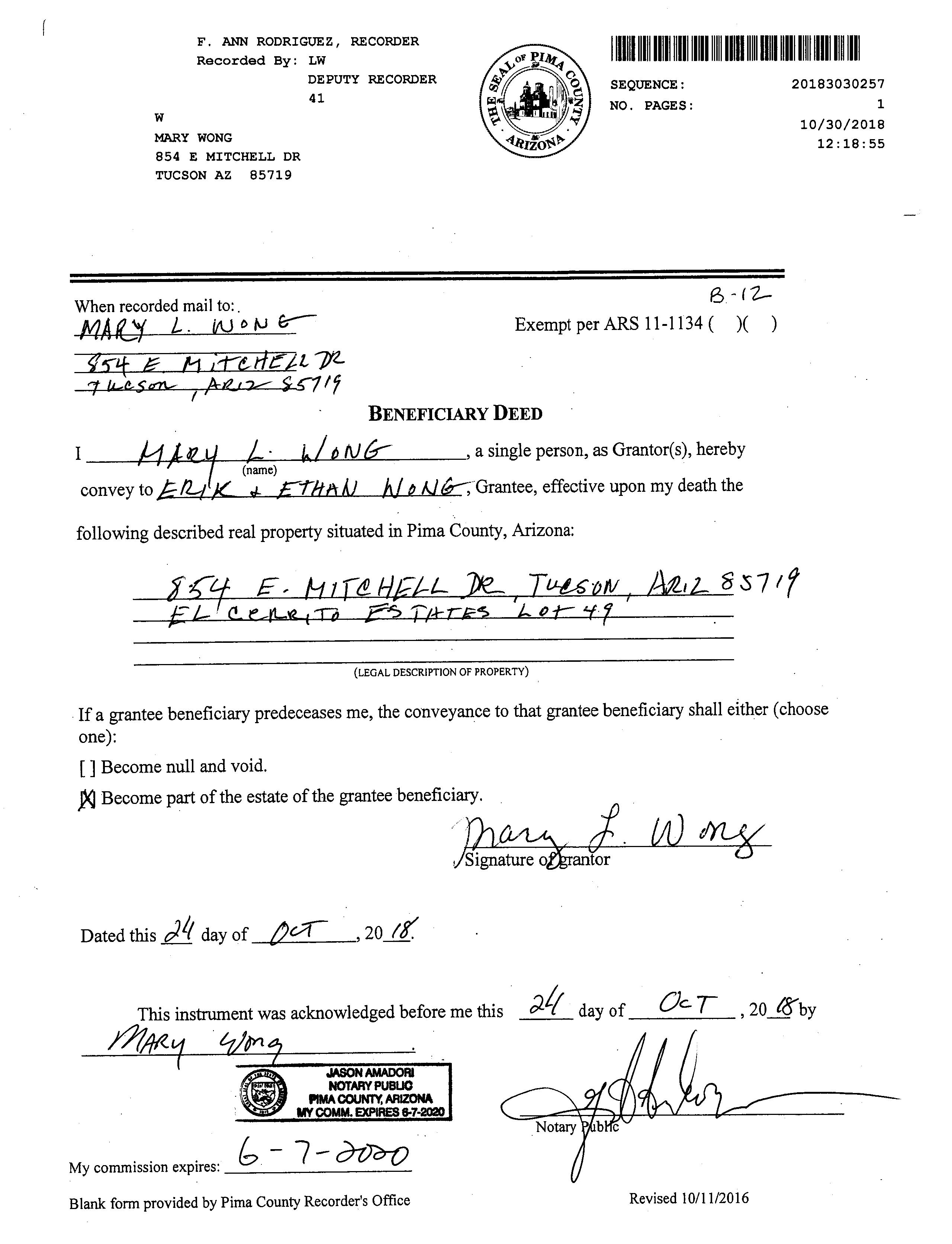Owner Name: Wong Erik /Wong Ethan APN / Alternate APN: 113-09-0560 / Deed Type: Deed (reg)