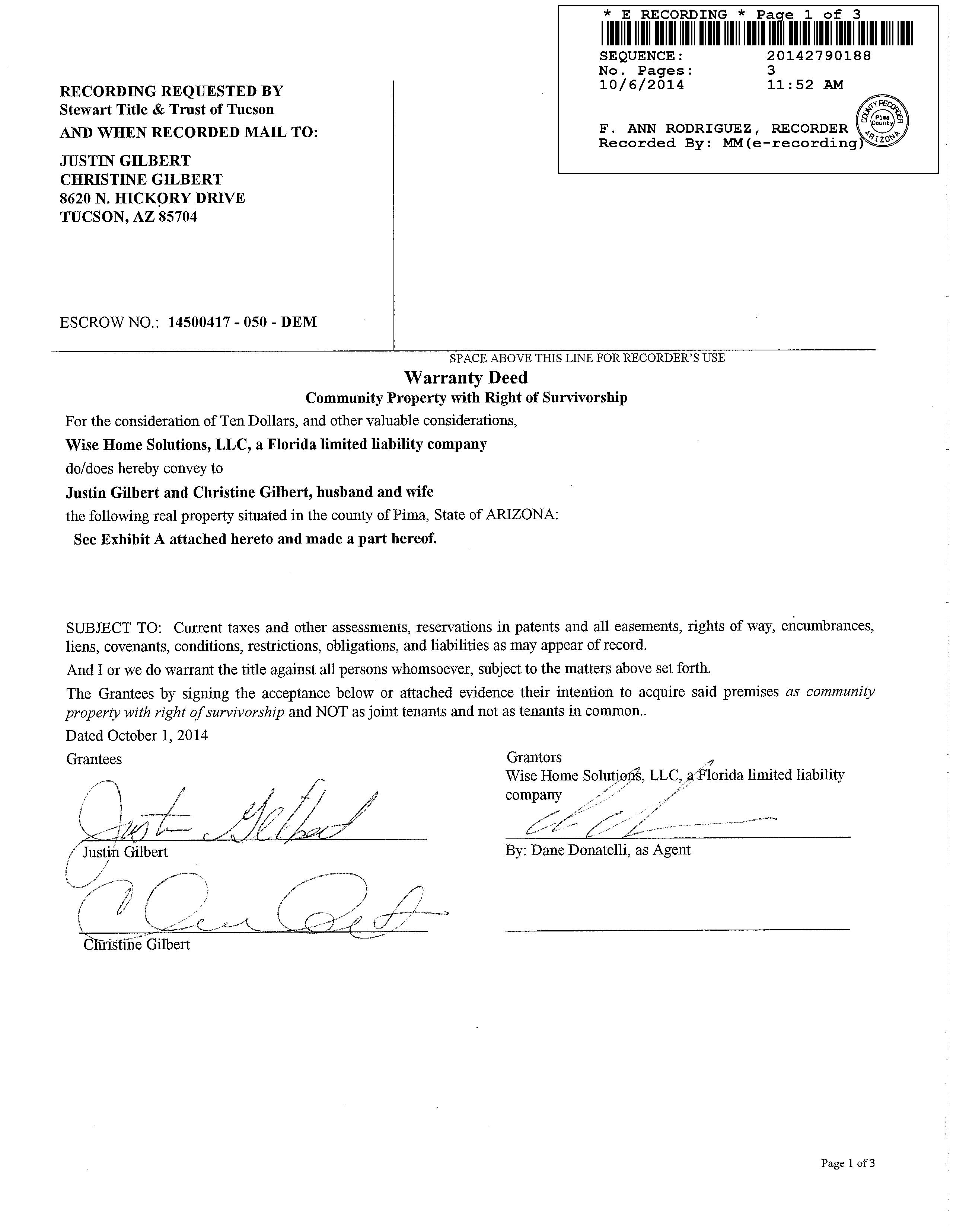 Recording/Sale Date : 10/06/2014 / 10/01/2014 1st Mtg Amount/Type : $281,200 / Cnv