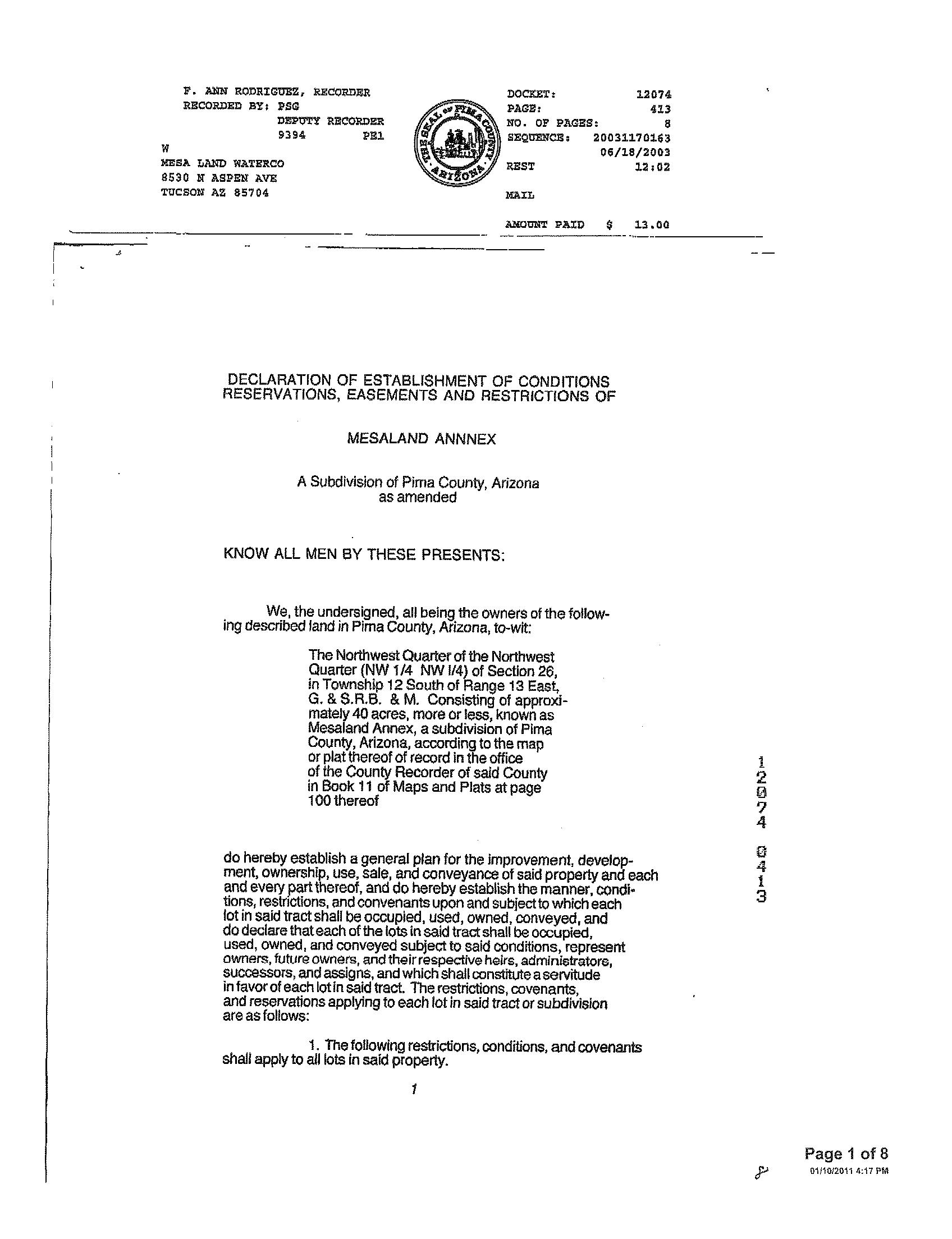 Census Tract / Block : 46.22 / 1 Subdivision : Mesaland Annex