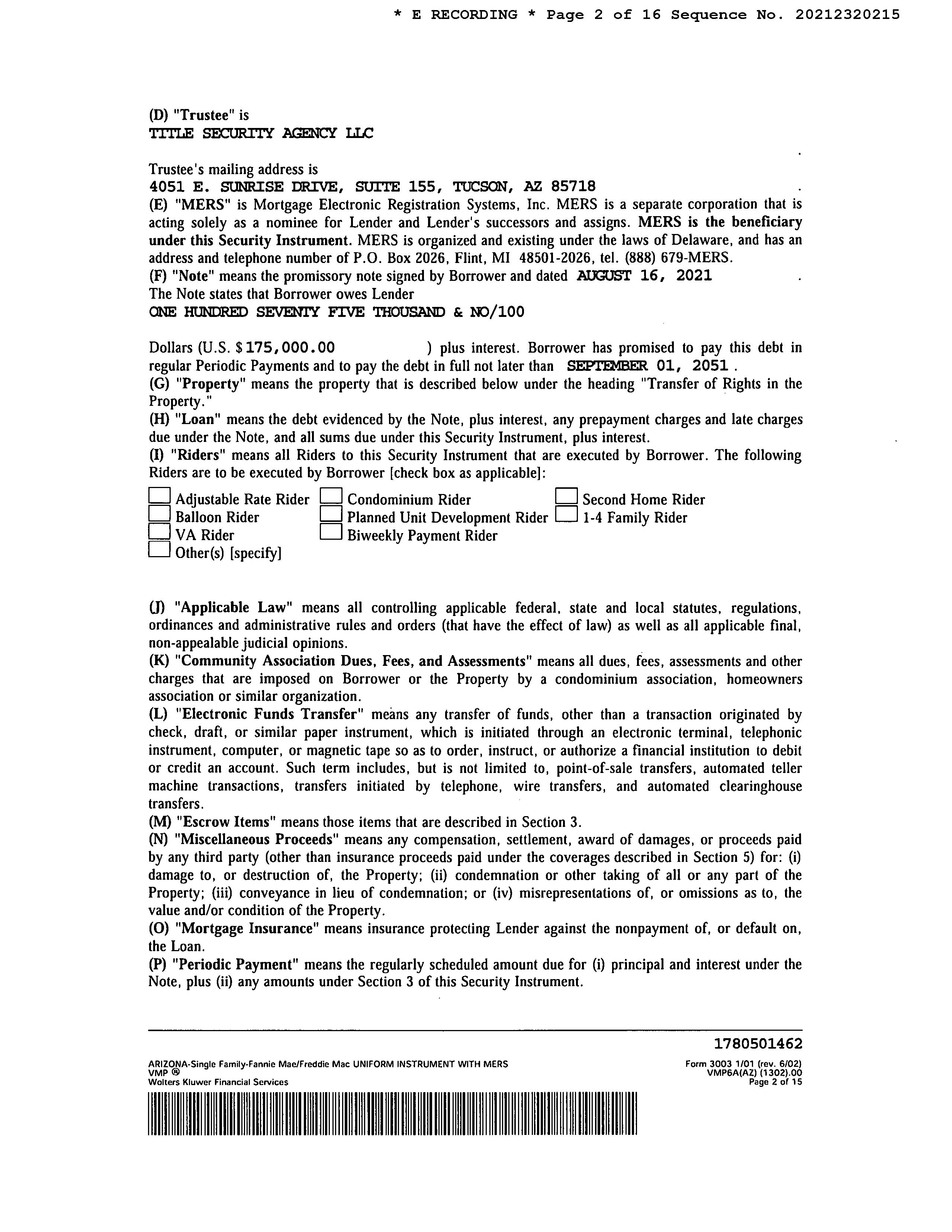 Mailing Address : 8969 E Kirkpatrick Cir, Tucson AZ 85710 C021