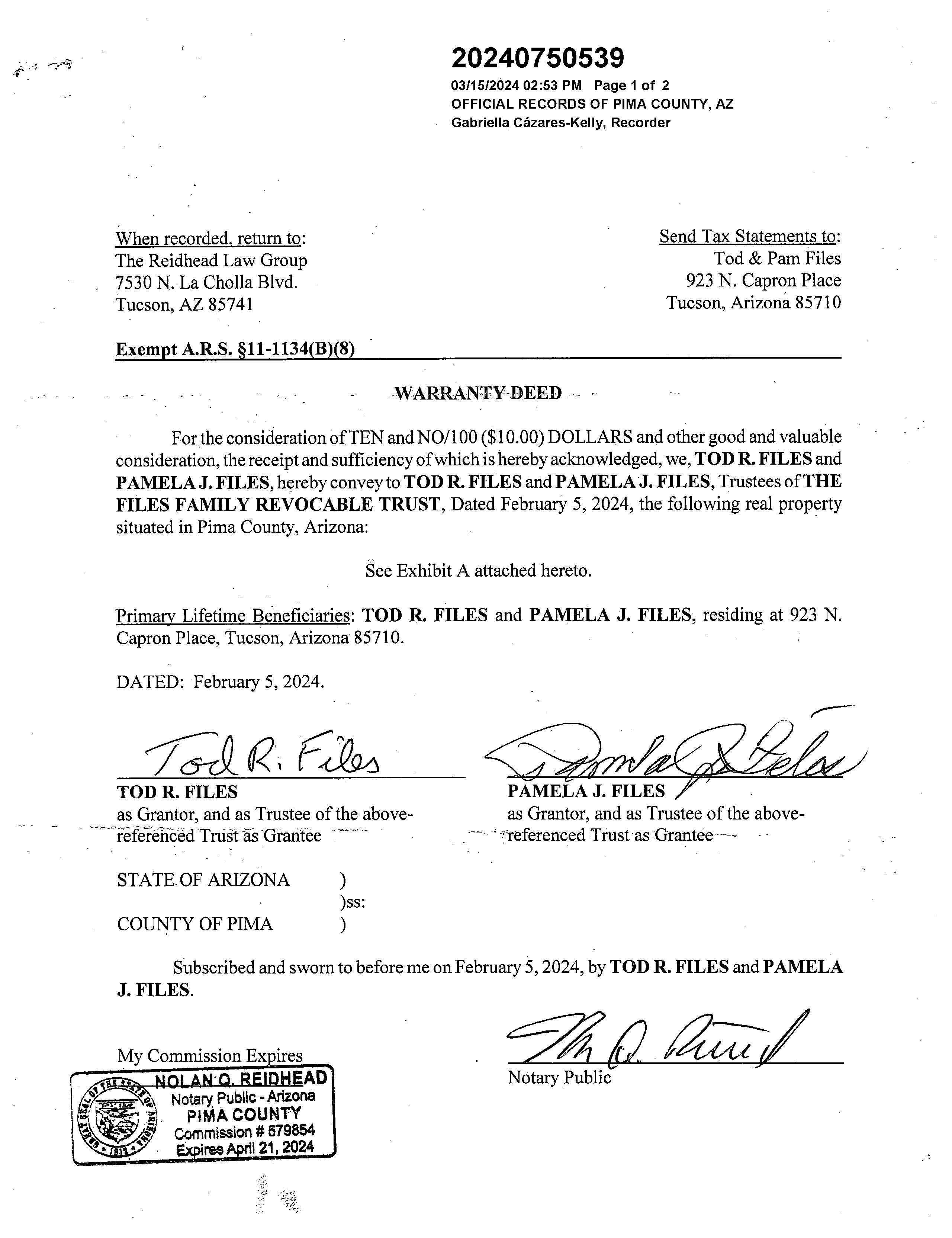 Mailing Address : 923 N Capron Pl, Tucson AZ 85710-1601 C027
