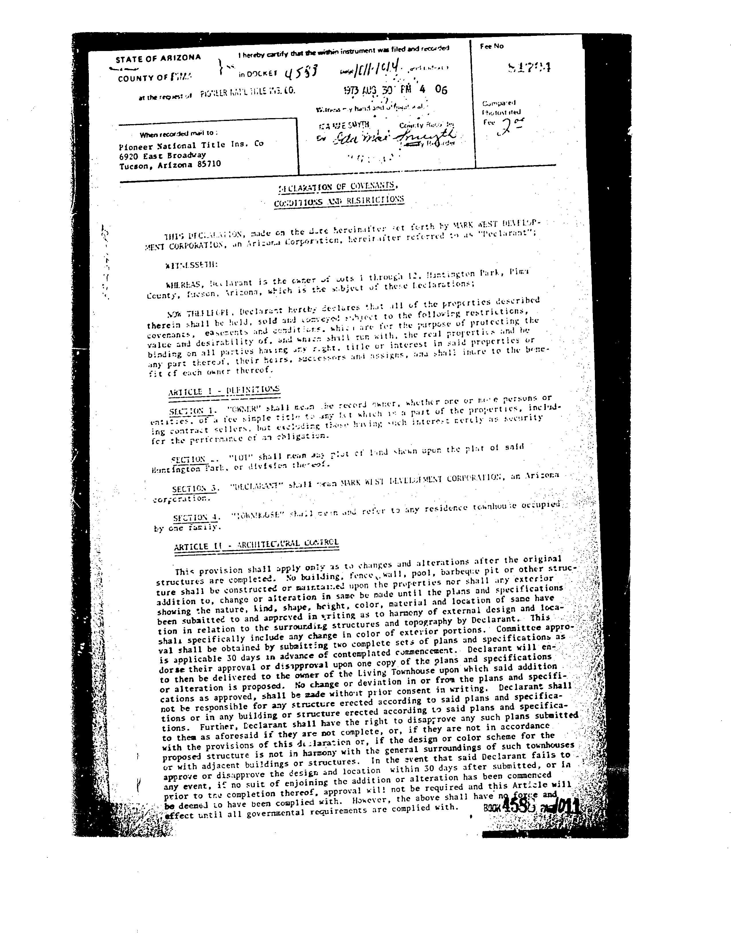 Mailing Address : 2580 E 22nd St, Tucson AZ 85713-2002 C010