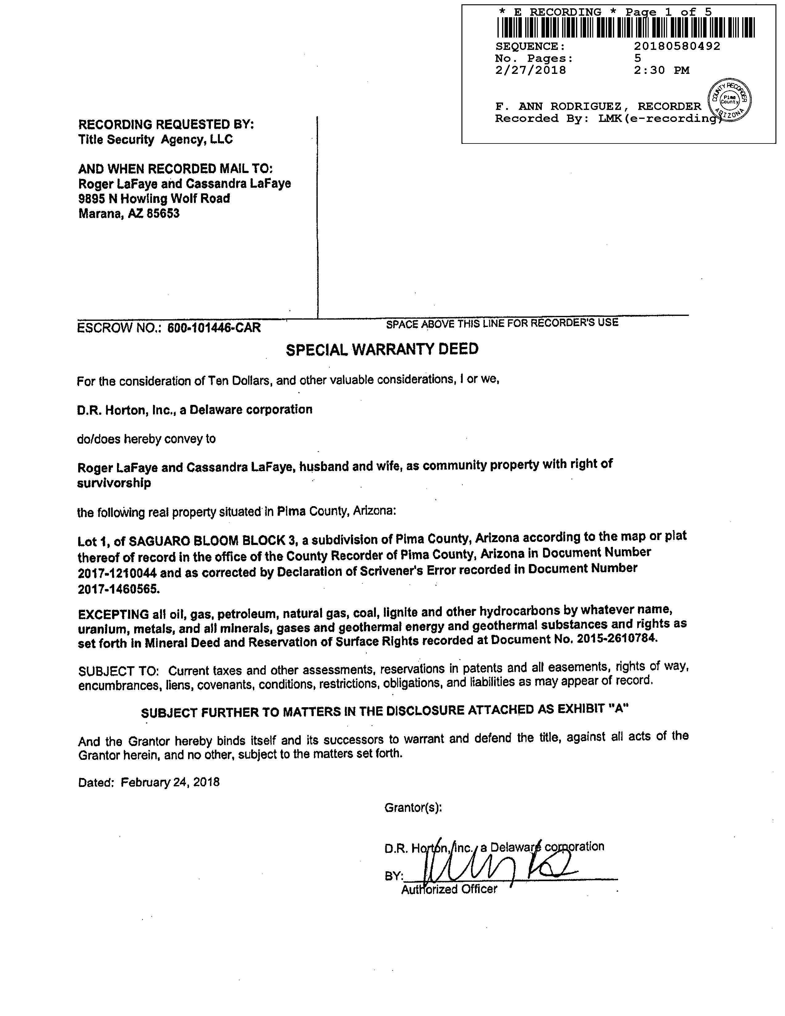 Legal Description : Saguaro Bloom Block 3 Lot 1 Sq20171210044 Exc Mineral Rights Below 30-ft