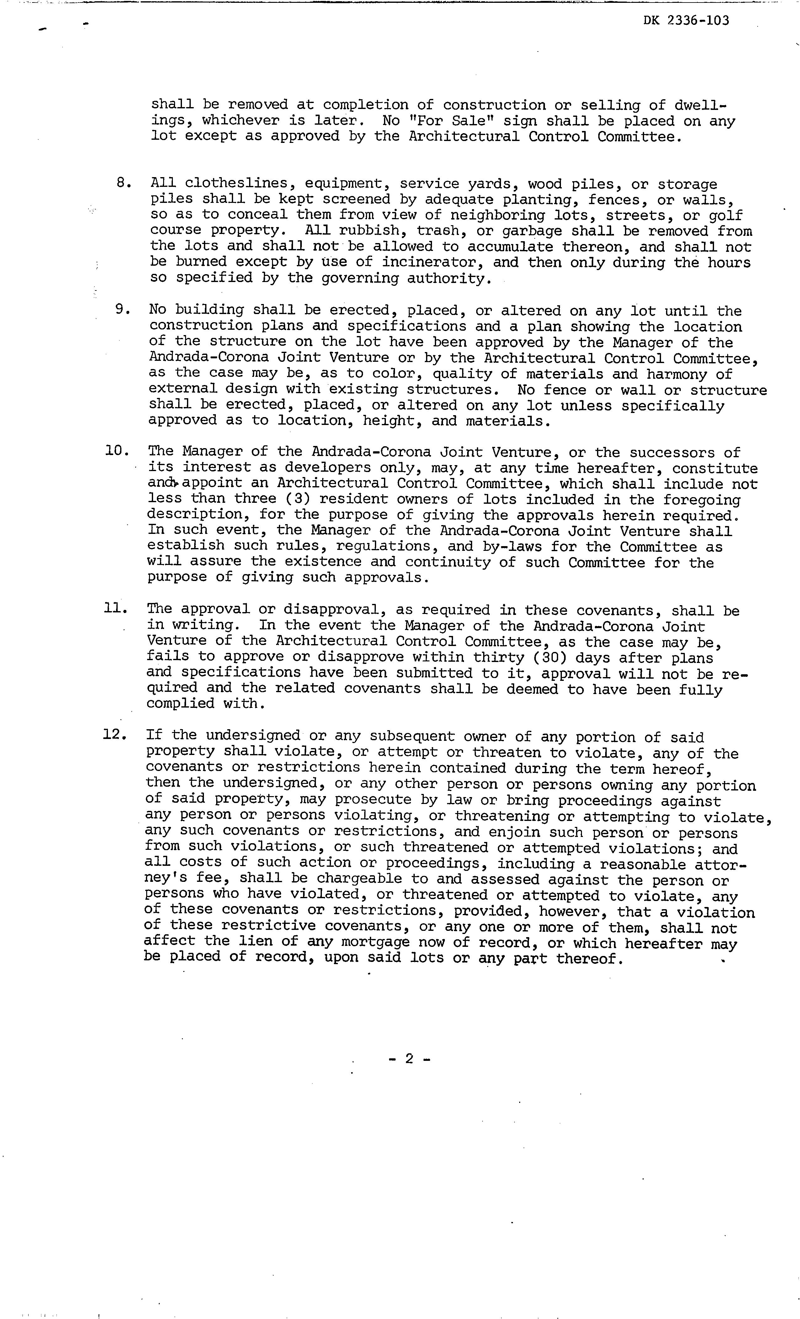 ©2021 First American Financial Corporation and/or its affiliates. All rights reserved. NYSE: FAF 05252610821 COVENANTS, CONDITIONS & RESTRICTIONS PREPARED FOR : First American Title Insurance Company, and the operating divisions thereof, make no express or implied warranty respecting the information presented and assume no responsibility for errors or omissions. First American, the eagle logo, First American Title, and firstam.com are registered trademarks or trademarks of First American Financial Corporation and/or its affiliates. 1069 S Garfield Place Vail, AZ