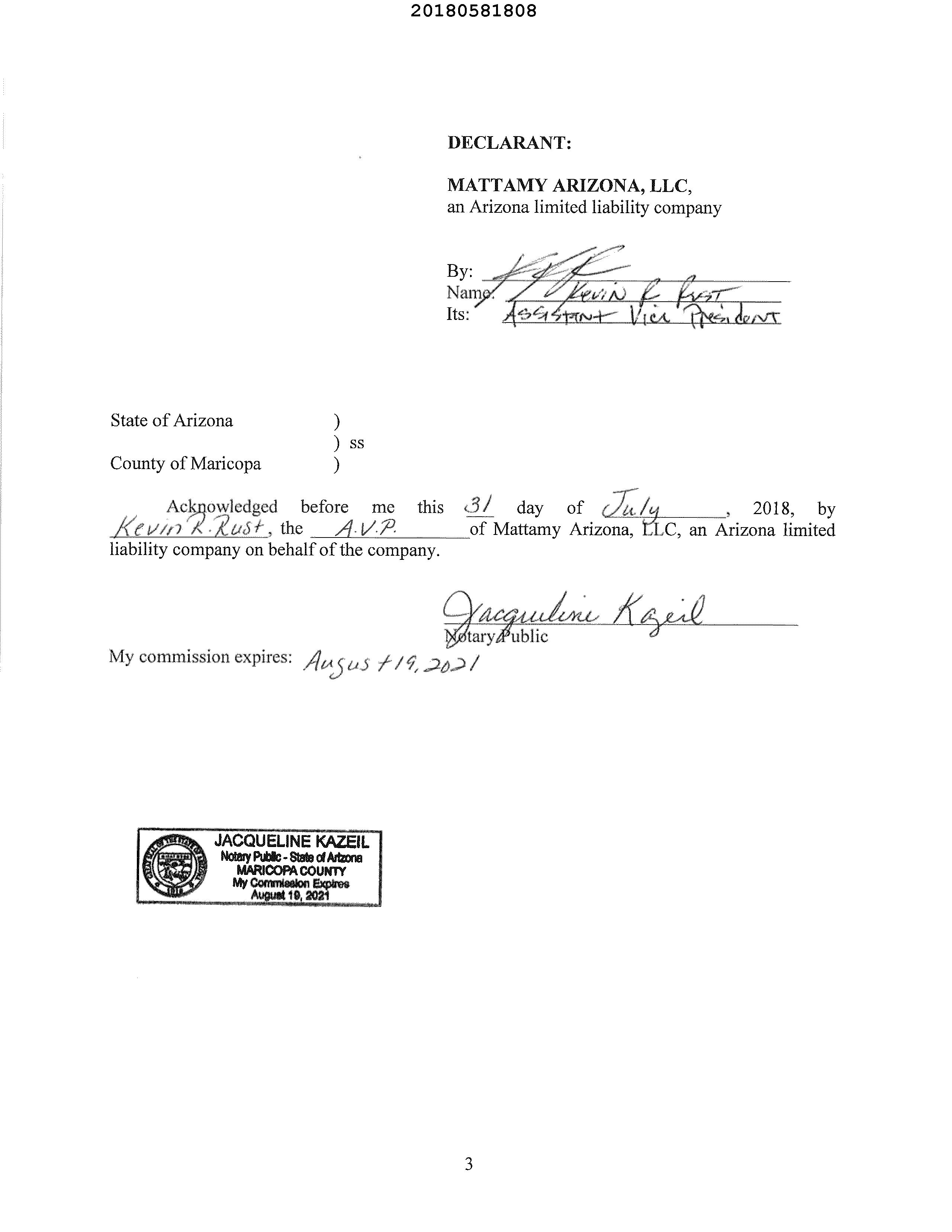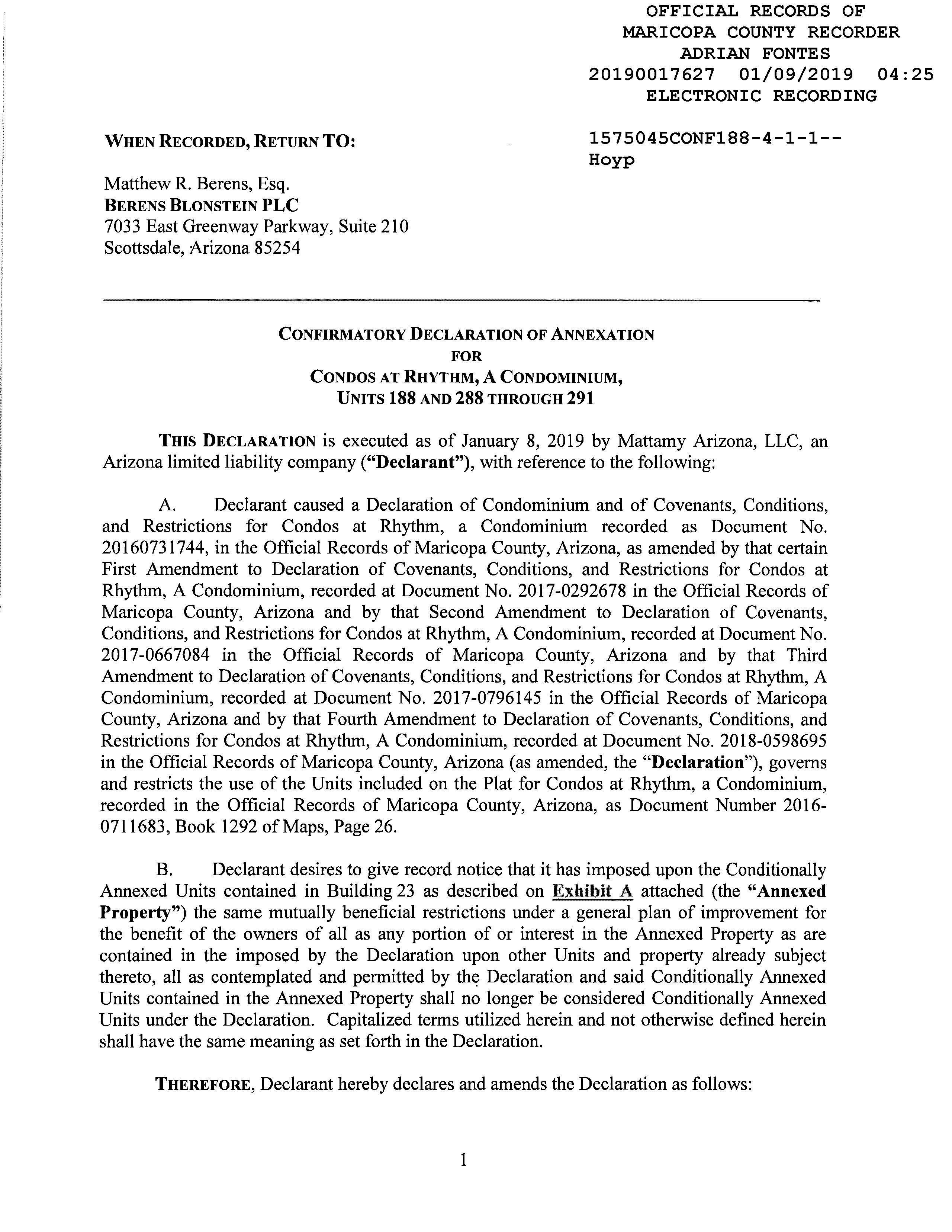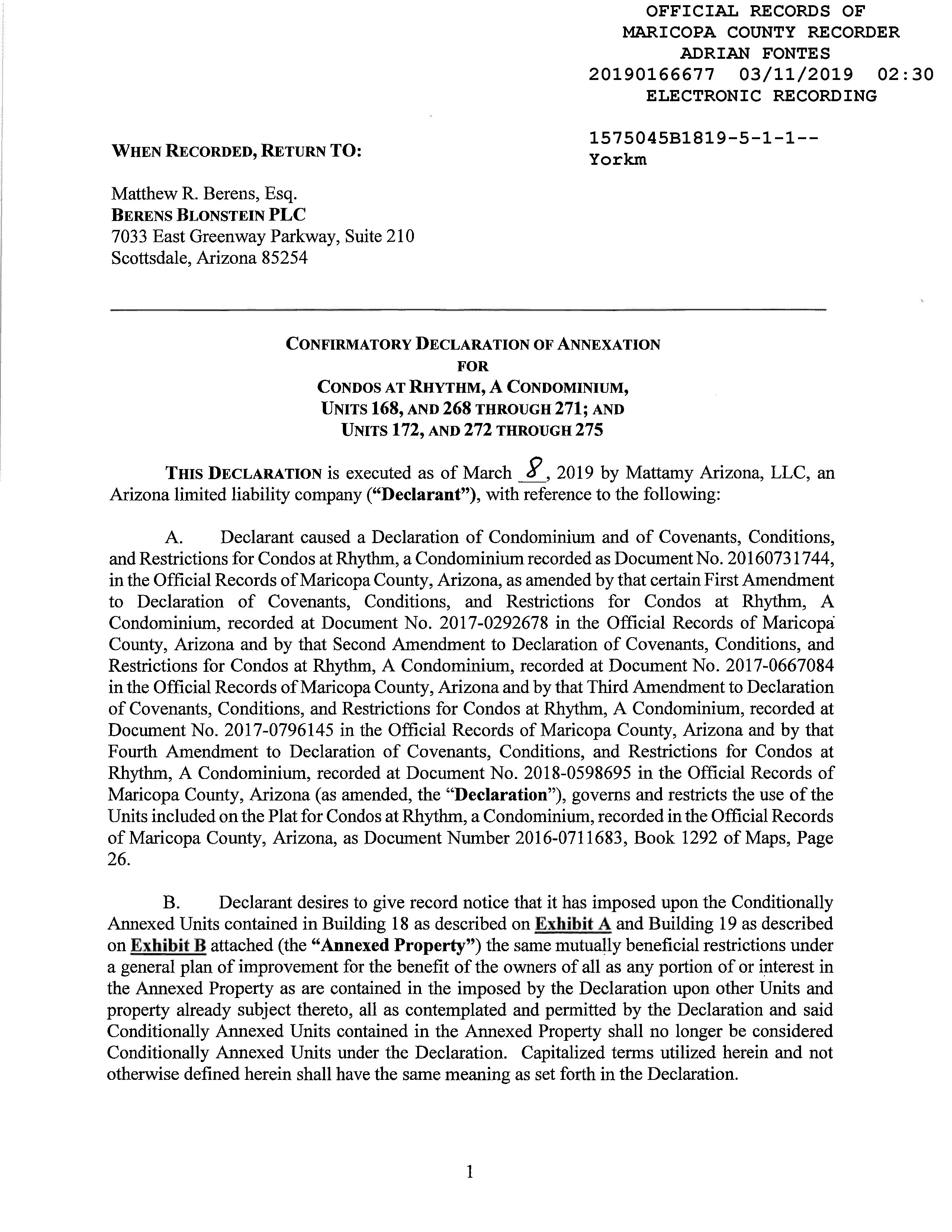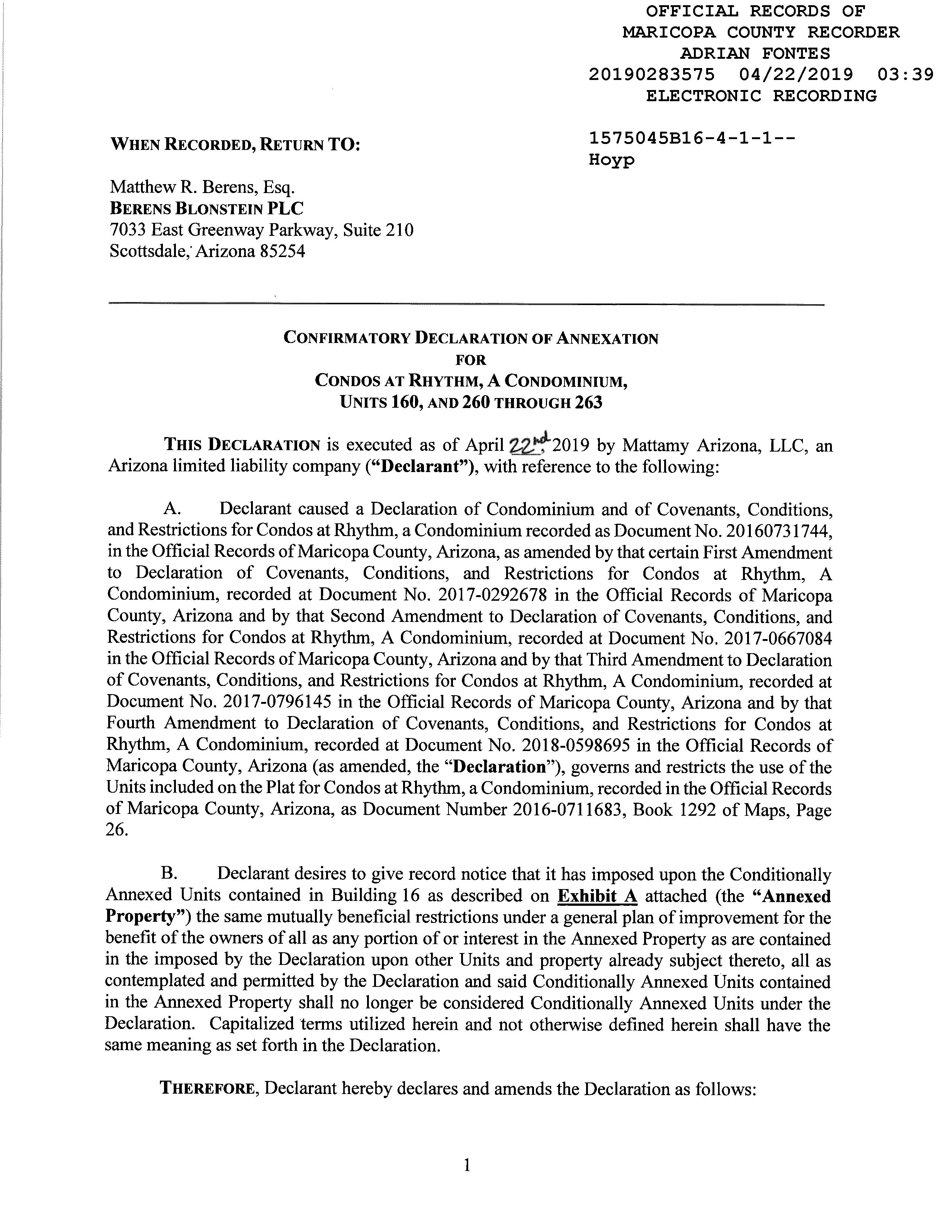 ©2021 First American Financial Corporation and/or its affiliates. All rights reserved. NYSE: FAF 05252610821 COVENANTS, CONDITIONS & RESTRICTIONS PREPARED FOR : First American Title Insurance Company, and the operating divisions thereof, make no express or implied warranty respecting the information presented and assume no responsibility for errors or omissions. First American, the eagle logo, First American Title, and firstam.com are registered trademarks or trademarks of First American Financial Corporation and/or its affiliates. 1250 N. Abbey Lane #176 Chandler, AZ 85226