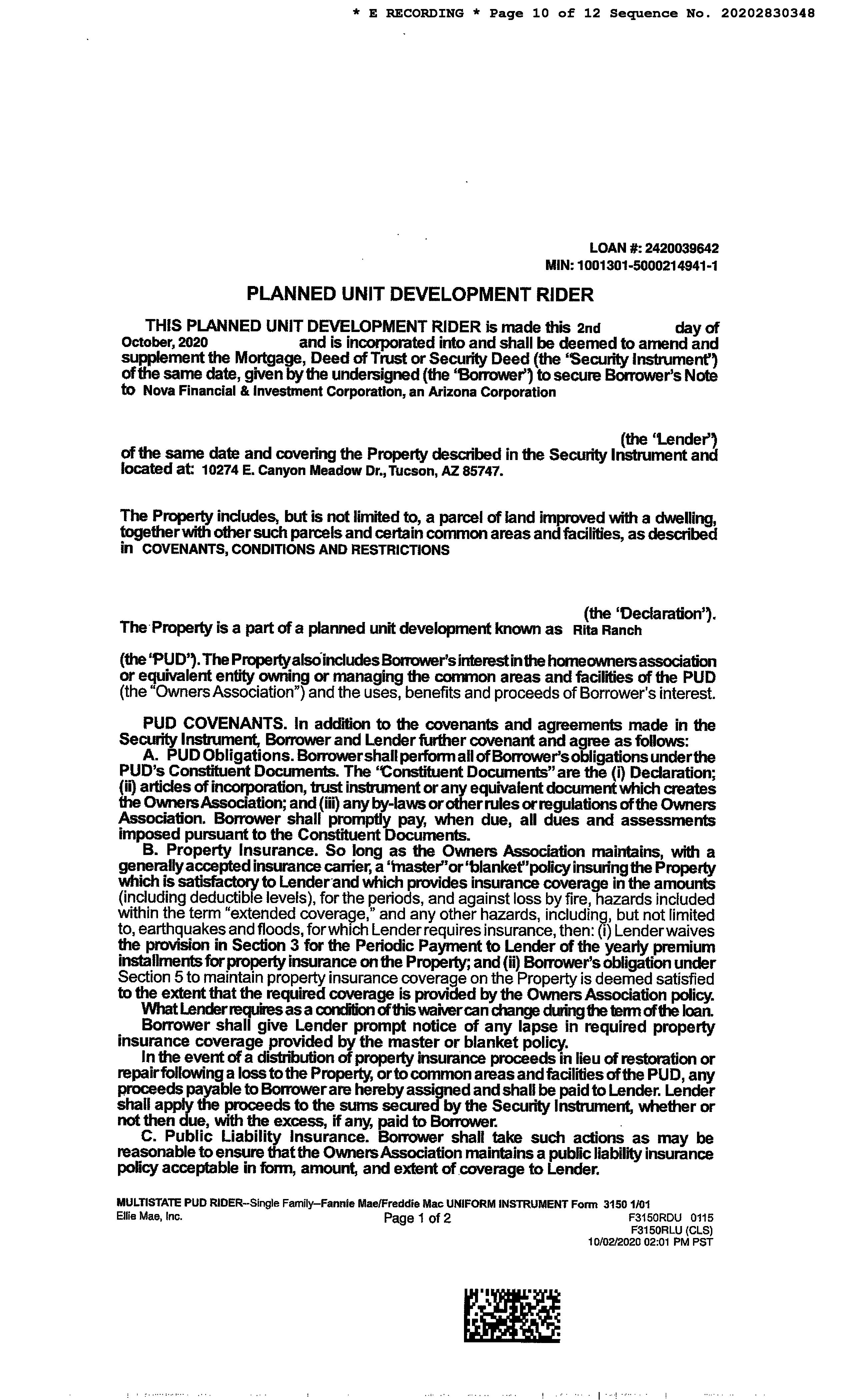 Subject Property : 10274 E Canyon Meadow Dr Tucson AZ 85747