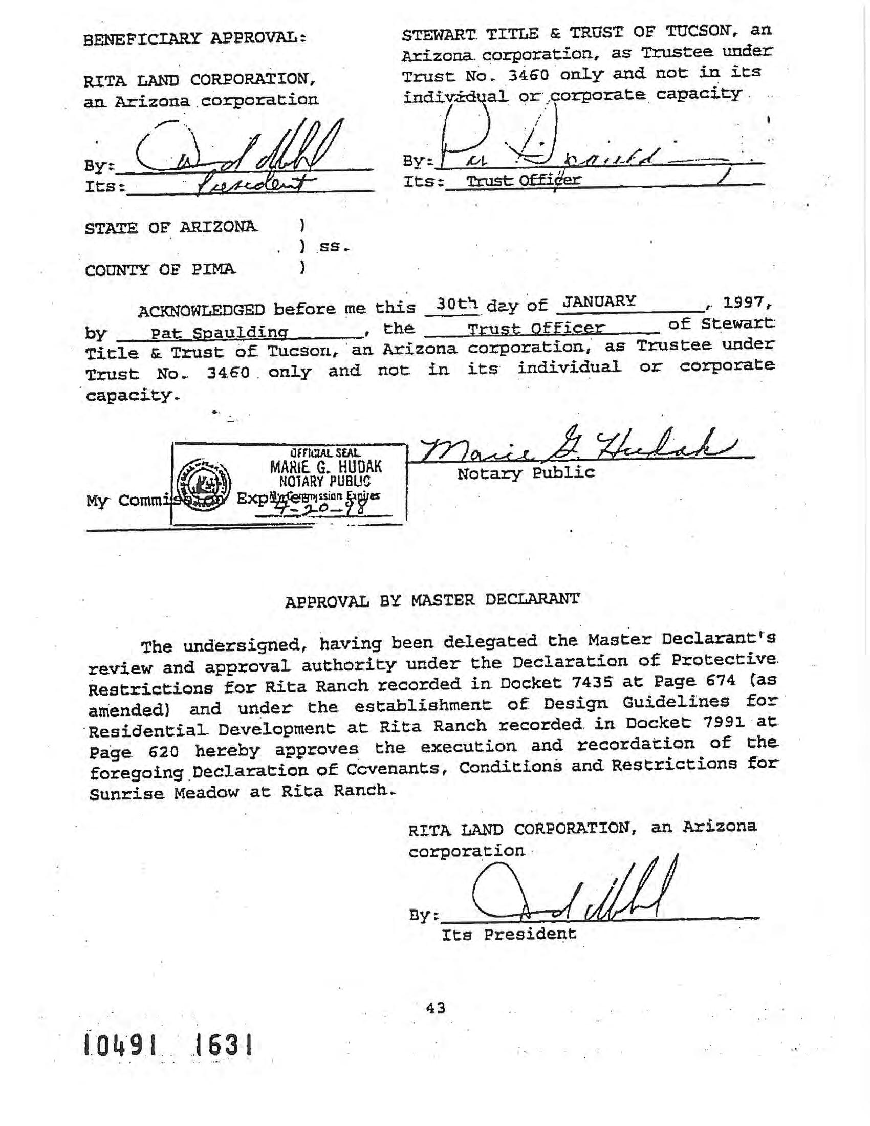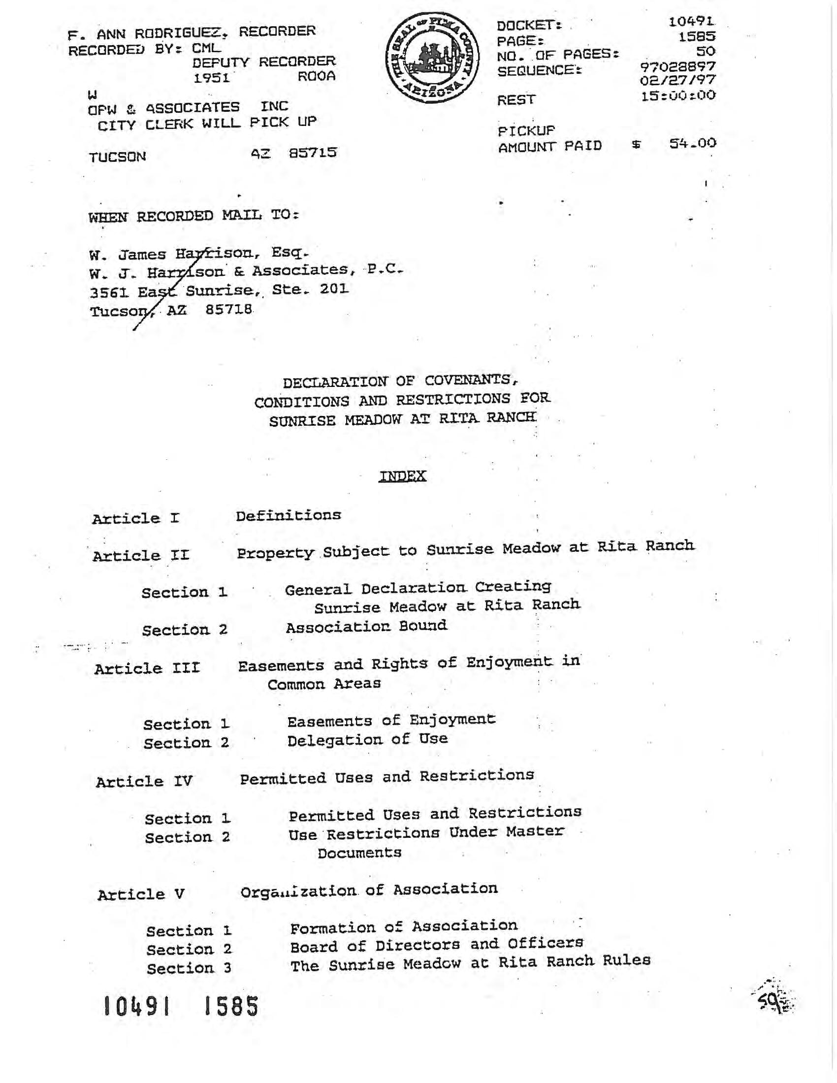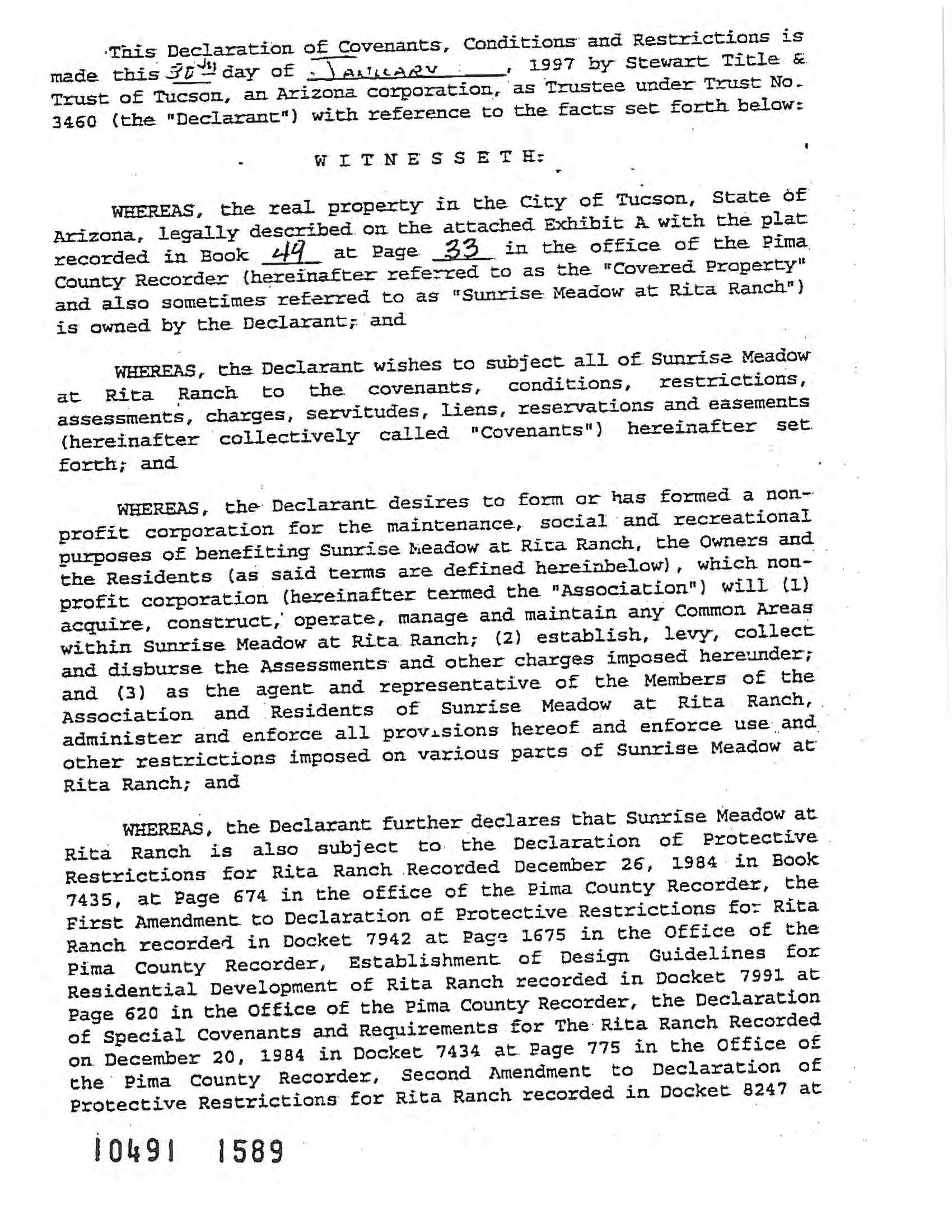 Legal Description : Sunrise Meadow At Rita Ranch Lot 54