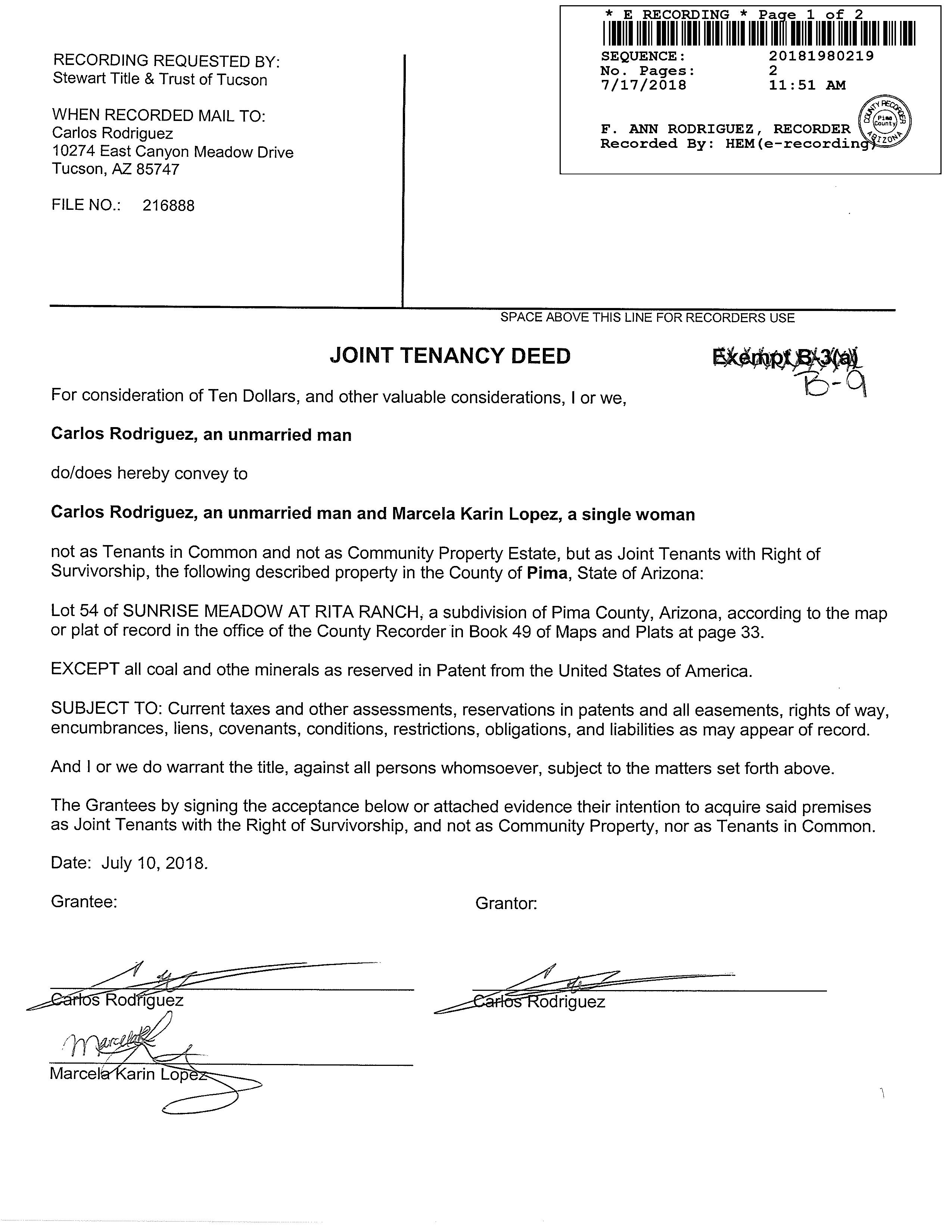Deed Type : Joint Tenancy Deed