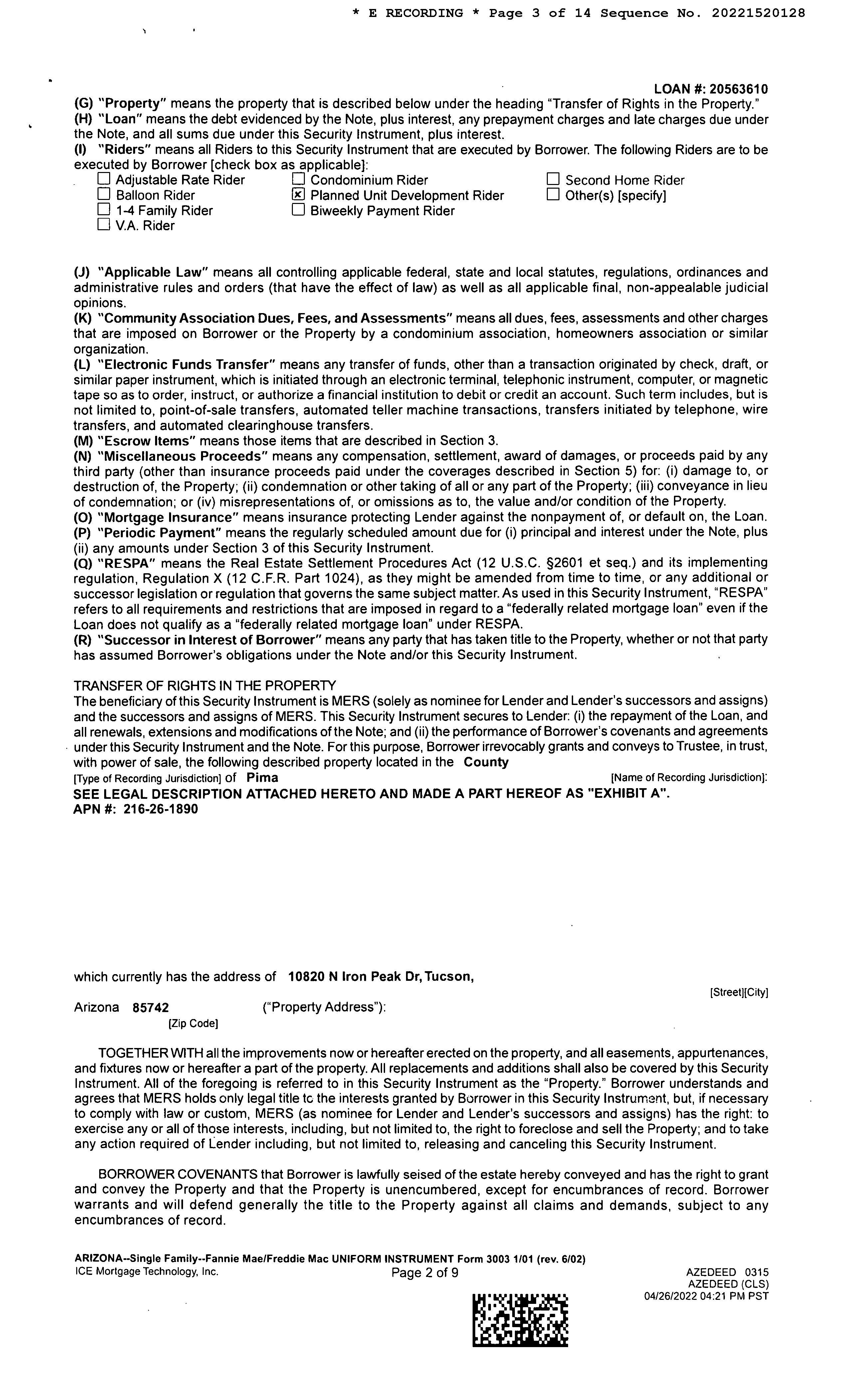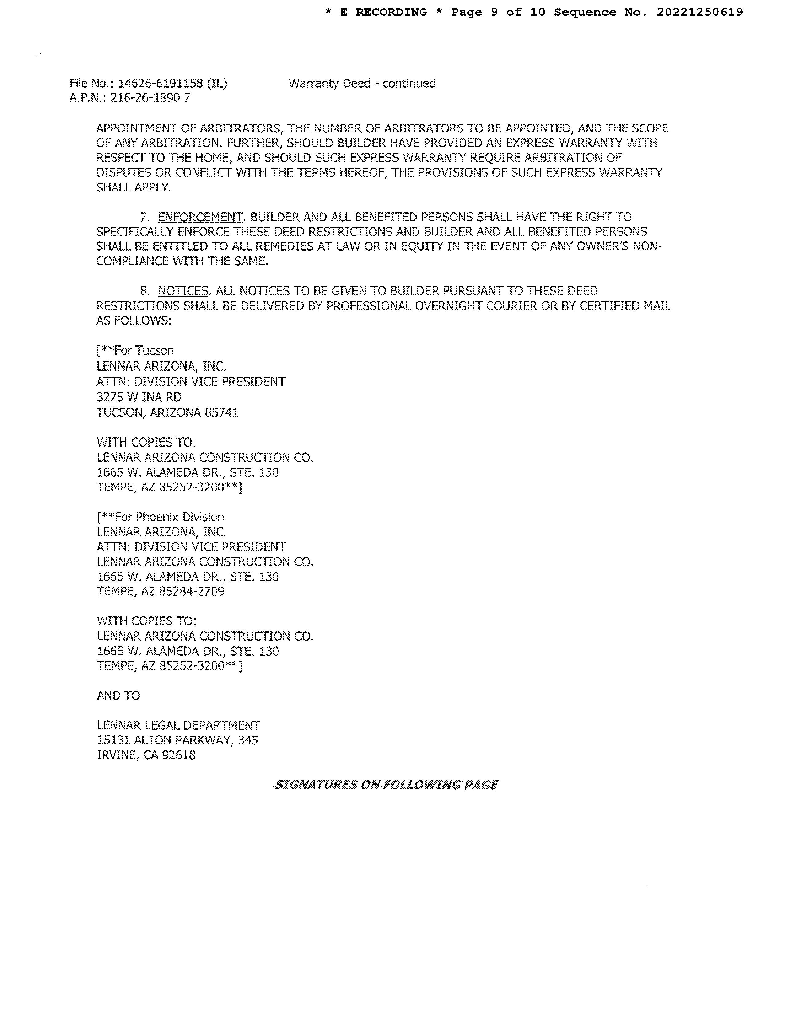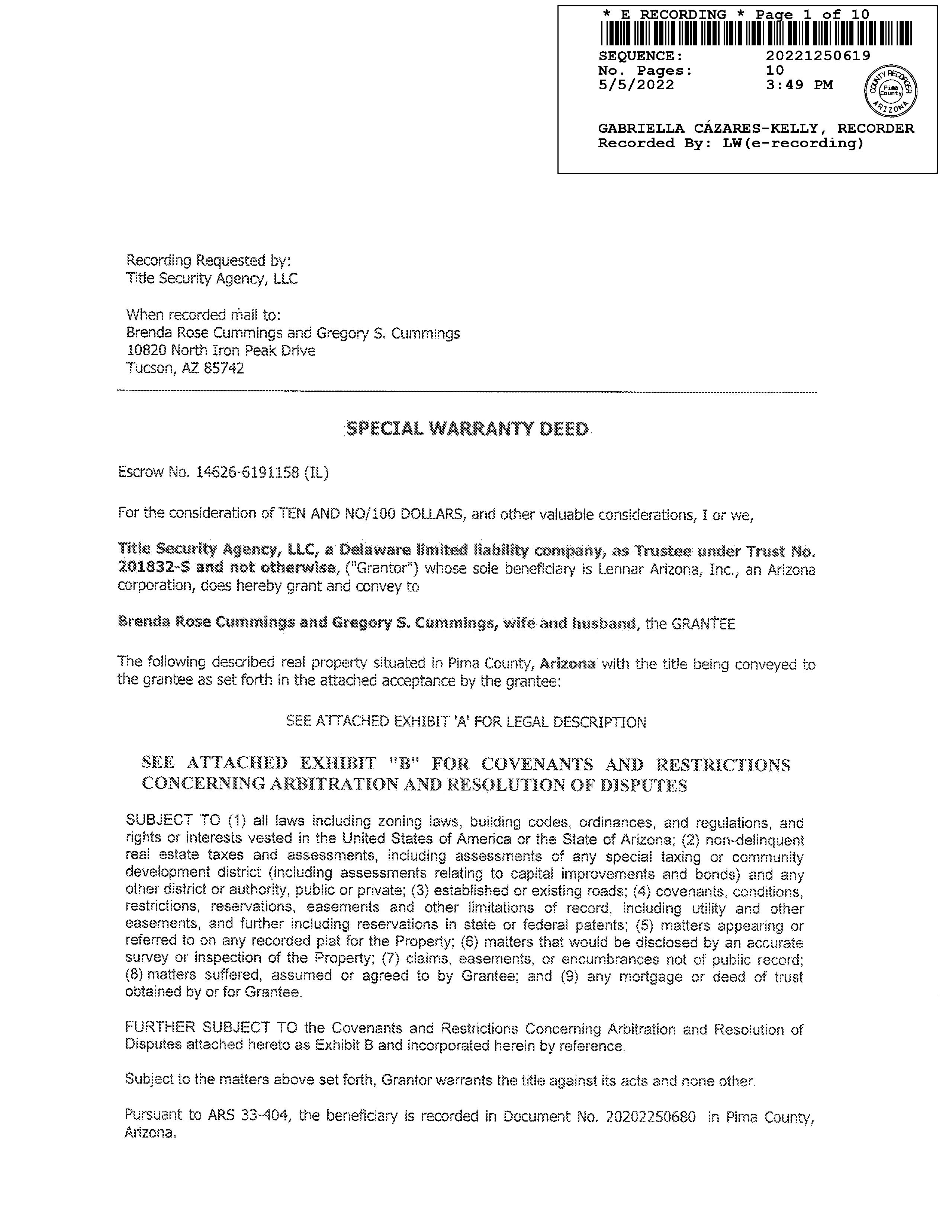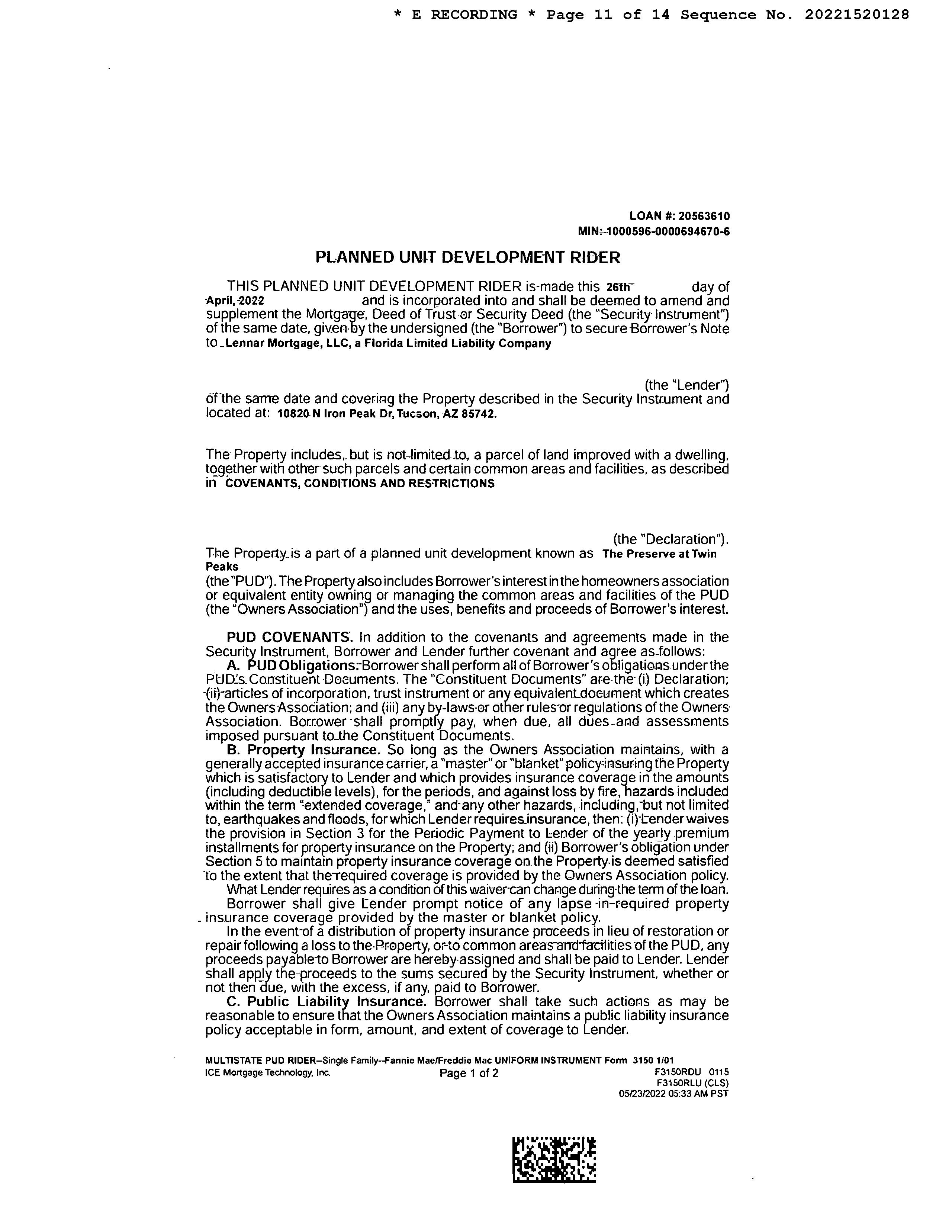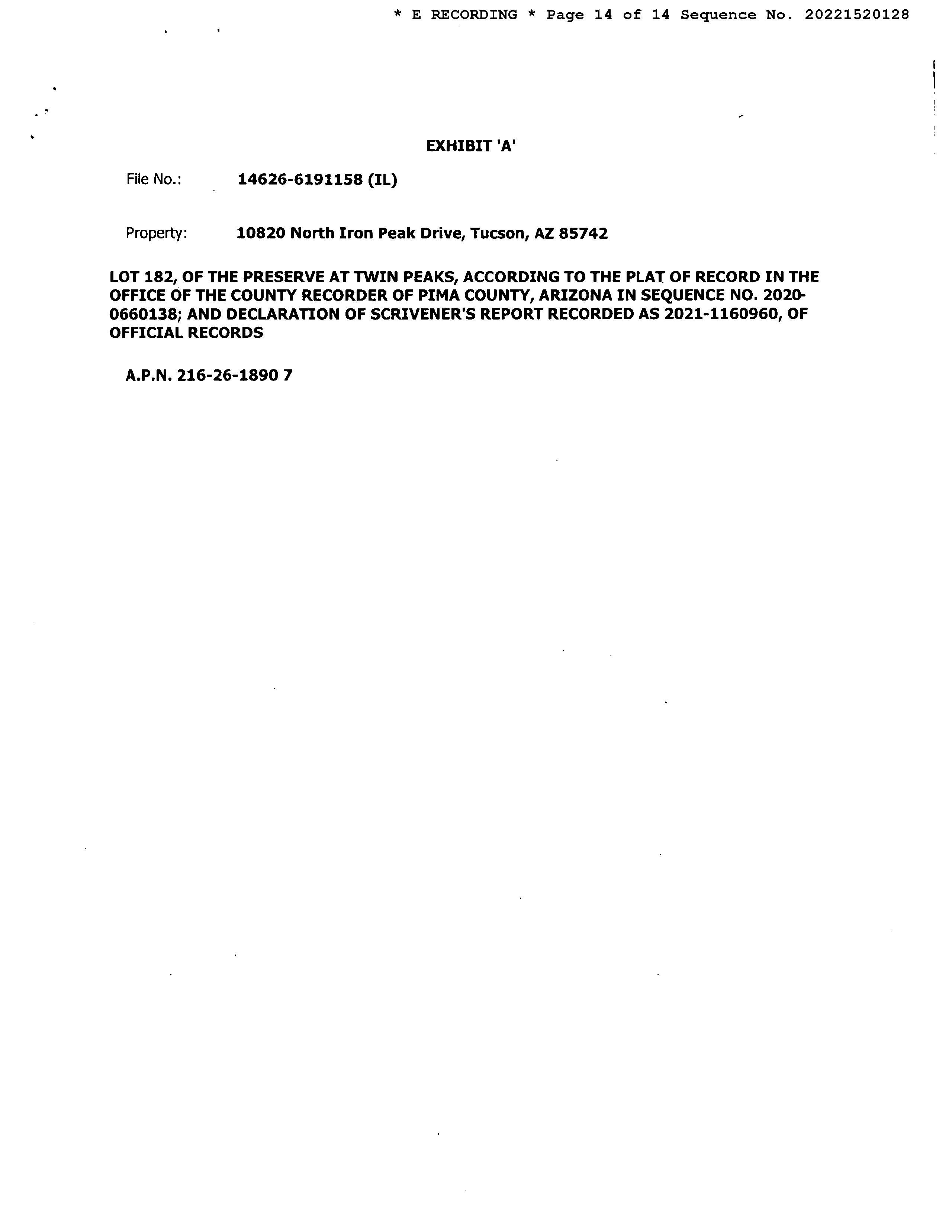 LEGAL: PRESERVE AT TWIN PEAKS SQ20200660138 LOT 182