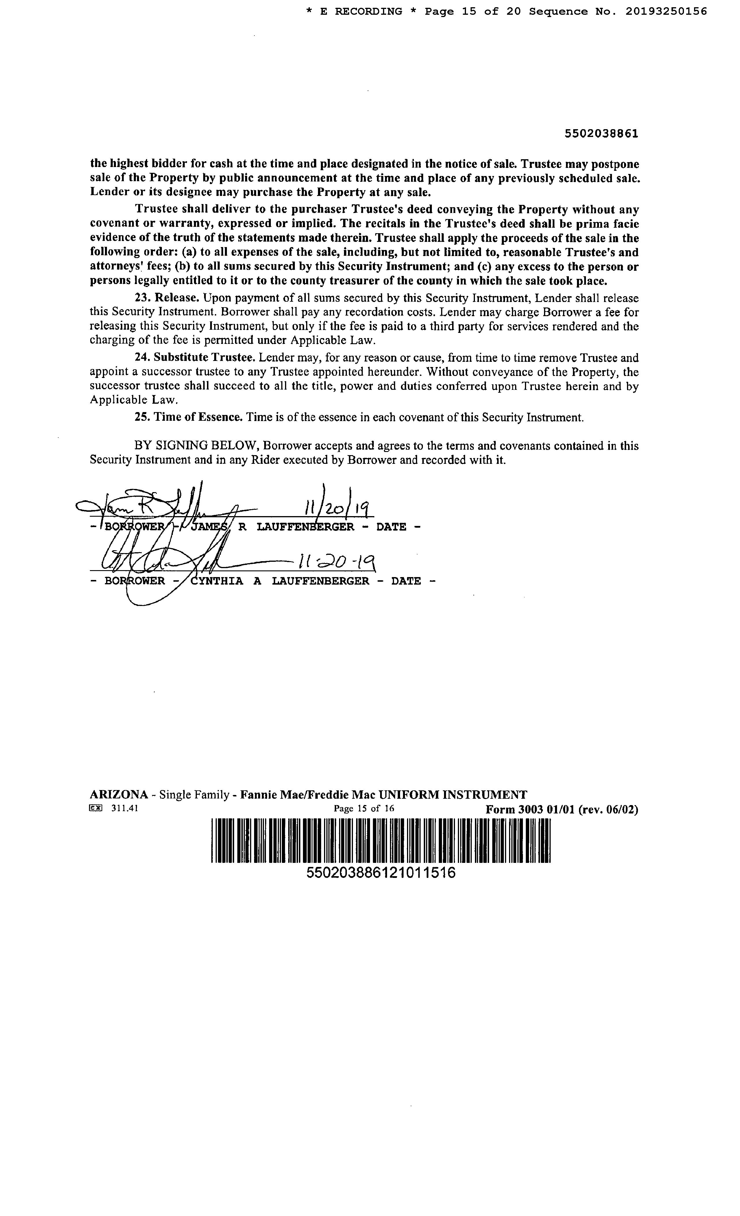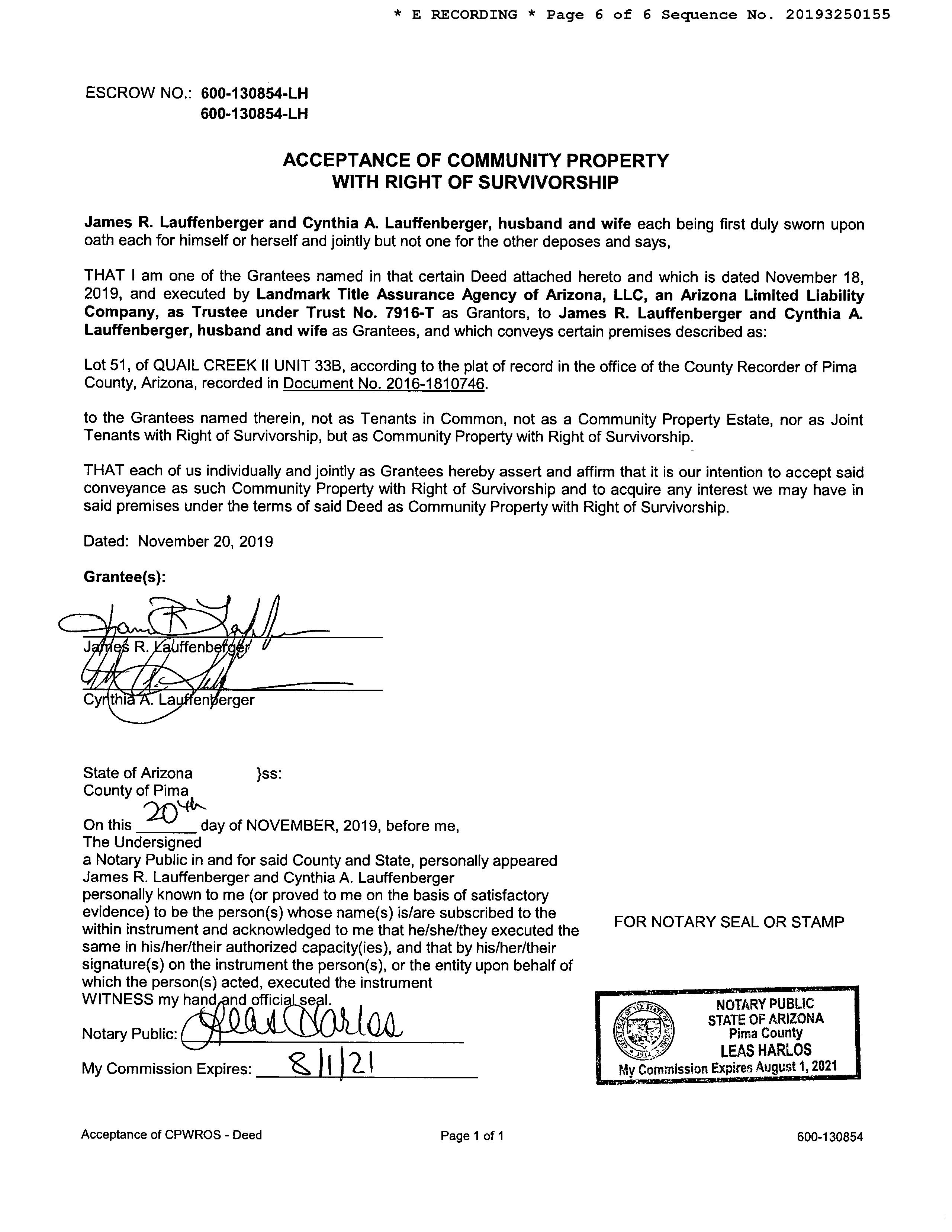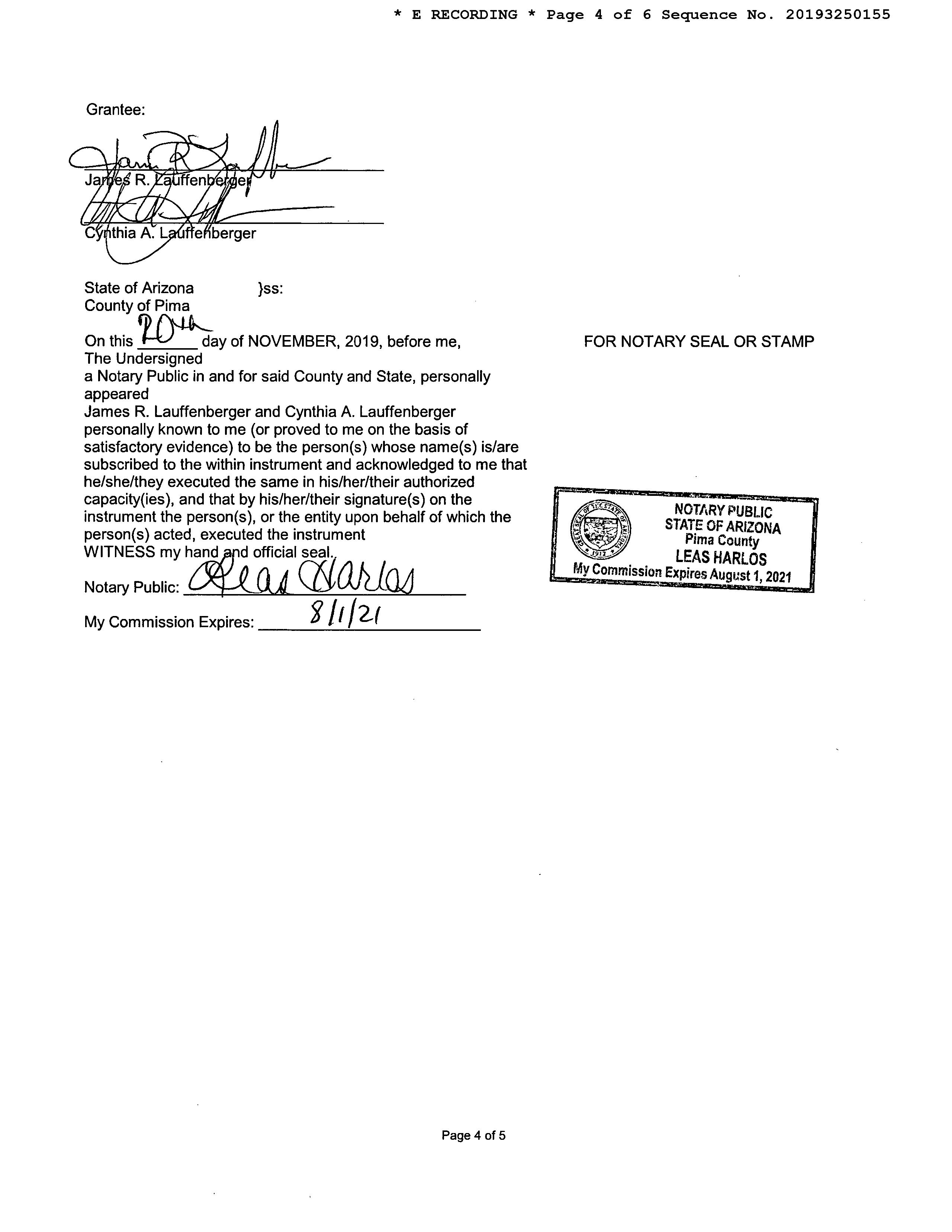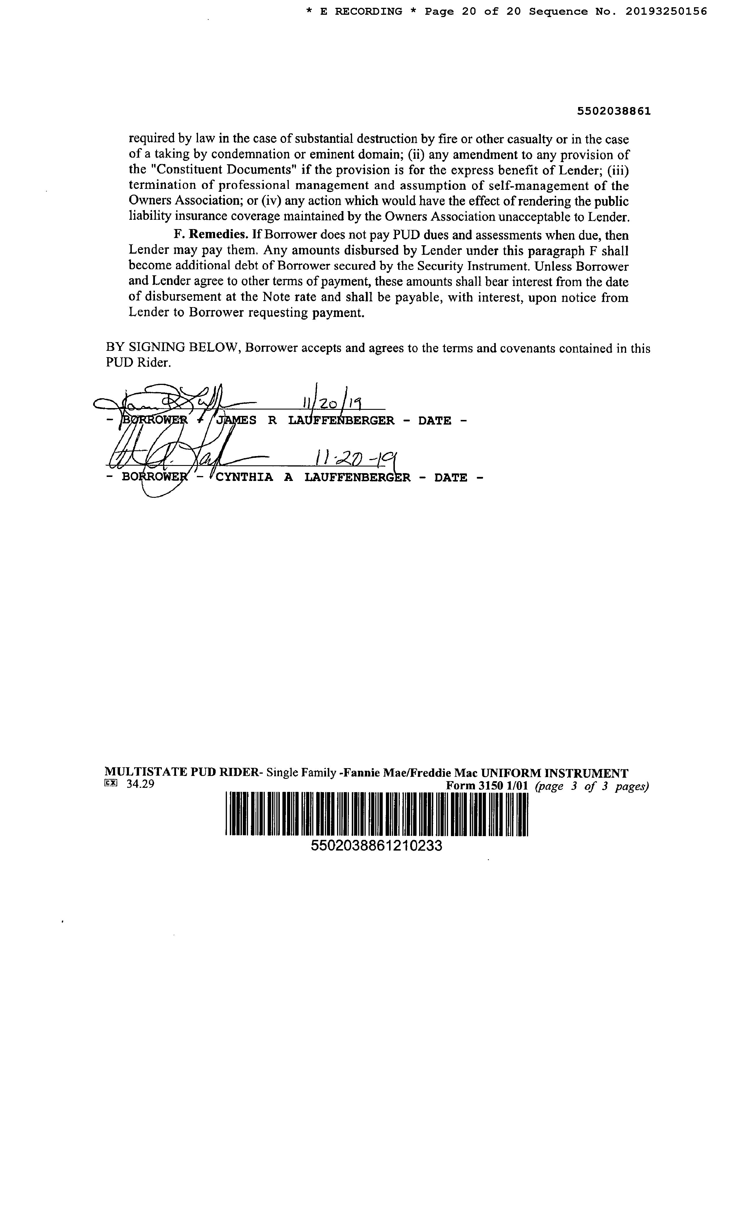 OWNER: LAUFFENBERGER JAMES R & CYN AFFIDAVIT 2019 3250155 11/21/2019