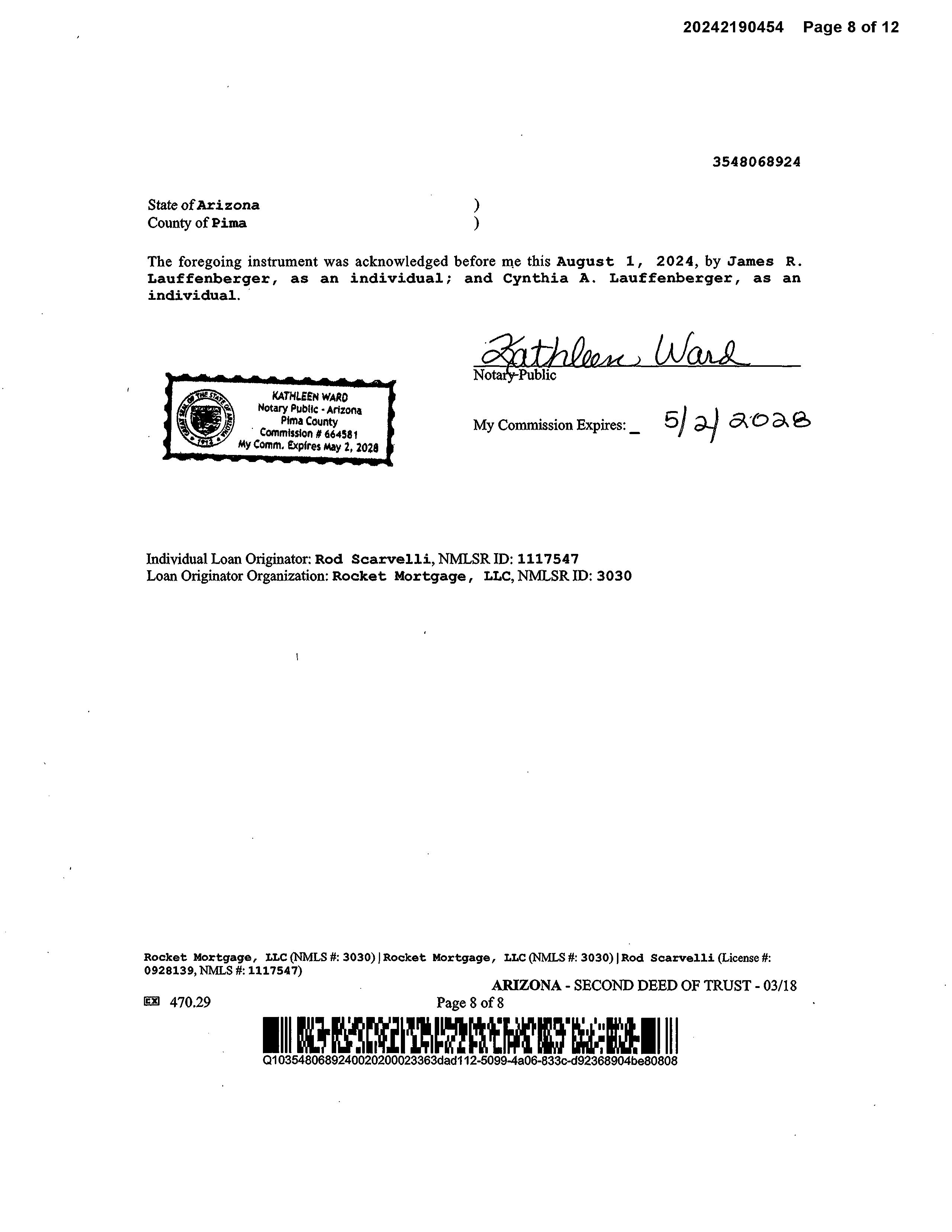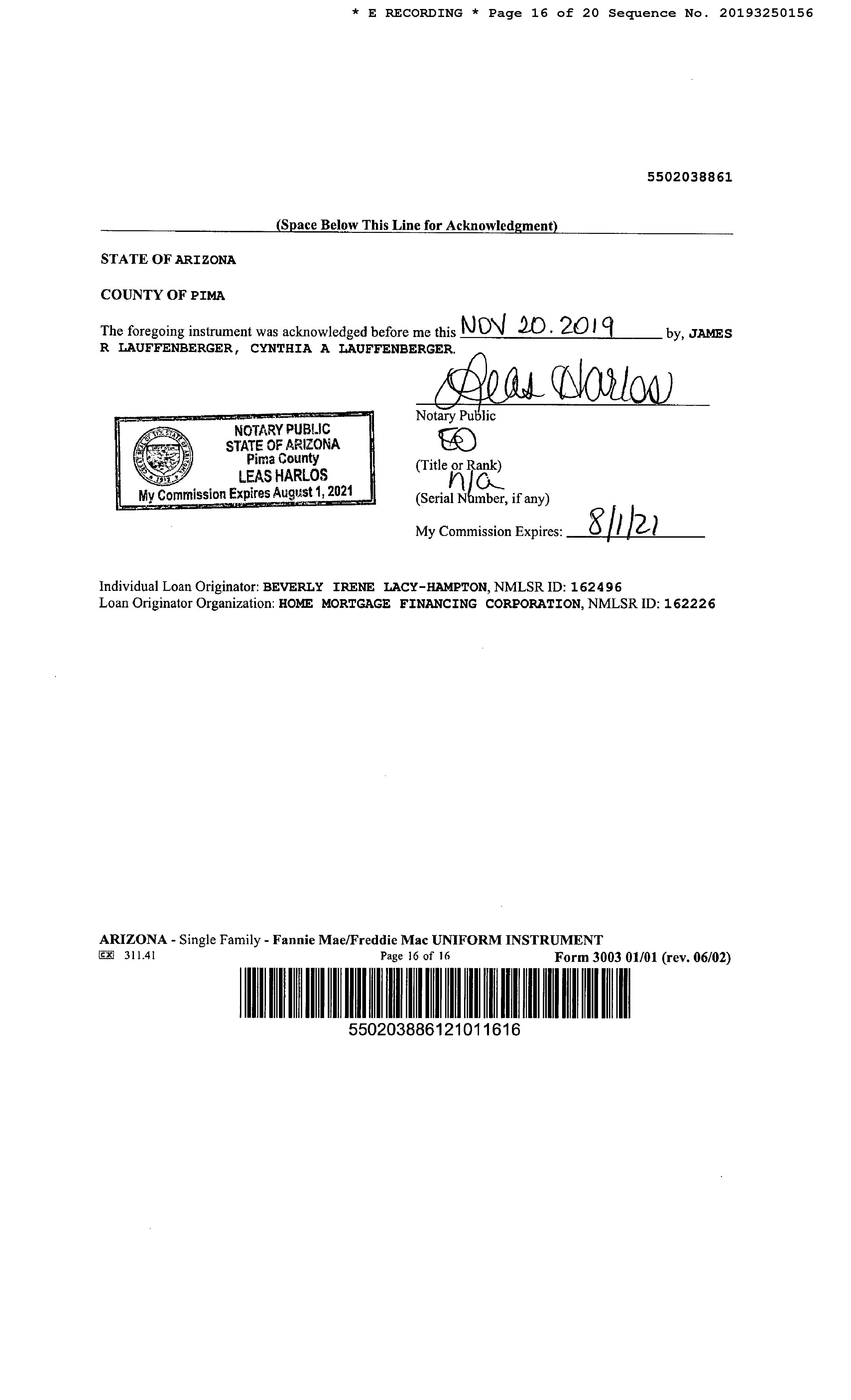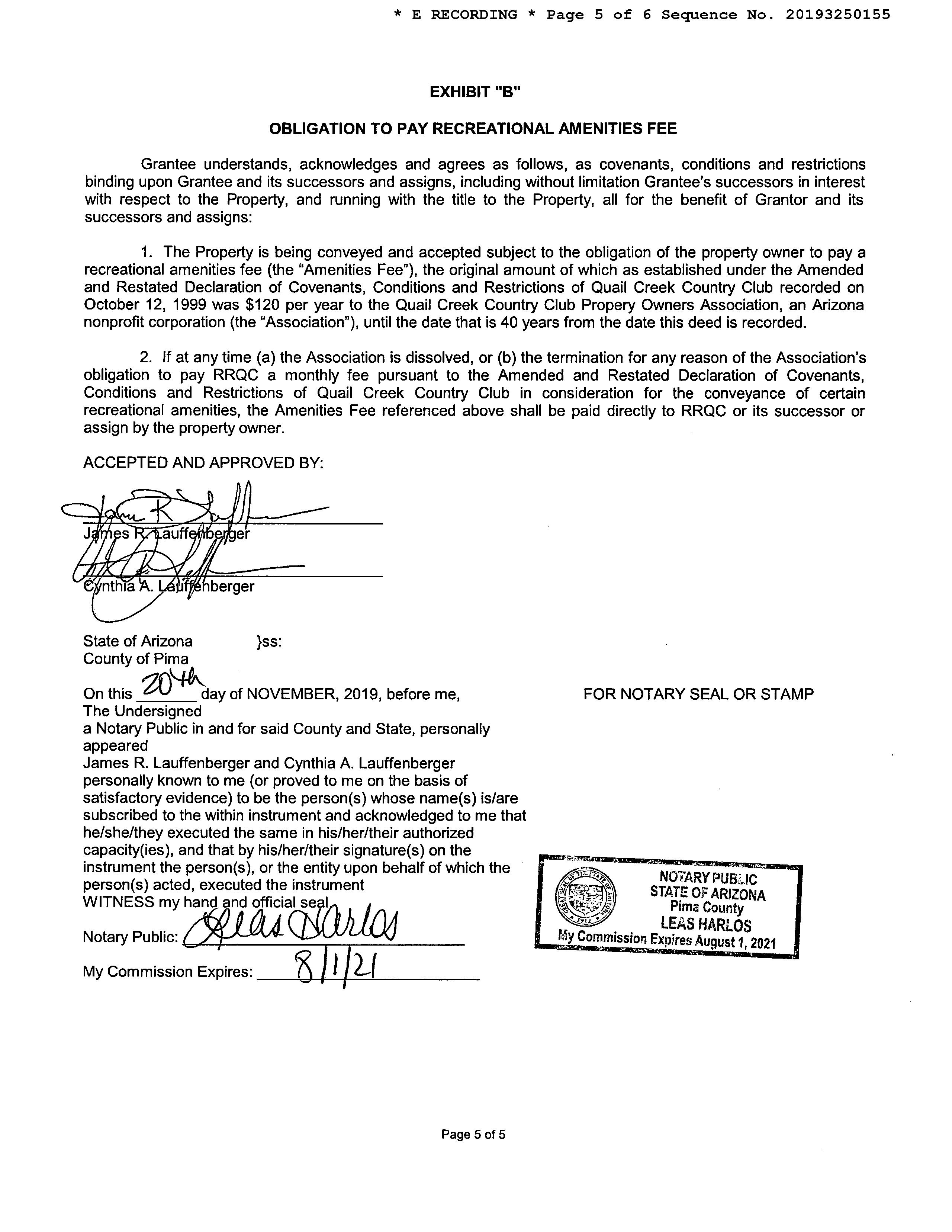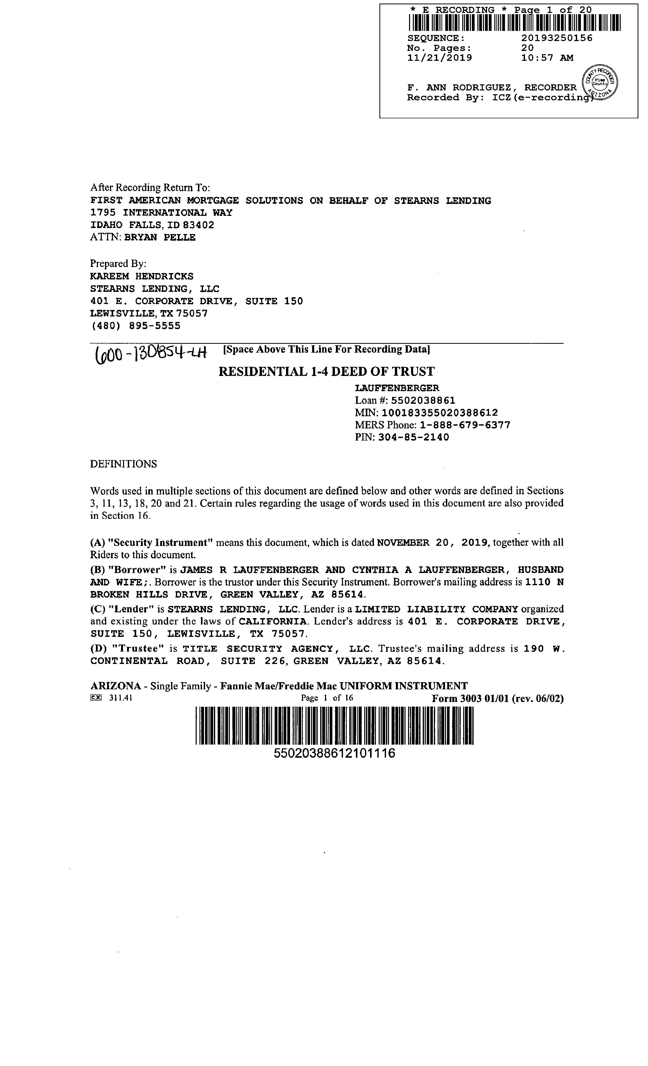 OWNER: LAUFFENBERGER JAMES R & CYN AFFIDAVIT 2019 3250155 11/21/2019
