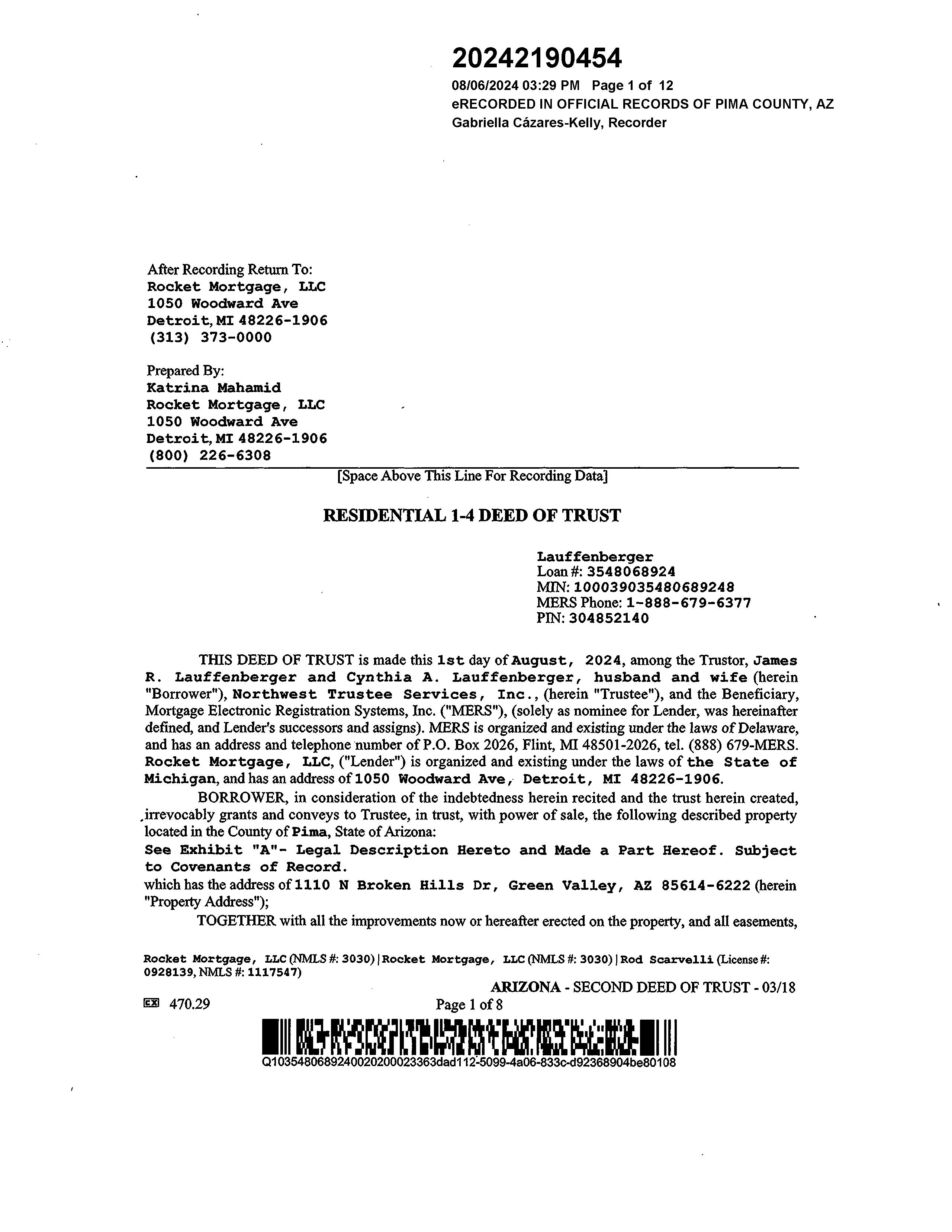 Mailing Address : 1110 N Broken Hills Dr, Green Valley AZ 85614-6222 H011