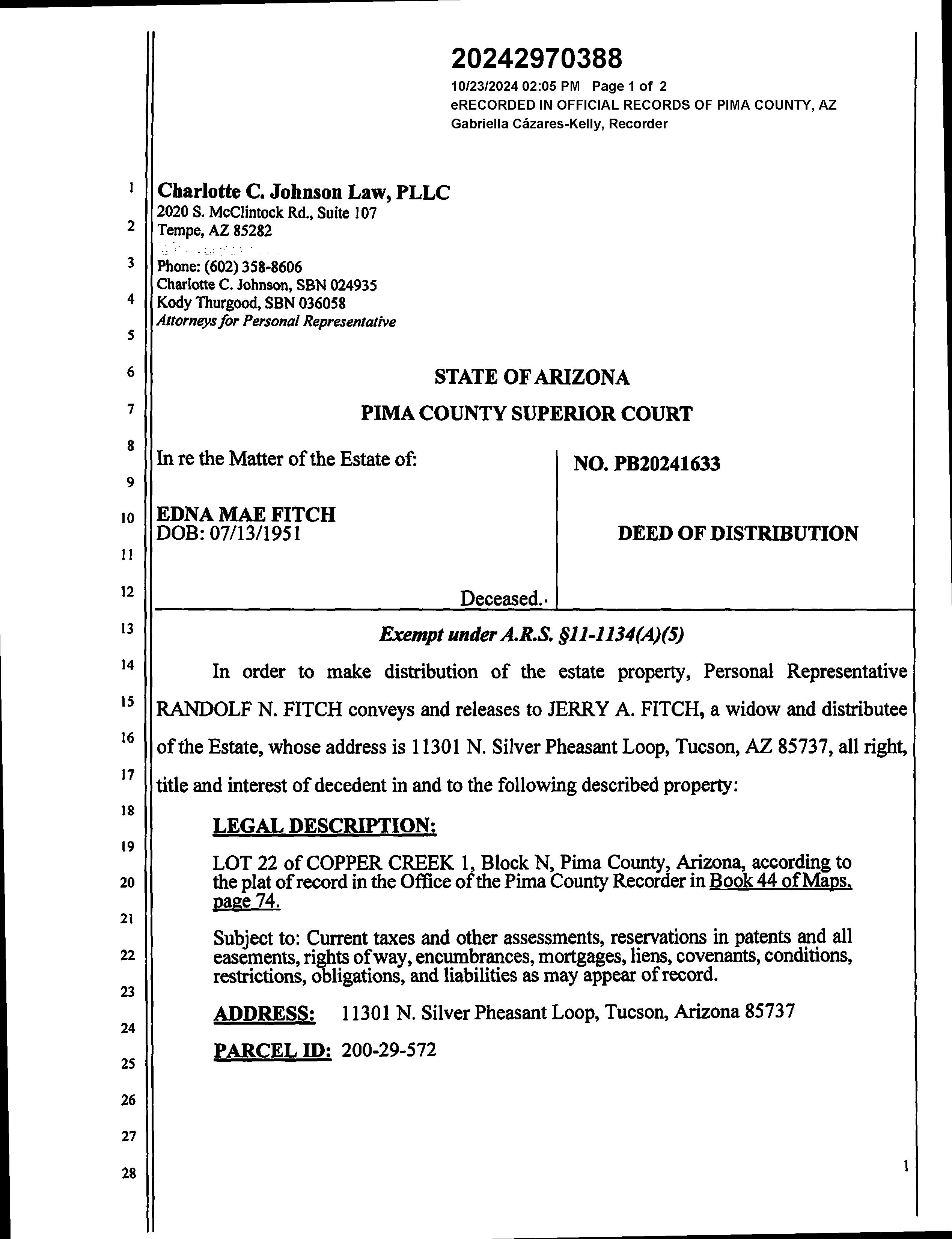 OWNER: FITCH EDNA & JERRY AFFIDAVIT 2024 1570022 06/05/2024