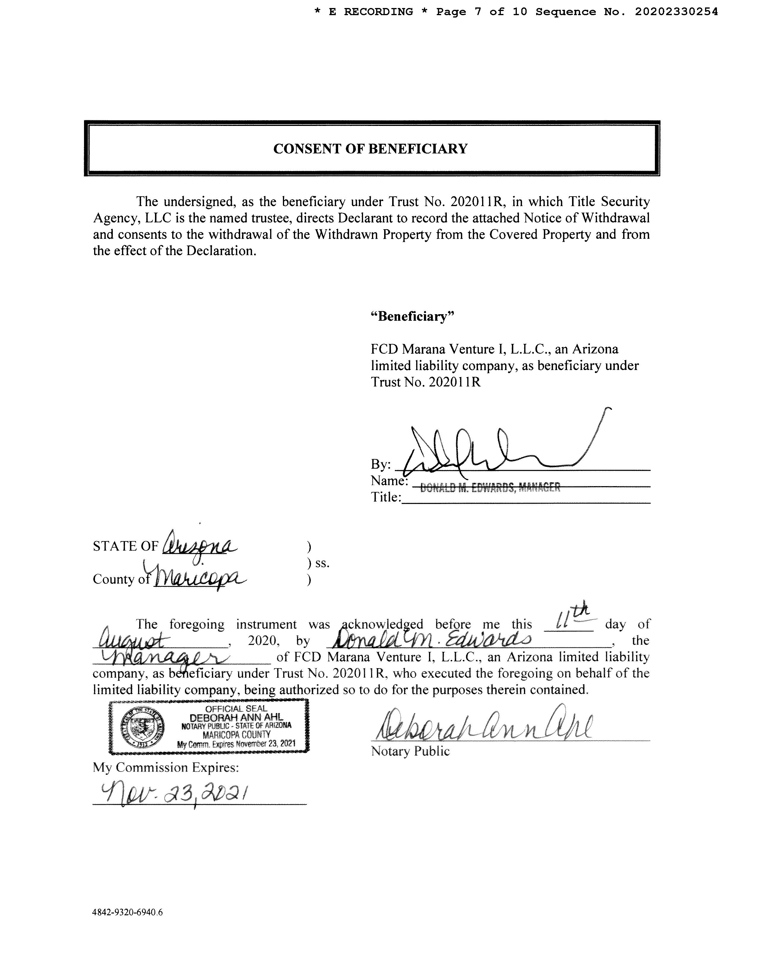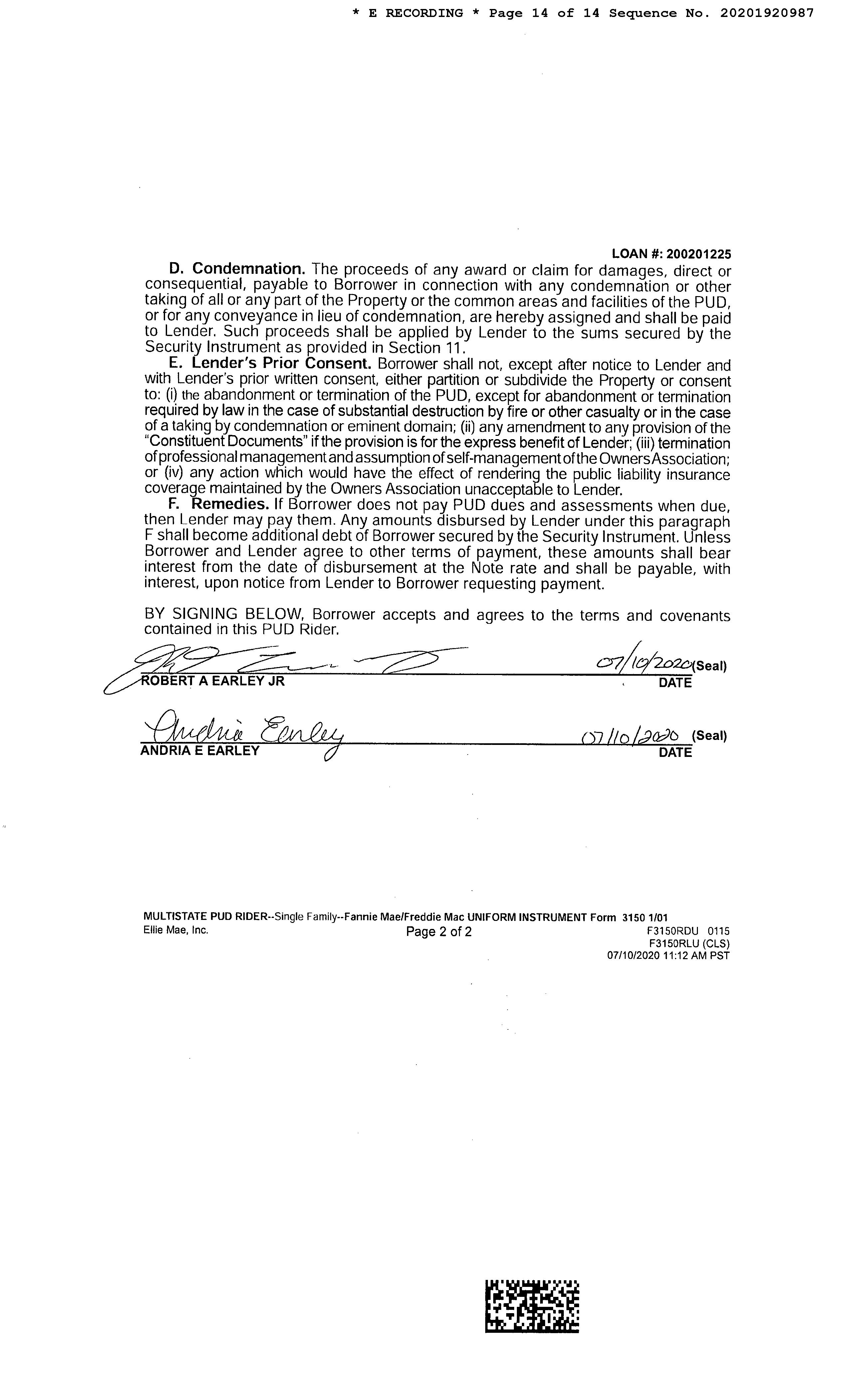 OWNER: EARLEY JR ROBERT A & EARLEY AFFIDAVIT 2020 1920986 07/10/2020