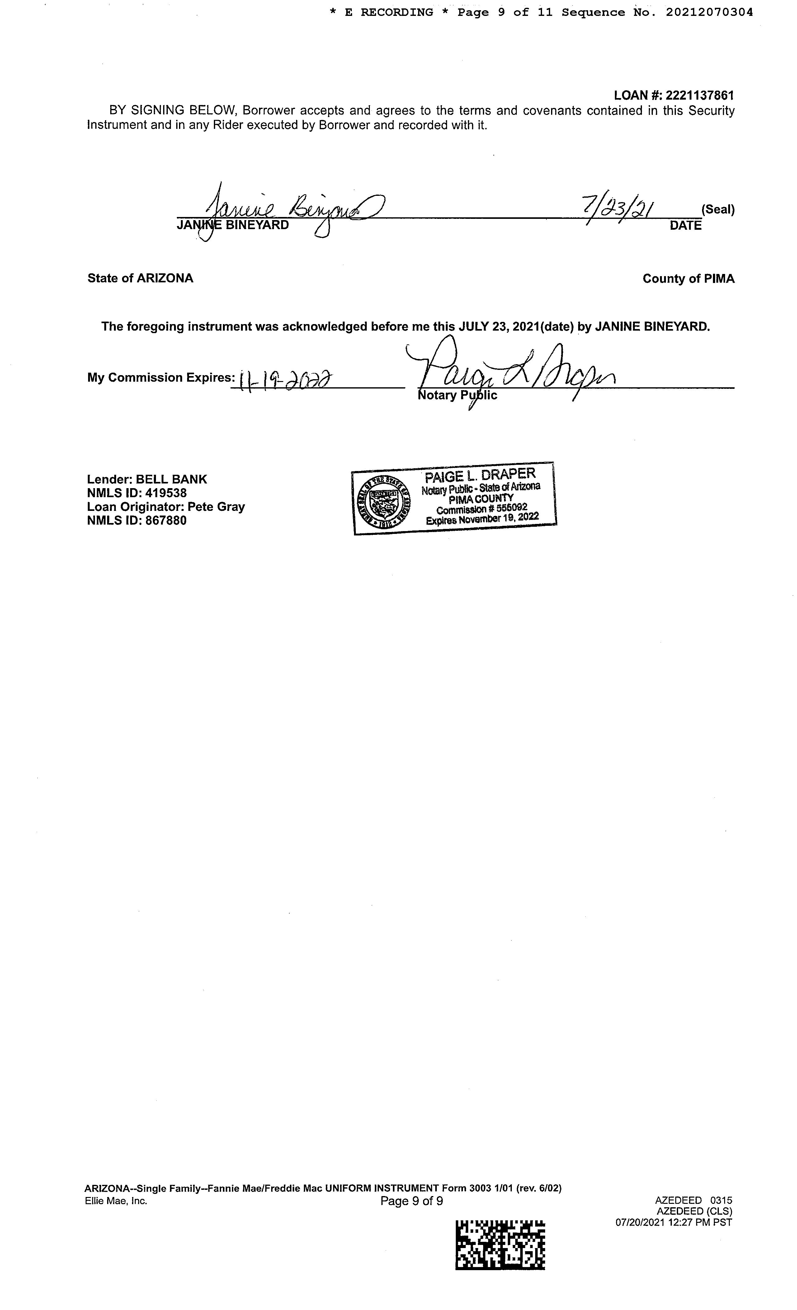 Mailing Address : 11726 W Tom Henry Way, Marana AZ 85653-7528 R001