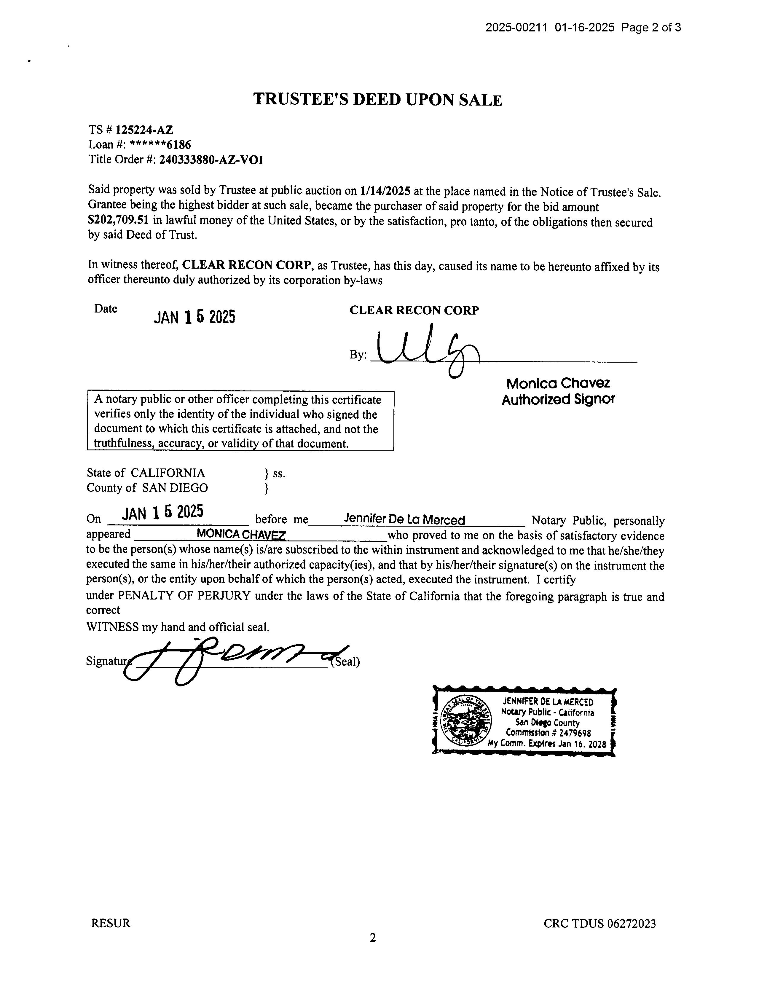 REO Sale Price : $202,709 Customer Name : Chantel Cortez Customer Company Name : FIRST AMERICAN TITLE Prepared On : 06/02/2025