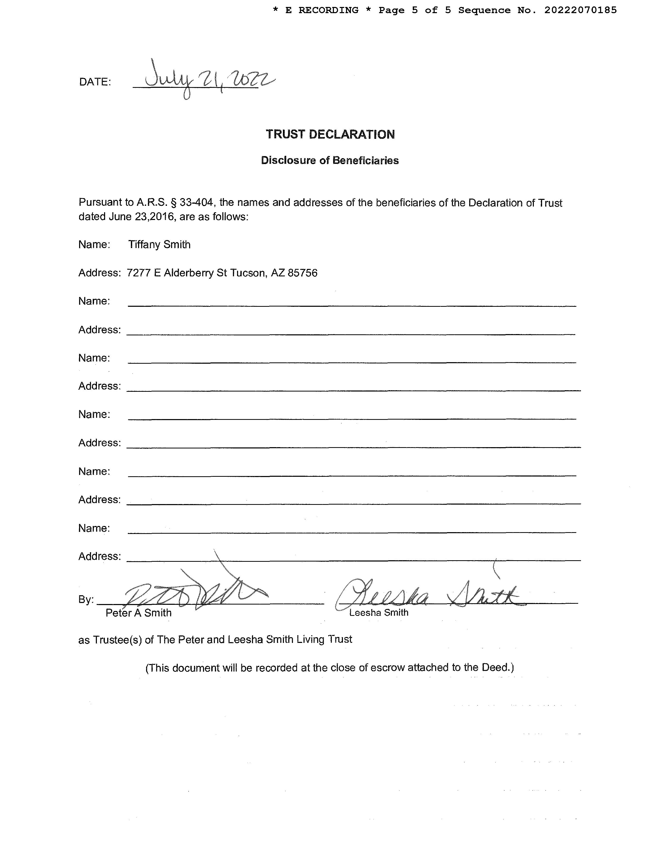 Owner Name : Smith Peter / Smith Leesha