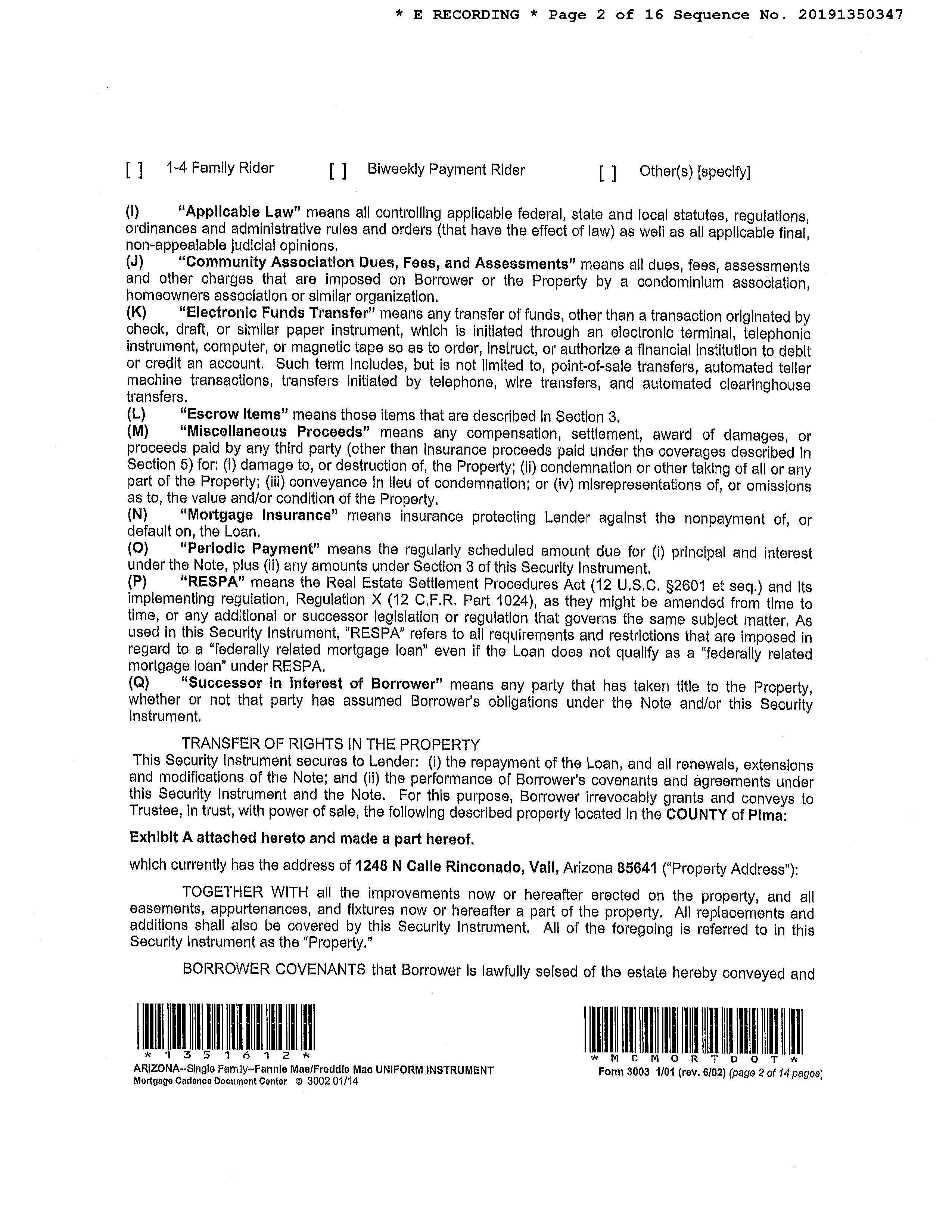 2014 1360135 WD DOMINGUEZ RICHARD/LAURA ADDITIONAL PROPERTY INFORMATION STANDARD LAND USE: SFR