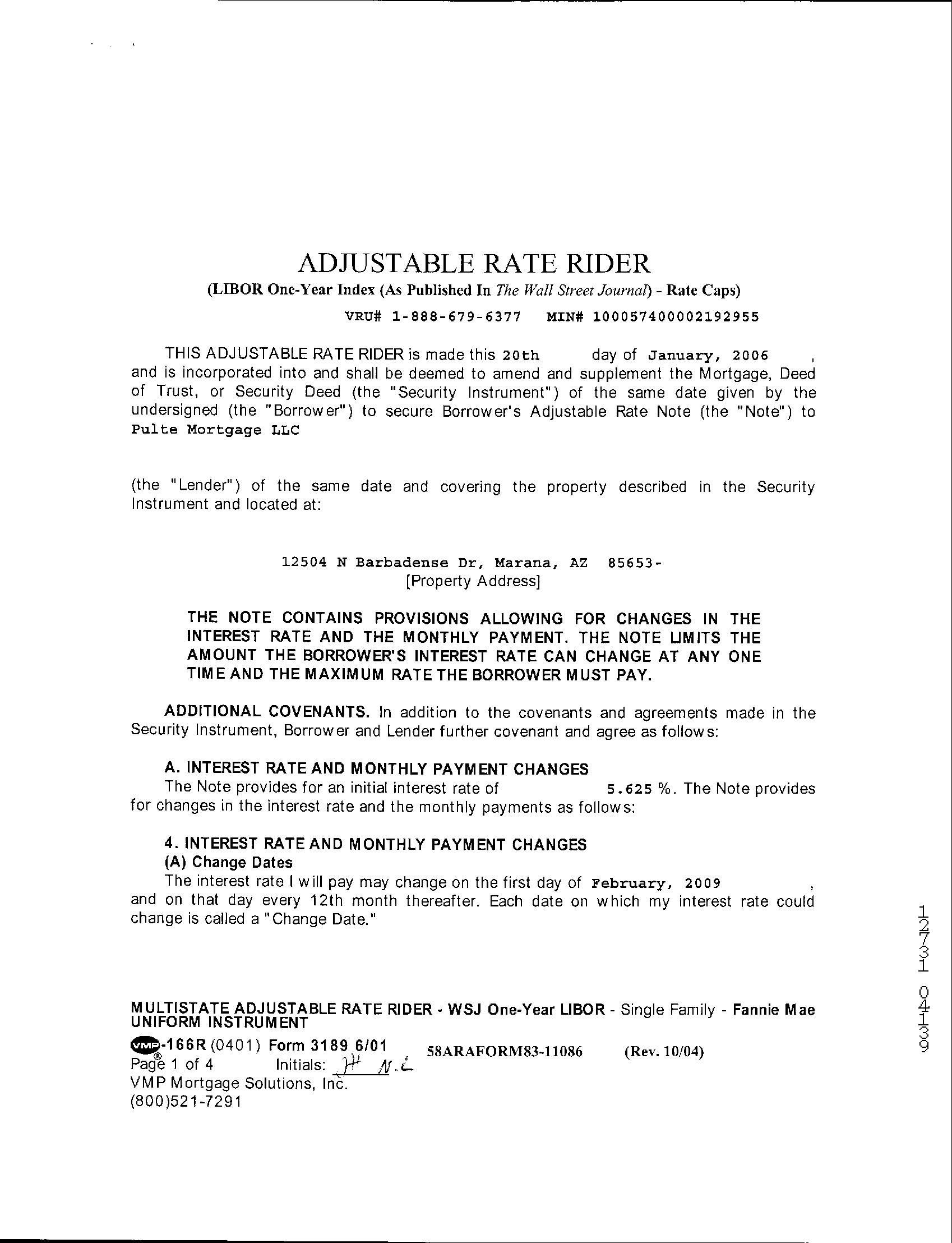 1st Mtg Int. Rate/Type : 5.62% / Adjustable Int Rate Loan