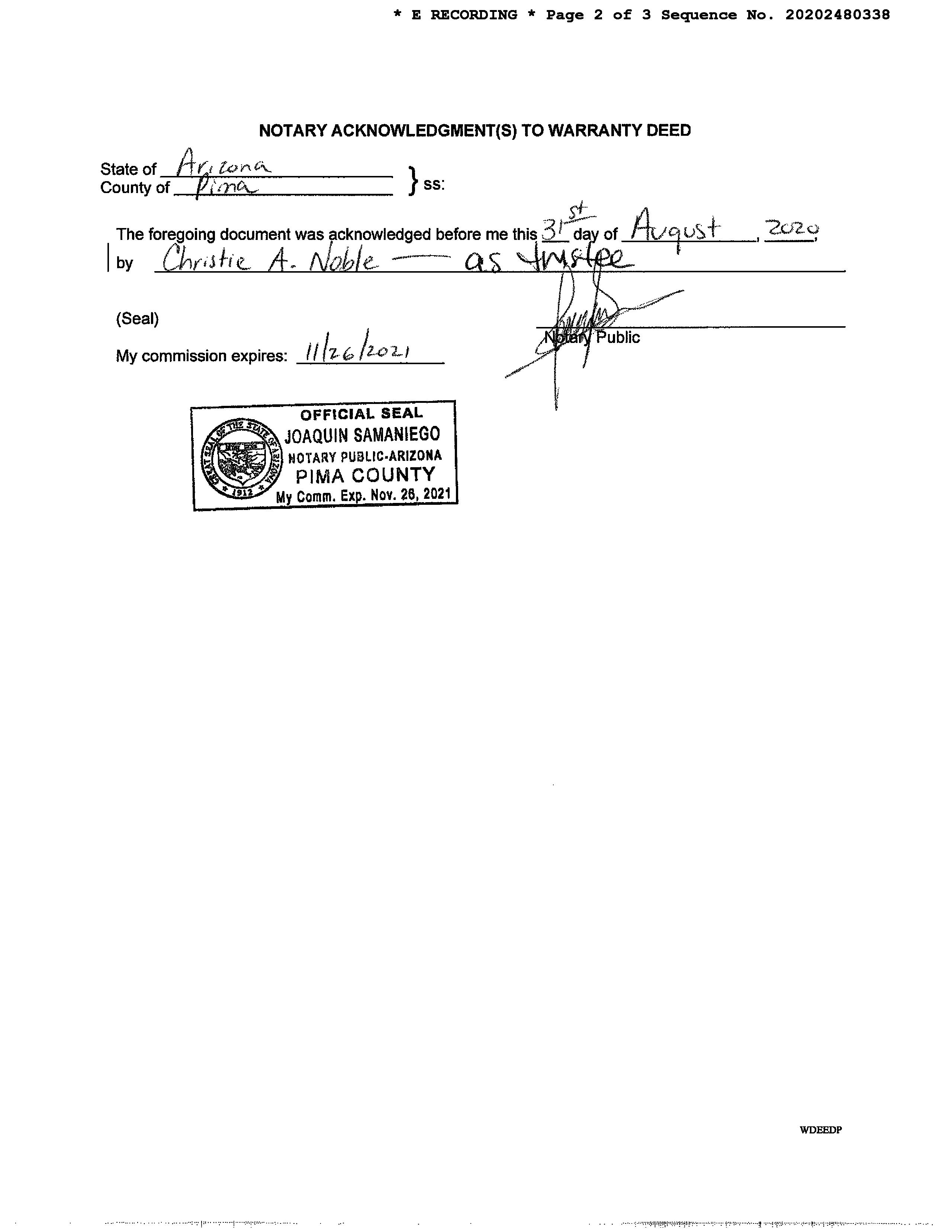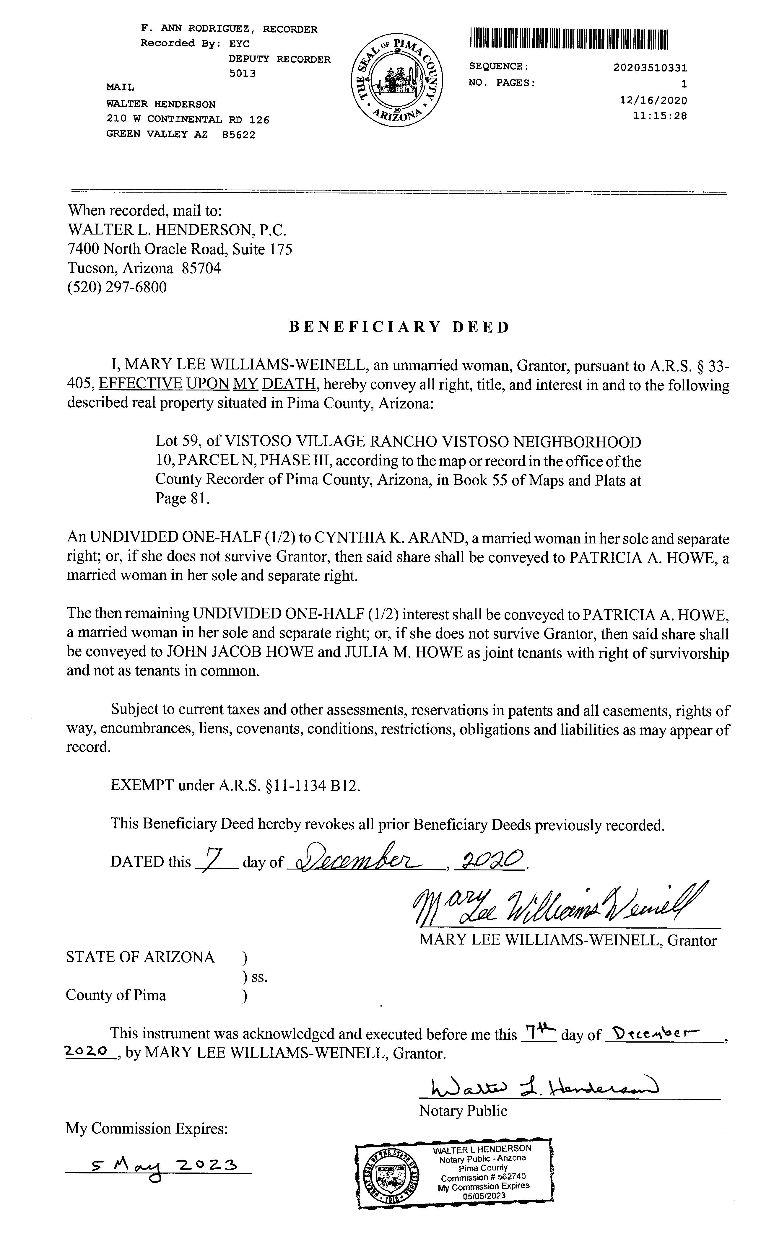 OWNER: WILLIAMS WEINELL MARY LEE AFFIDAVIT 2020 2480338 09/04/2020