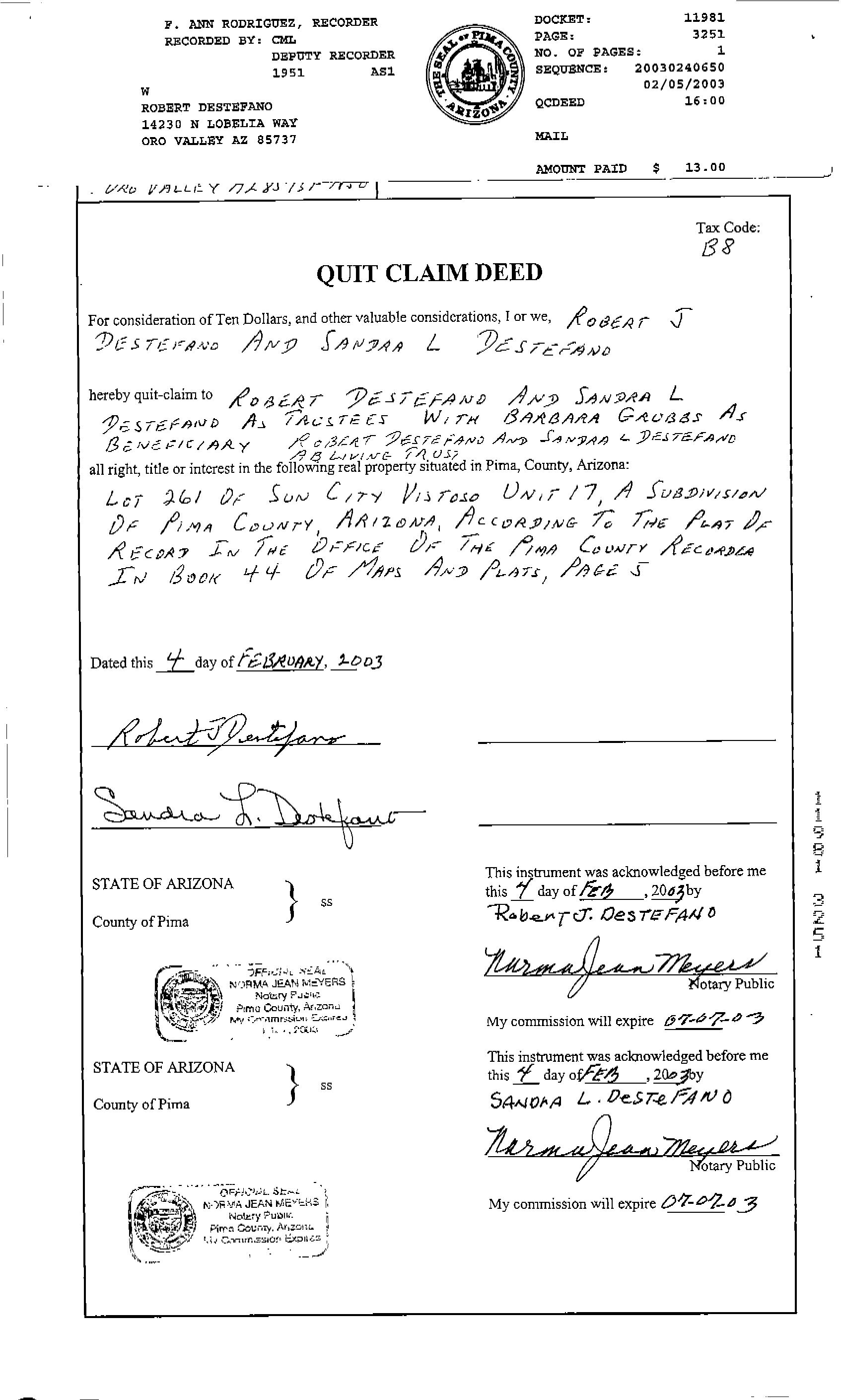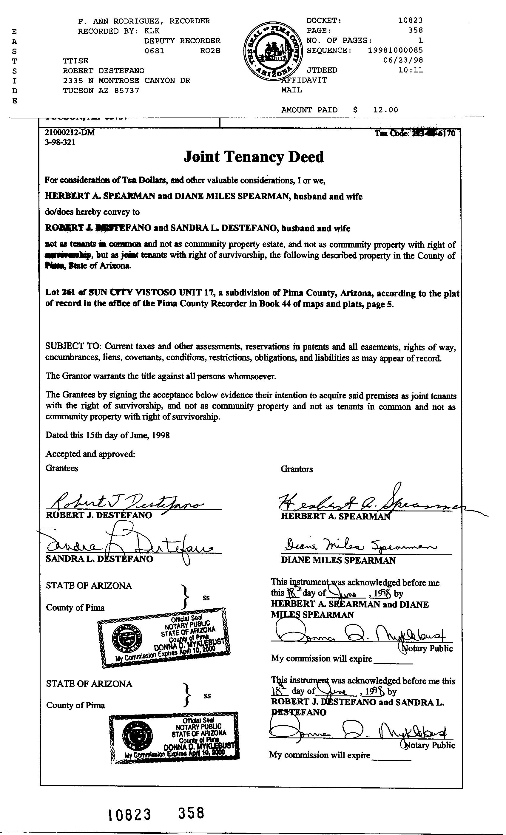 Owner Name : Destefano Robert J / Destefano Sandra L