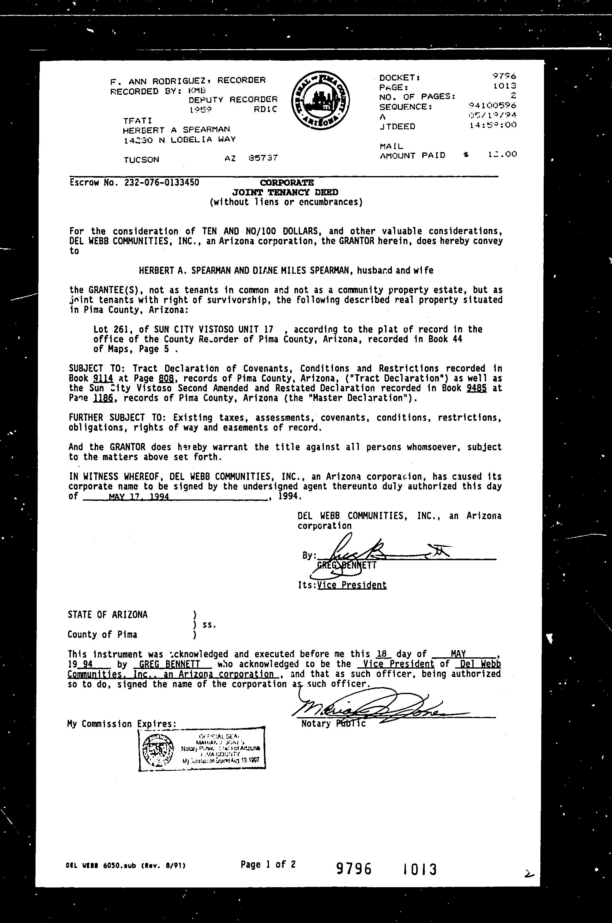 Prior Rec/Sale Date : 05/19/1994 / 05/00/1994