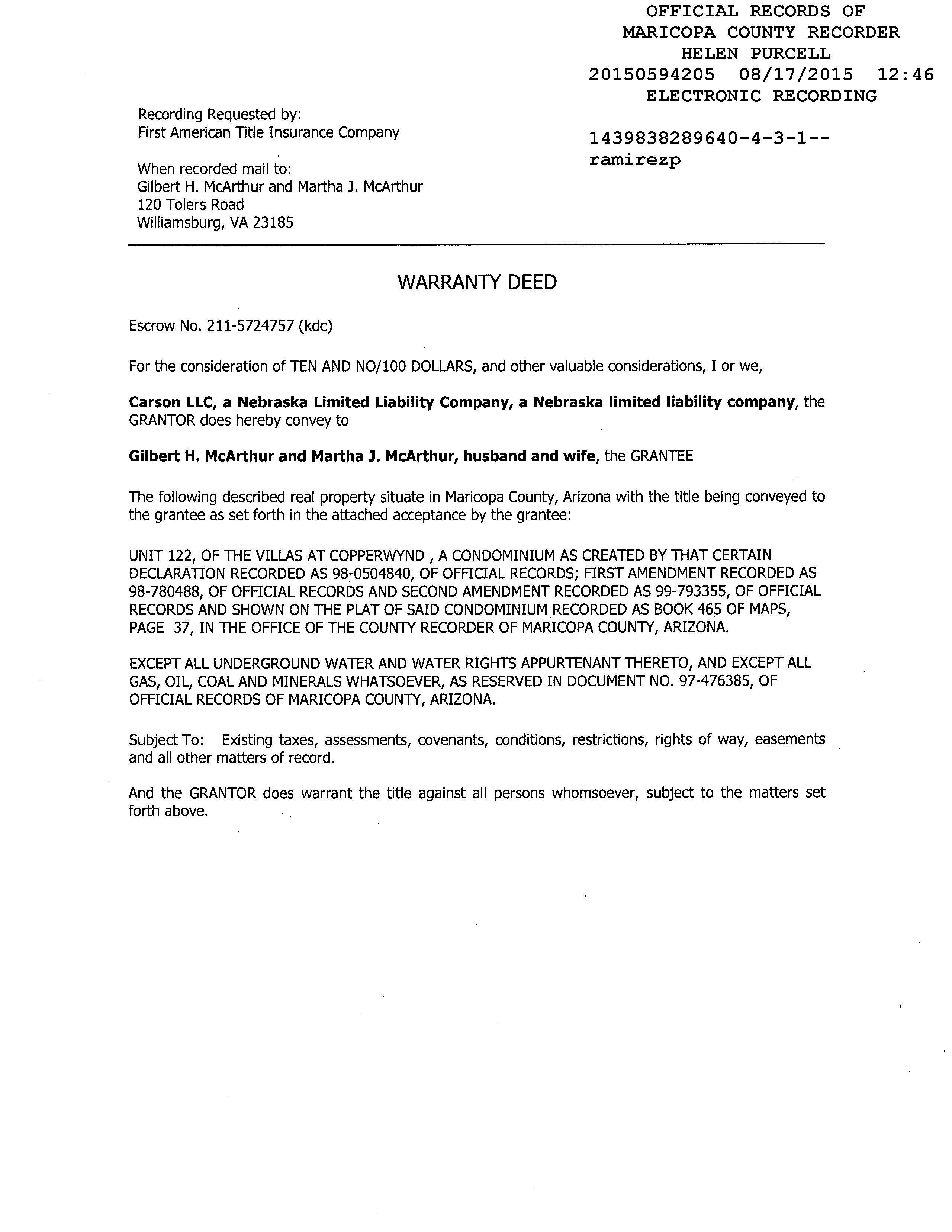 When all funds are deposited and conditions met, record documents with the County Recorder to transfer the real property to the buyer
