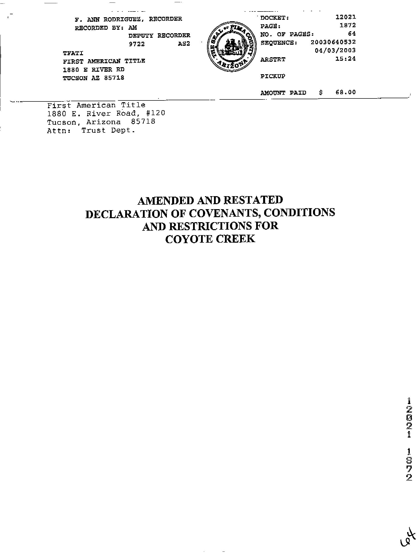 This information is furnished without fee and without benefit of a complete title search. No liability is assumed by First American Title. If it is desired that liability be assumed, you may apply for a policy of title insurance with First American Title Insurance Company.