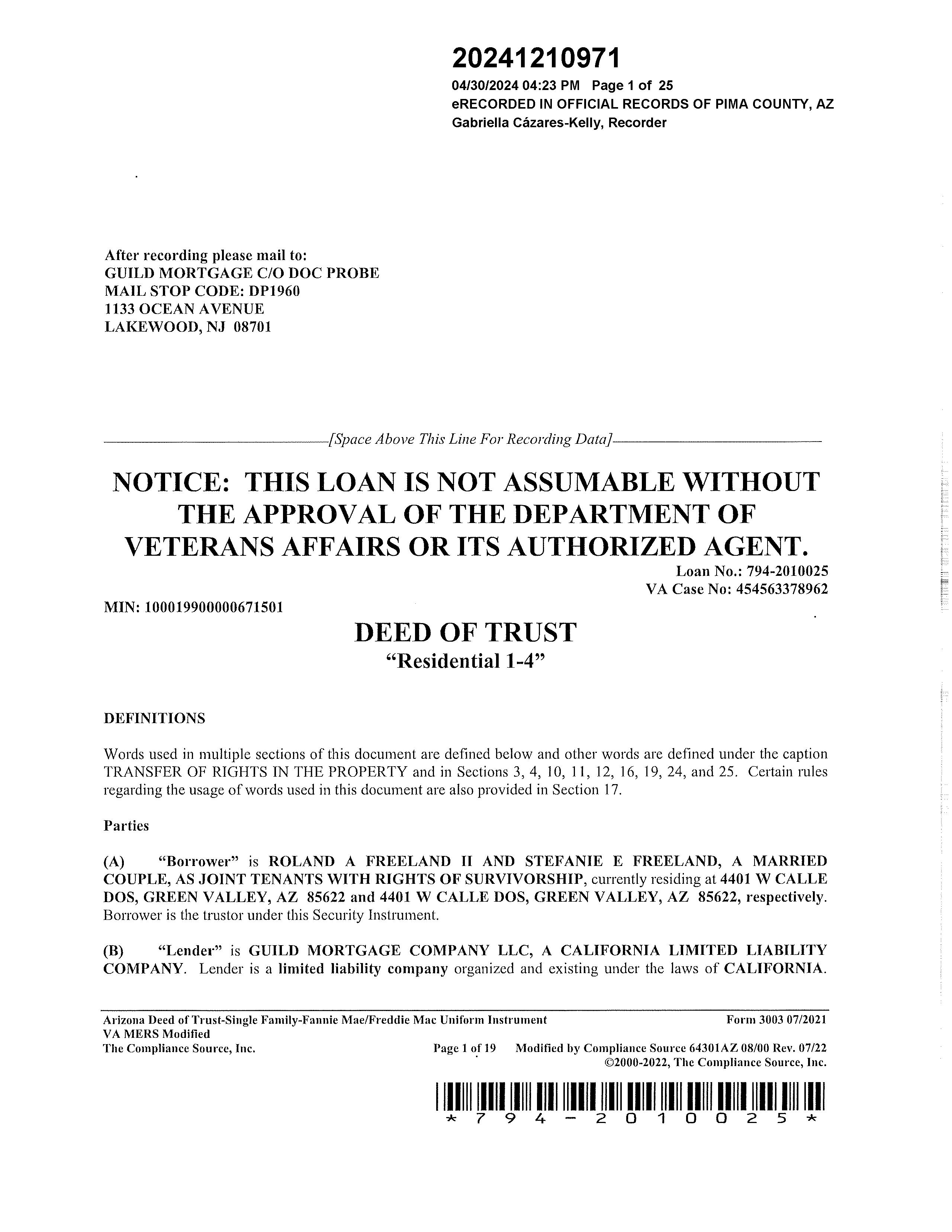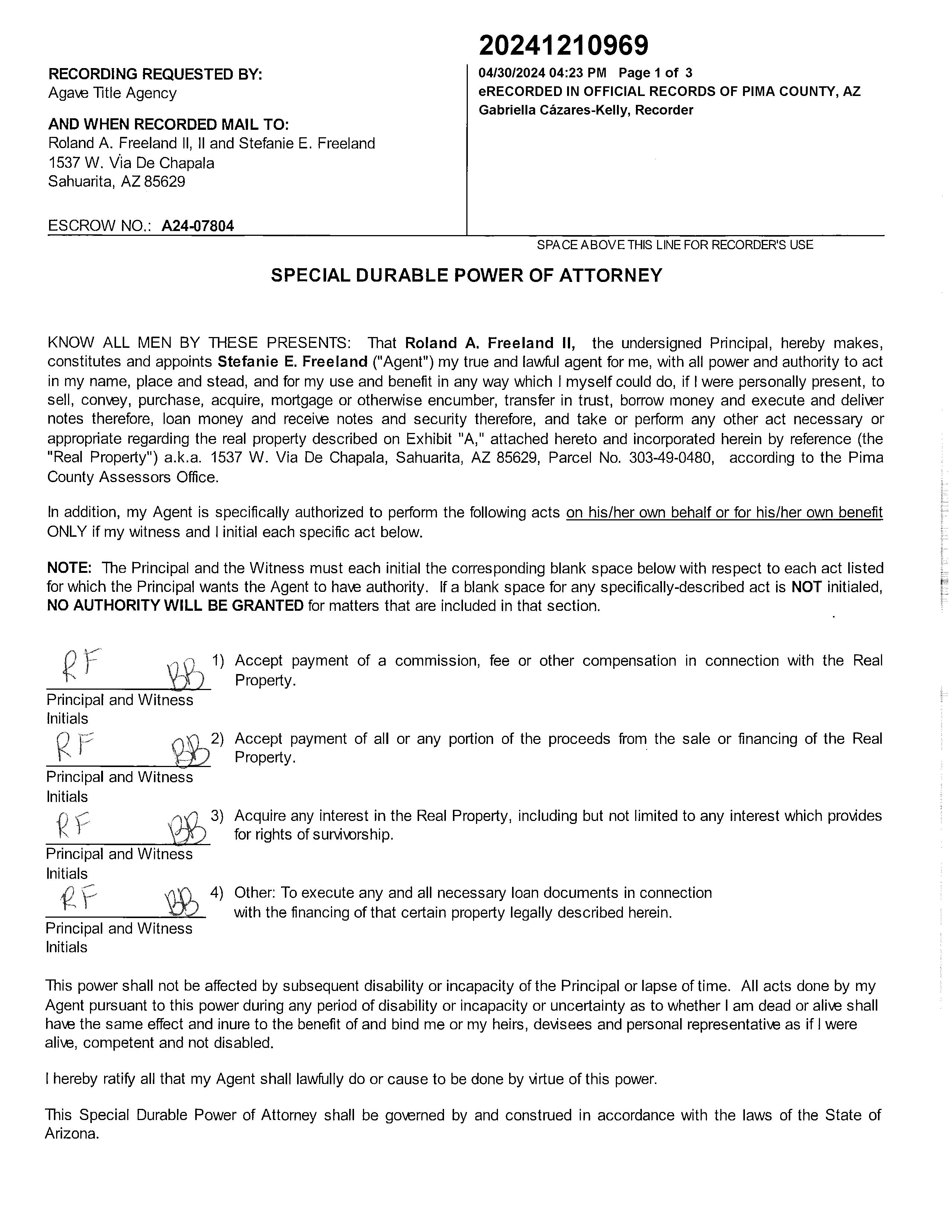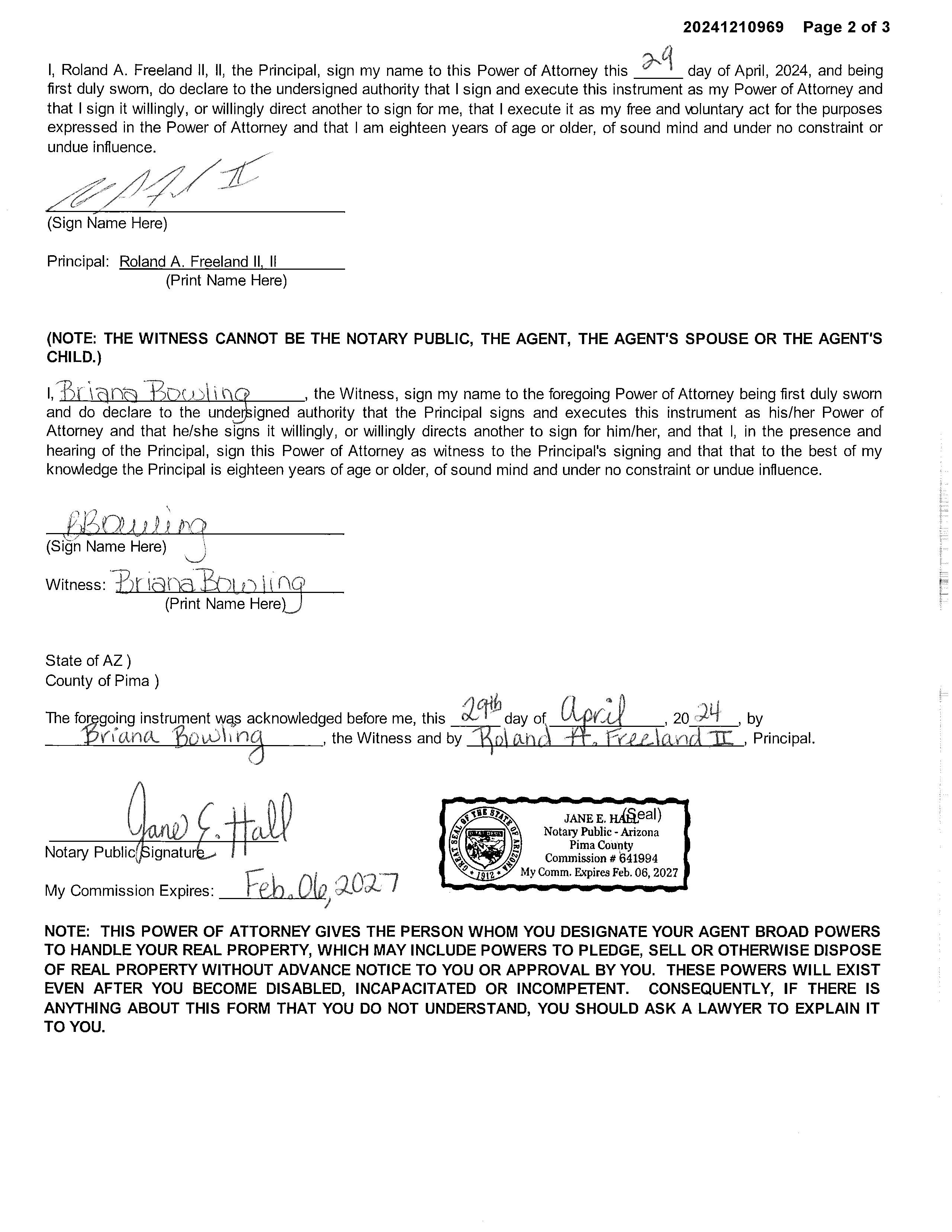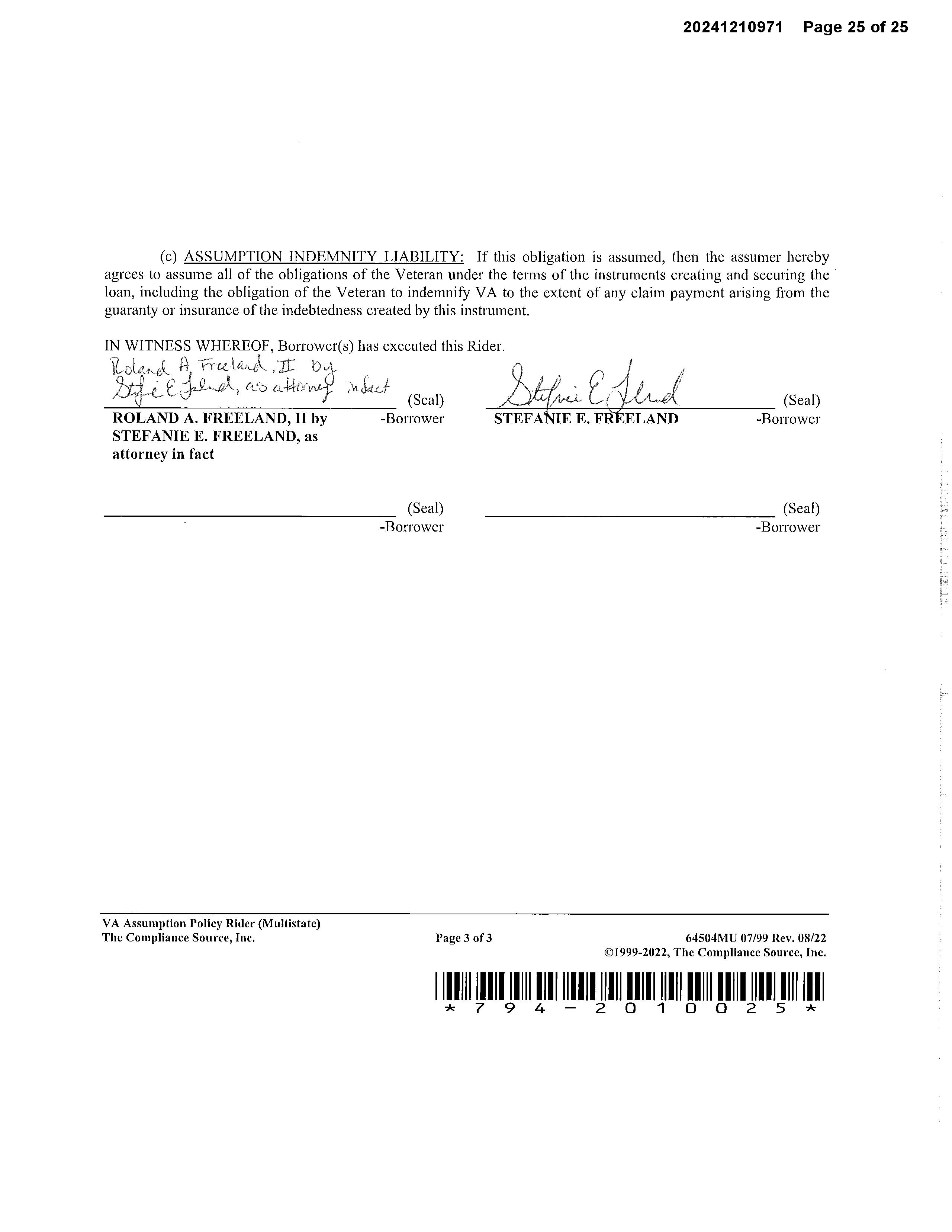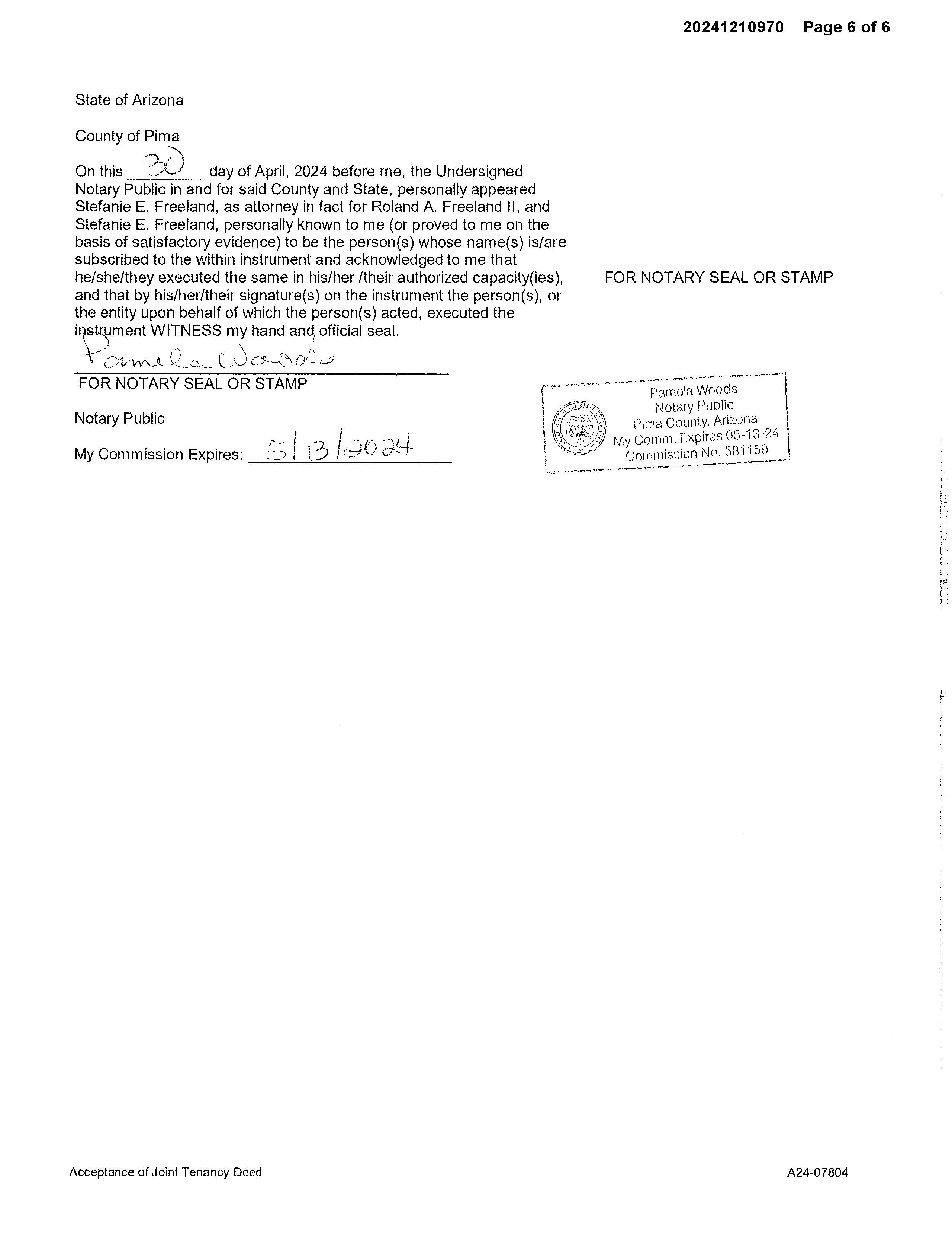OWNER: FREELAND ROLAND & STEFANIE AFFIDAVIT 2024 1210970 04/30/2024
