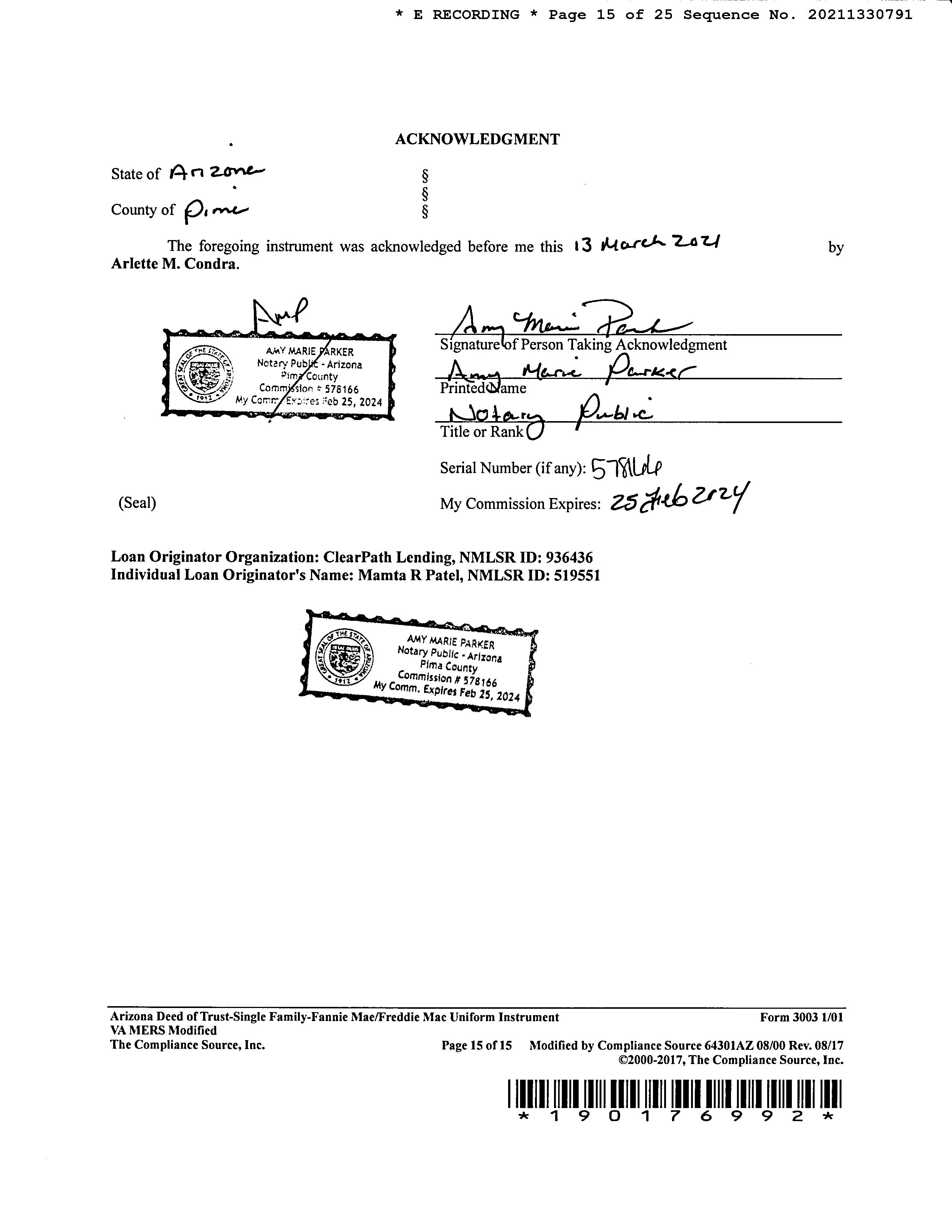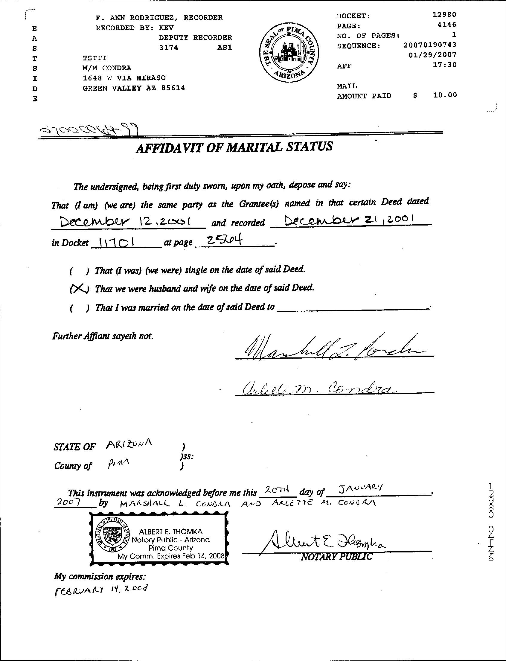 Mailing Address : 1648 W Via Mirasol, Green Valley AZ 85622-4601 C064