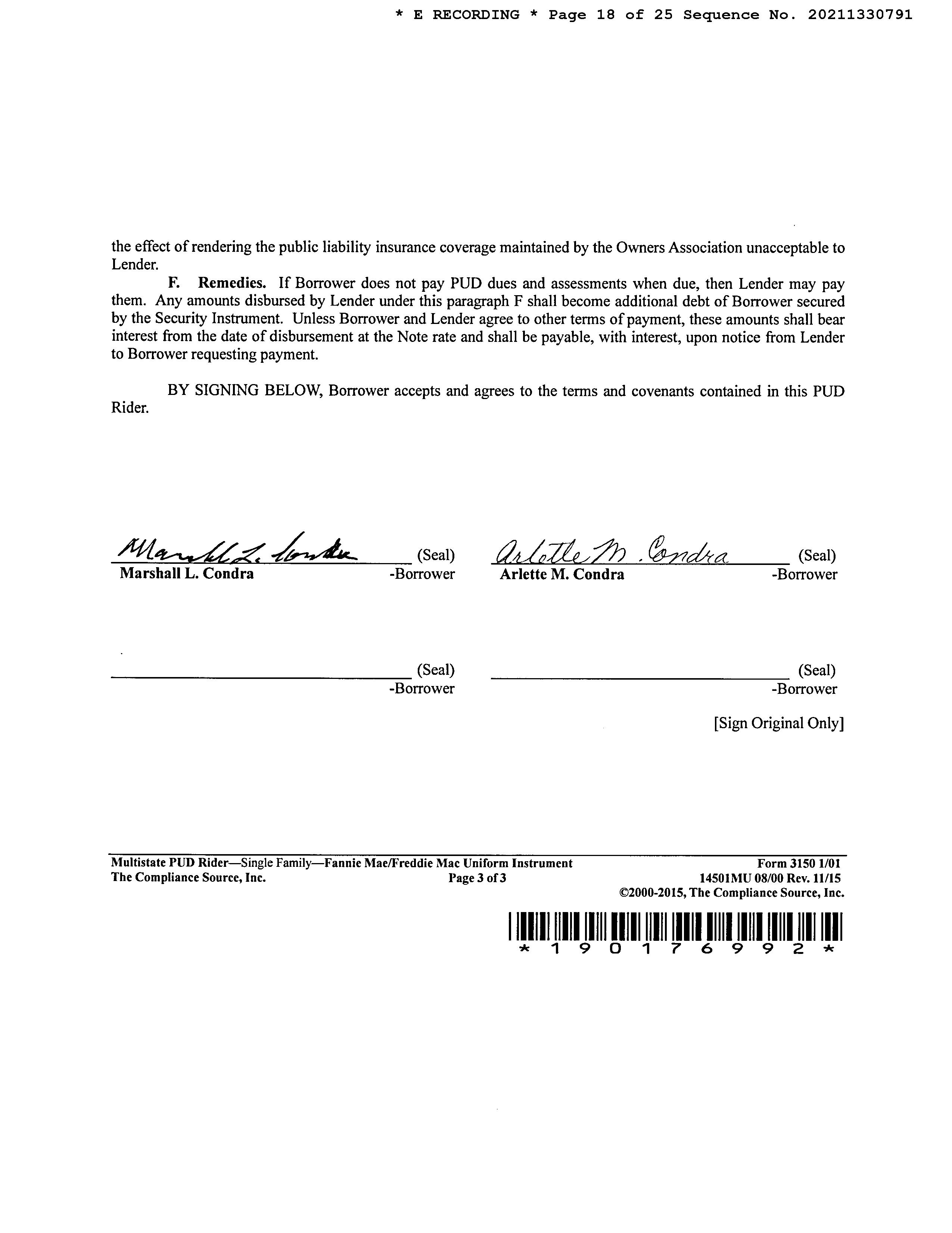 Owner Name : Condra Marshall L / Condra Arlette M Jt
