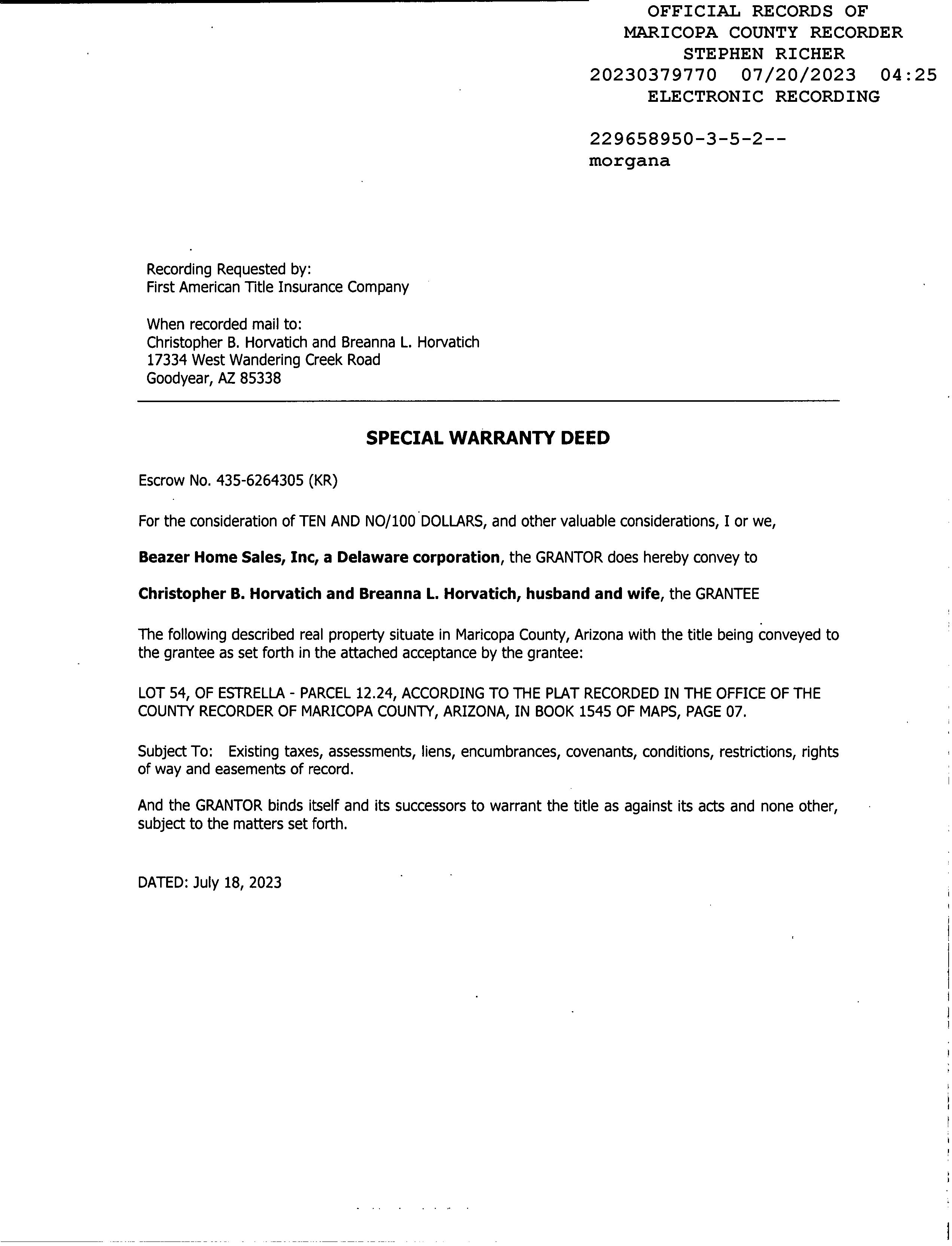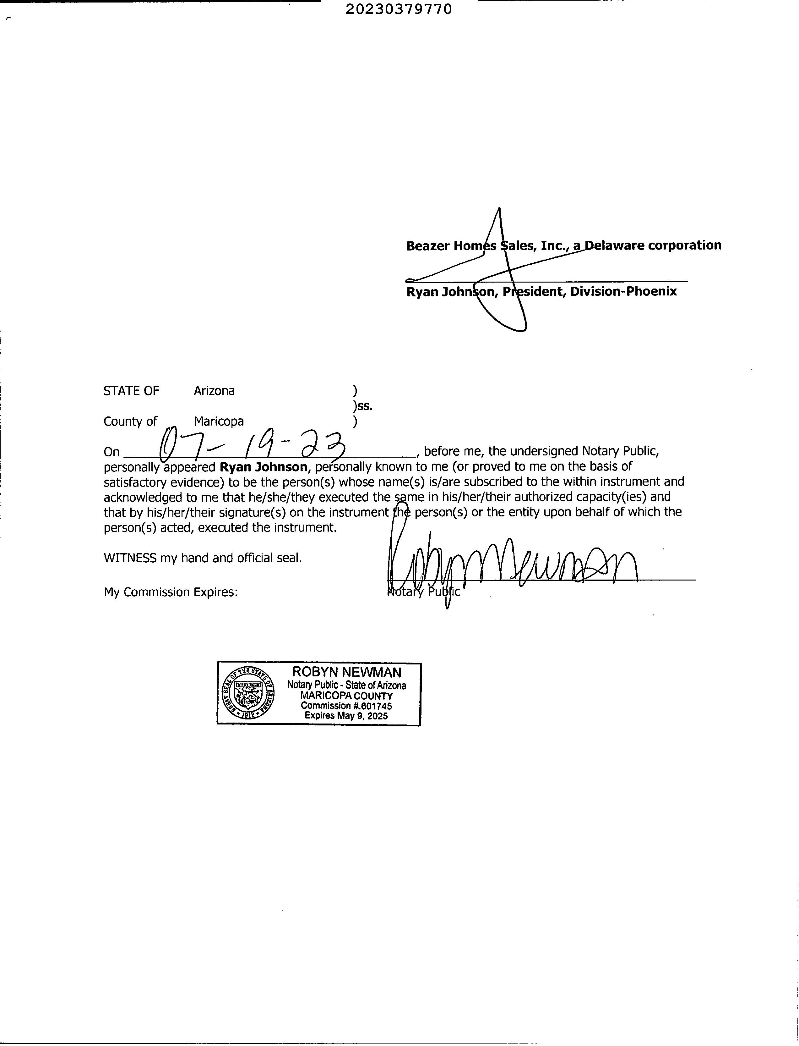 OWNER: BEAZER HOMES HOLDINGS LLC 2023 379770 07/20/2023