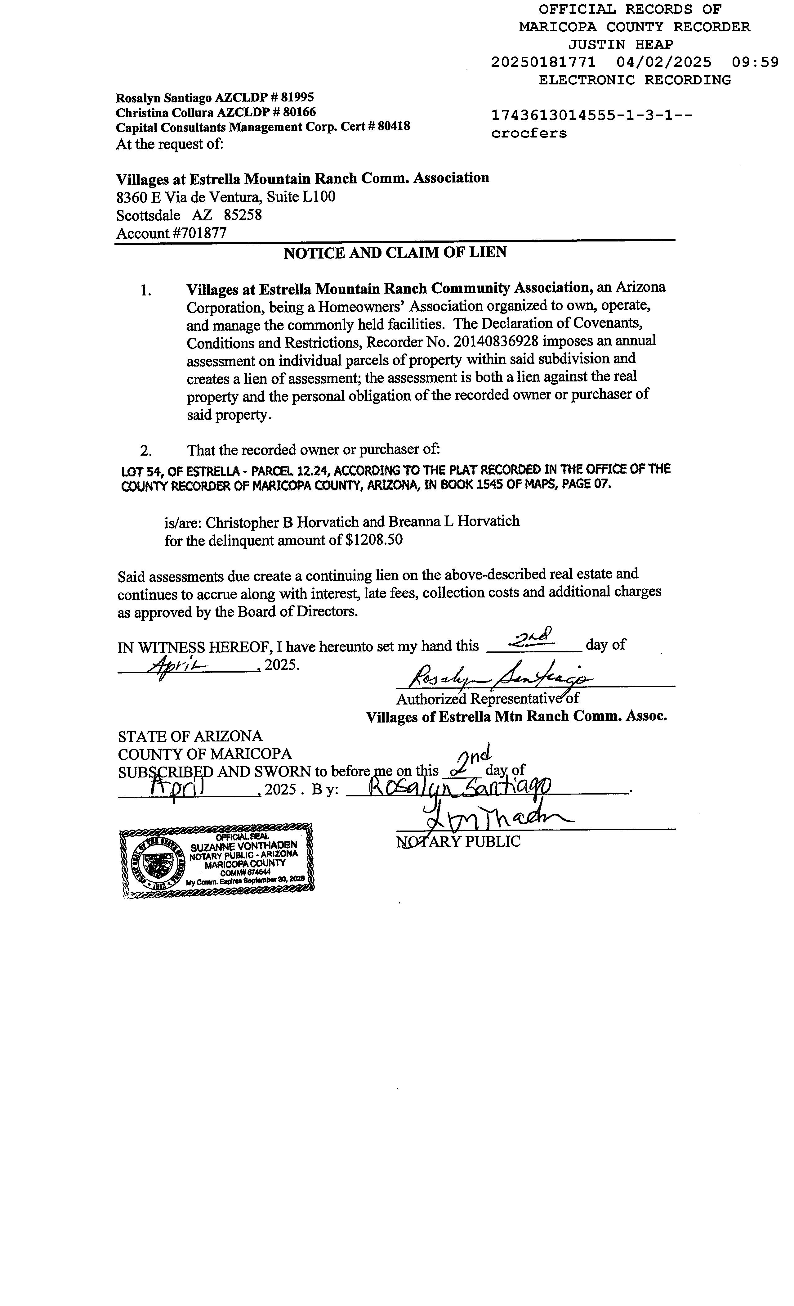 Legal Description : Lot 54 Estrella Parcel 12.24 Mcr 1545-07