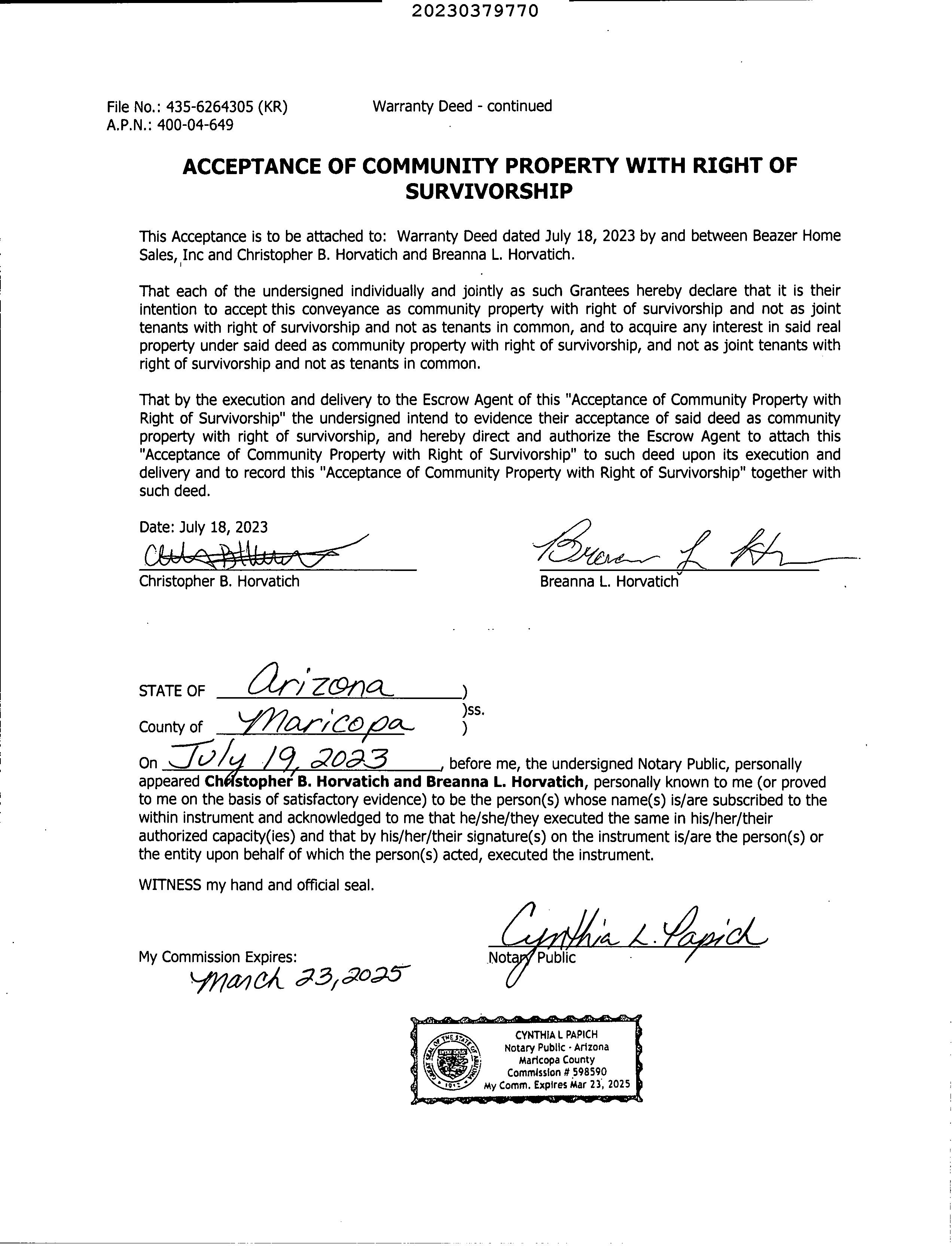 Owner Name : Horvatich Christopher B / Horvatich Bre
