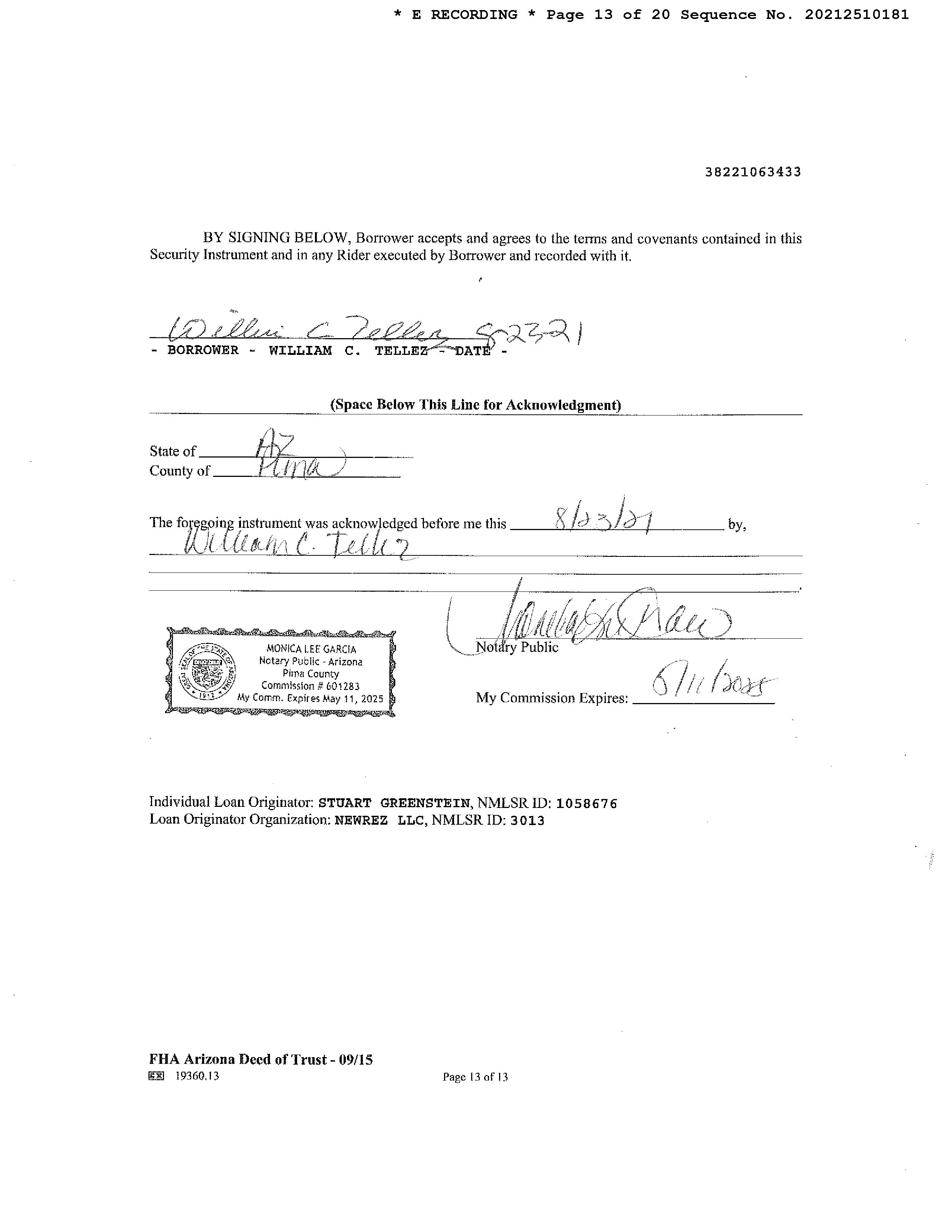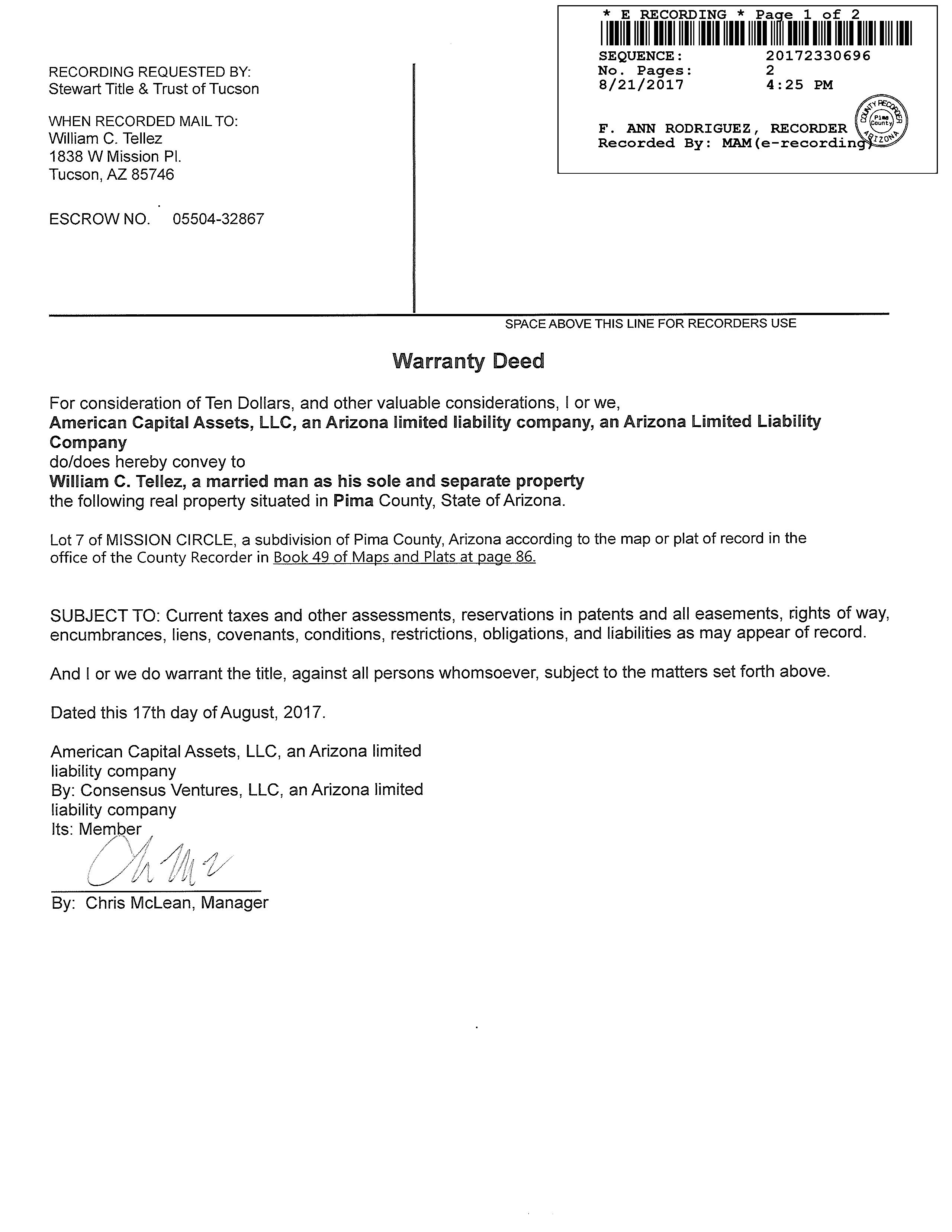 OWNER: TELLEZ WILLIAM C AFFIDAVIT 2017 2330696 08/21/2017
