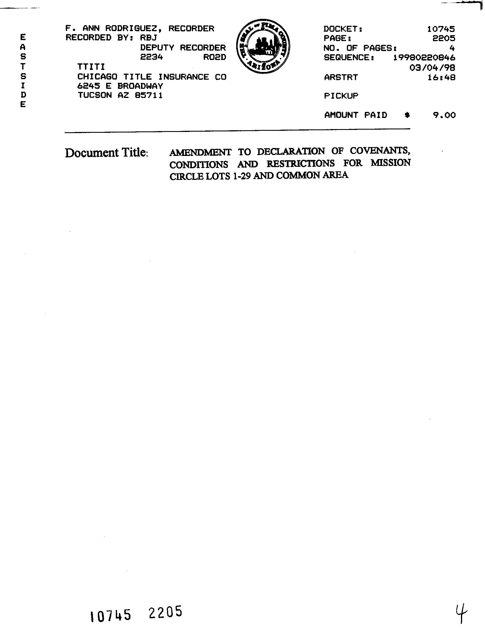 Mailing Address : 1838 W Mission Pl, Tucson AZ 85746-1167 C009