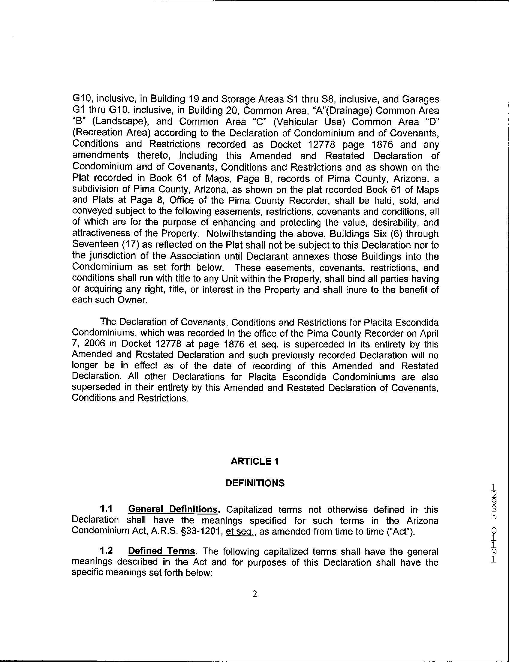 Legal Description : Placita Escondida Condominiums Bldg 13 Unit 204 & 1/204% Int Common Area County : Pima, Az Market Area : 12 Census Tract / Block : 47.10 / 2 APN : 108-25-4430