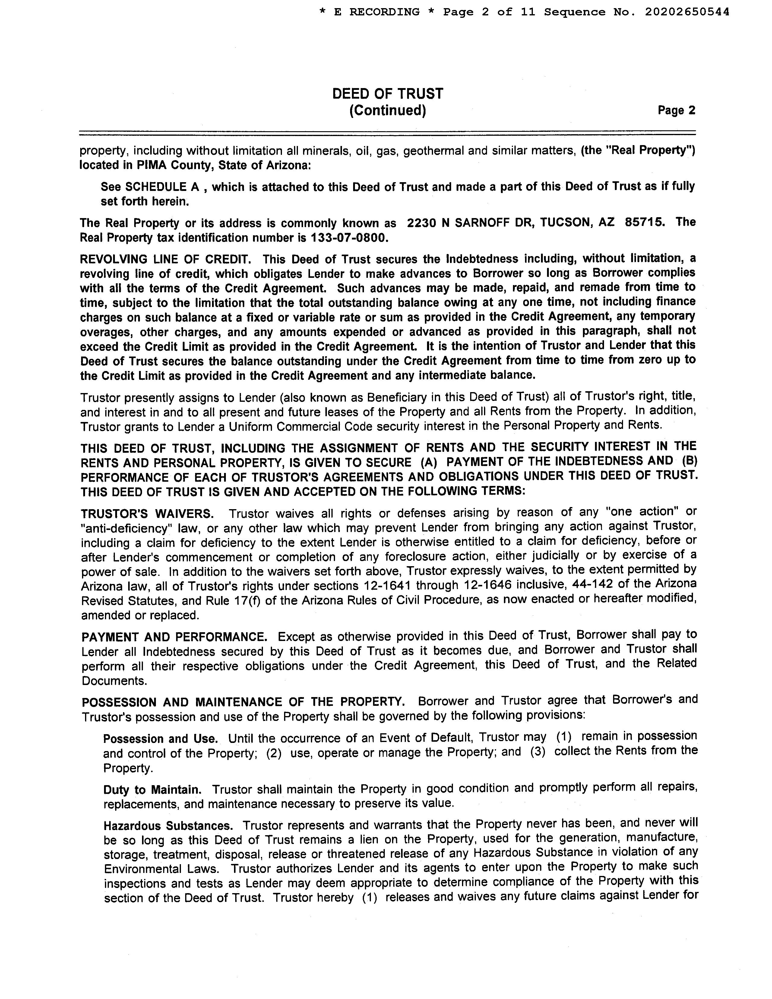 Subject Property : 2230 N Sarnoff Dr Tucson AZ 85715