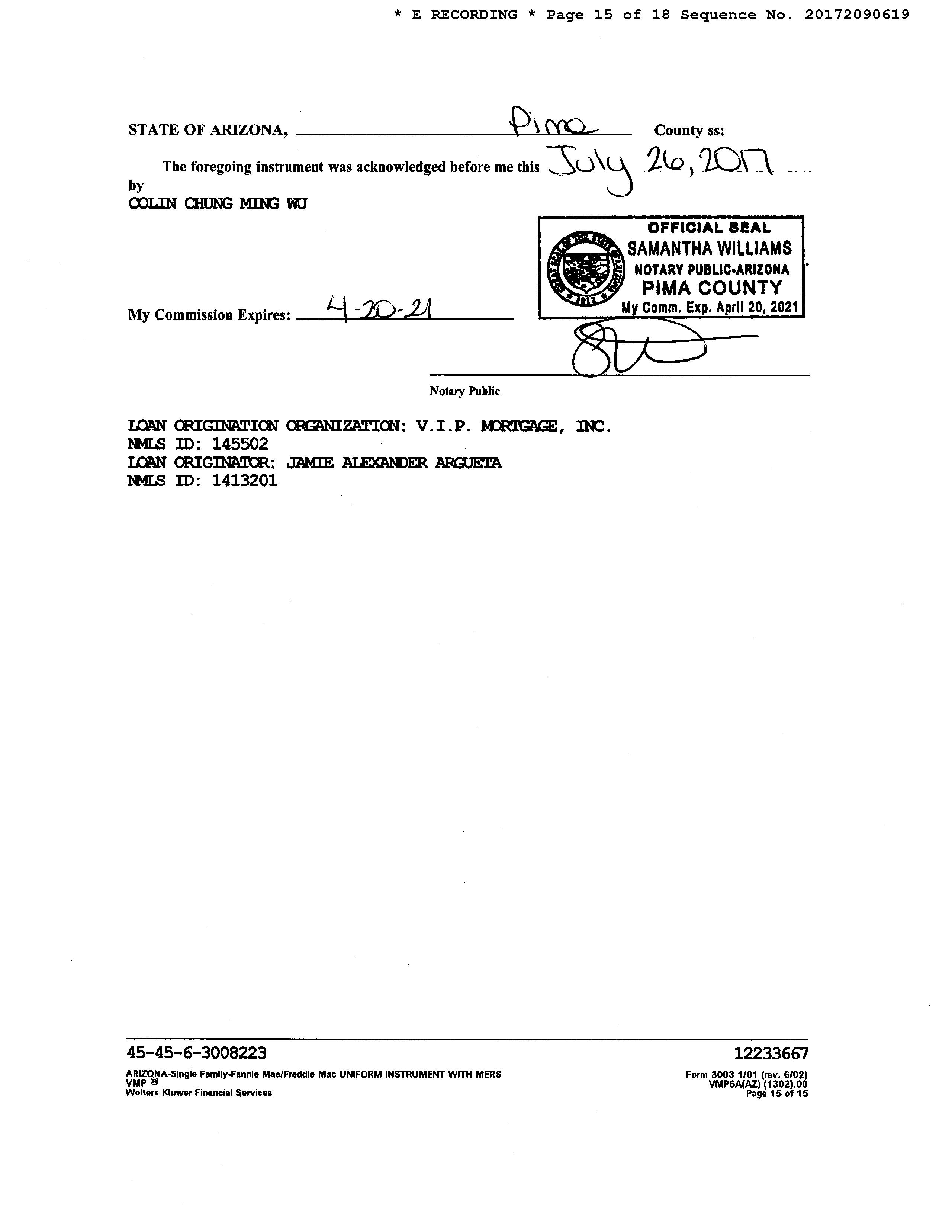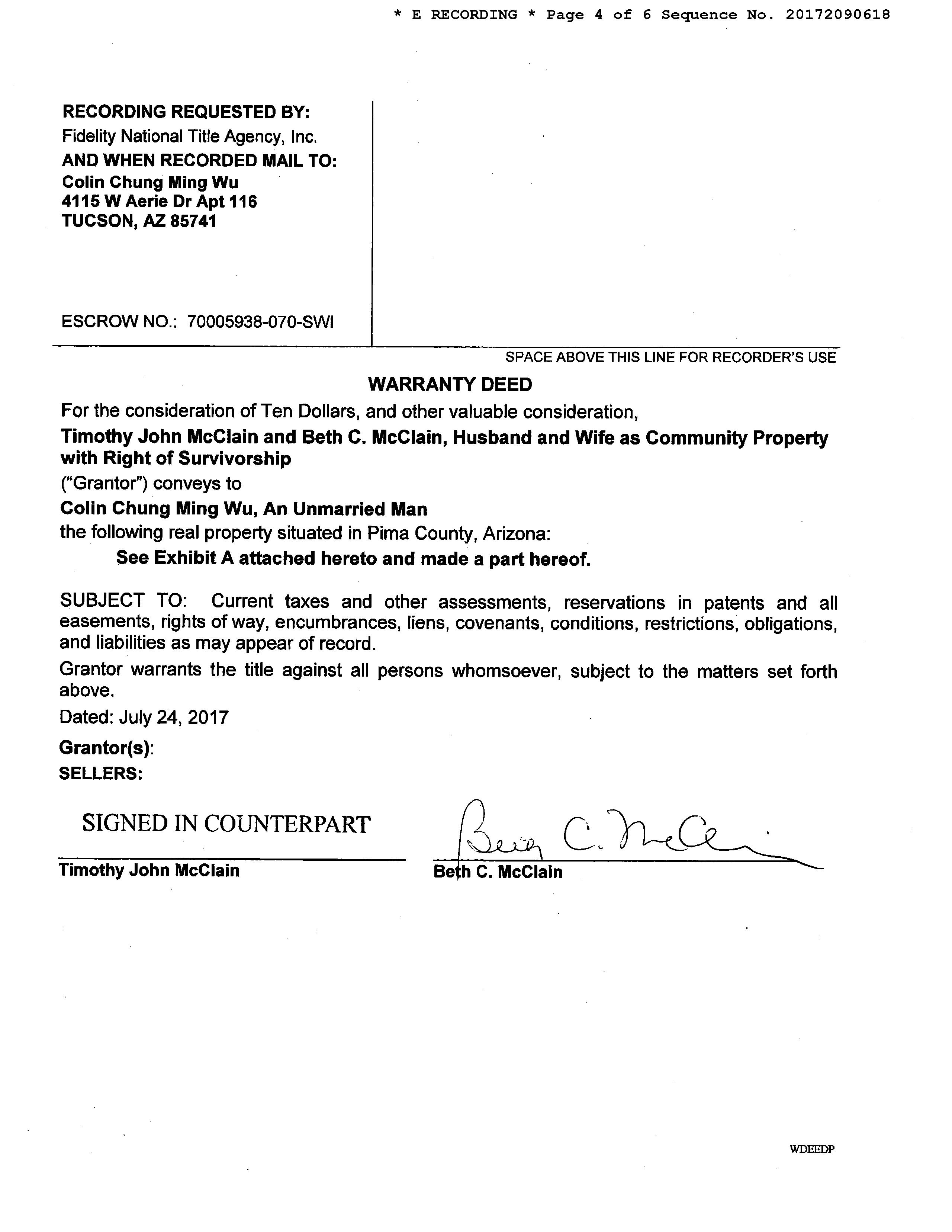Owner Name: Wu Colin Chung Ming / APN / Alternate APN: 125-07-3690 / Deed Type: Warranty Deed