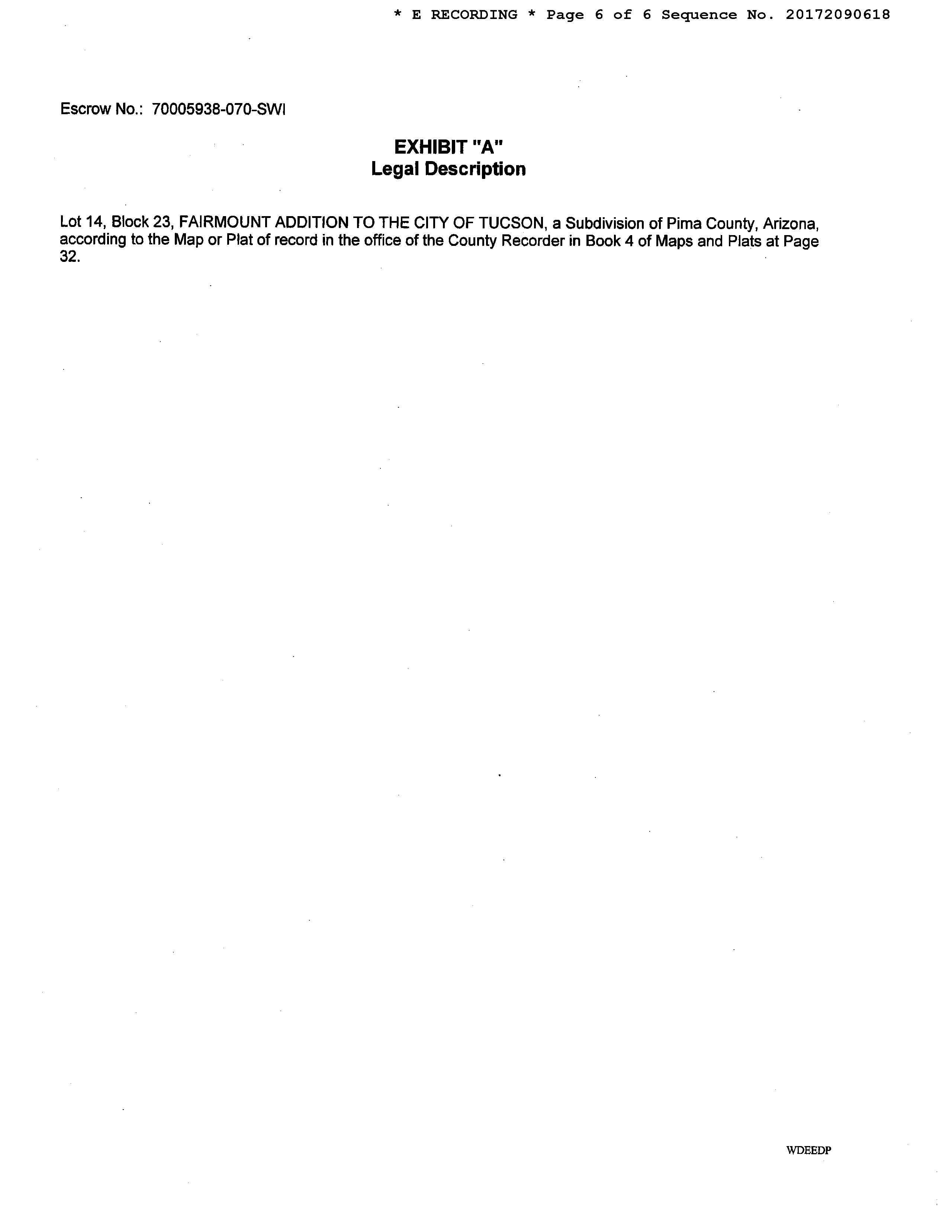Legal Description : Fairmount Lot 14 Blk 23 Historic Property (potential Additional Tax) Per Ars 42-12104(a)