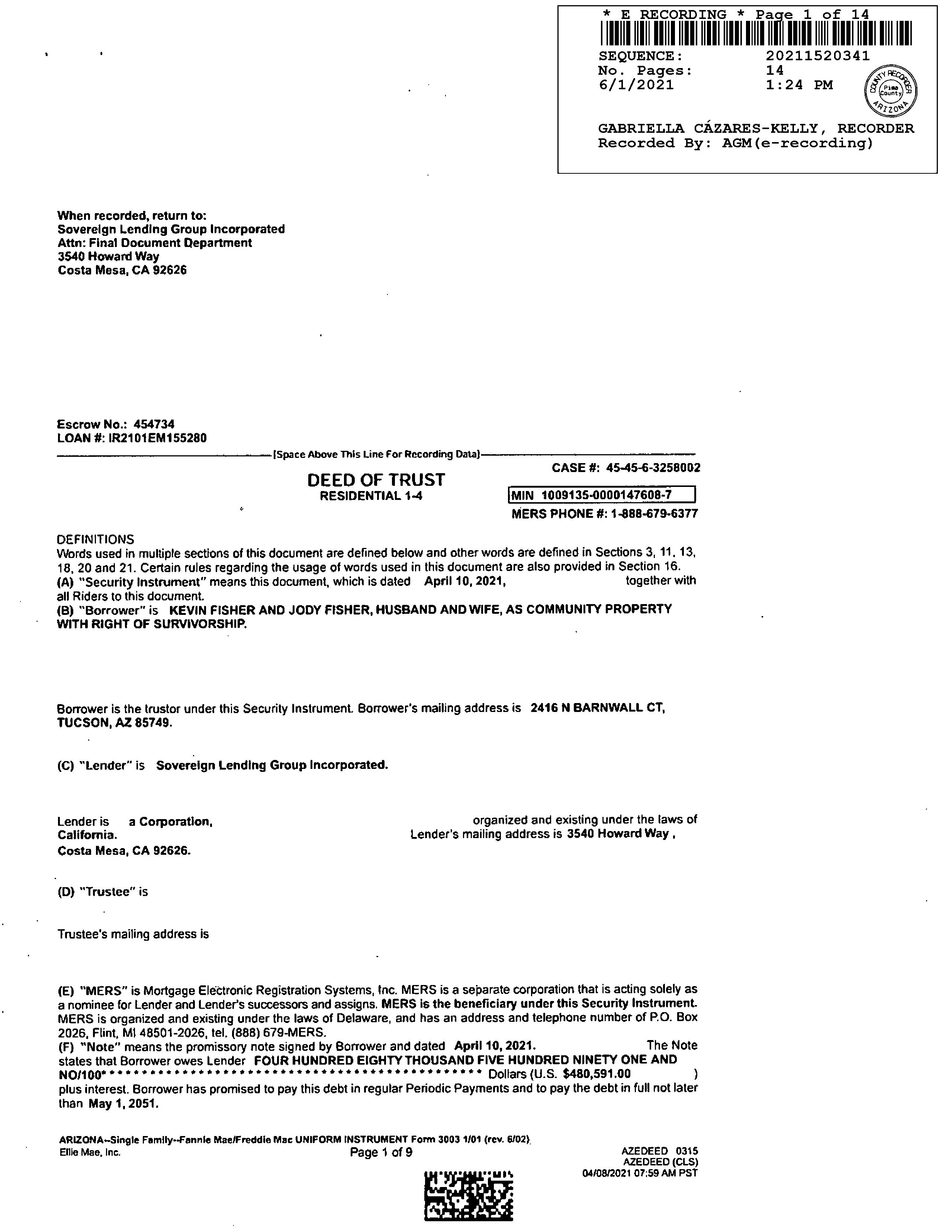 Mailing Address : 2416 N Barnwall Ct, Tucson AZ 85749-5203 R034