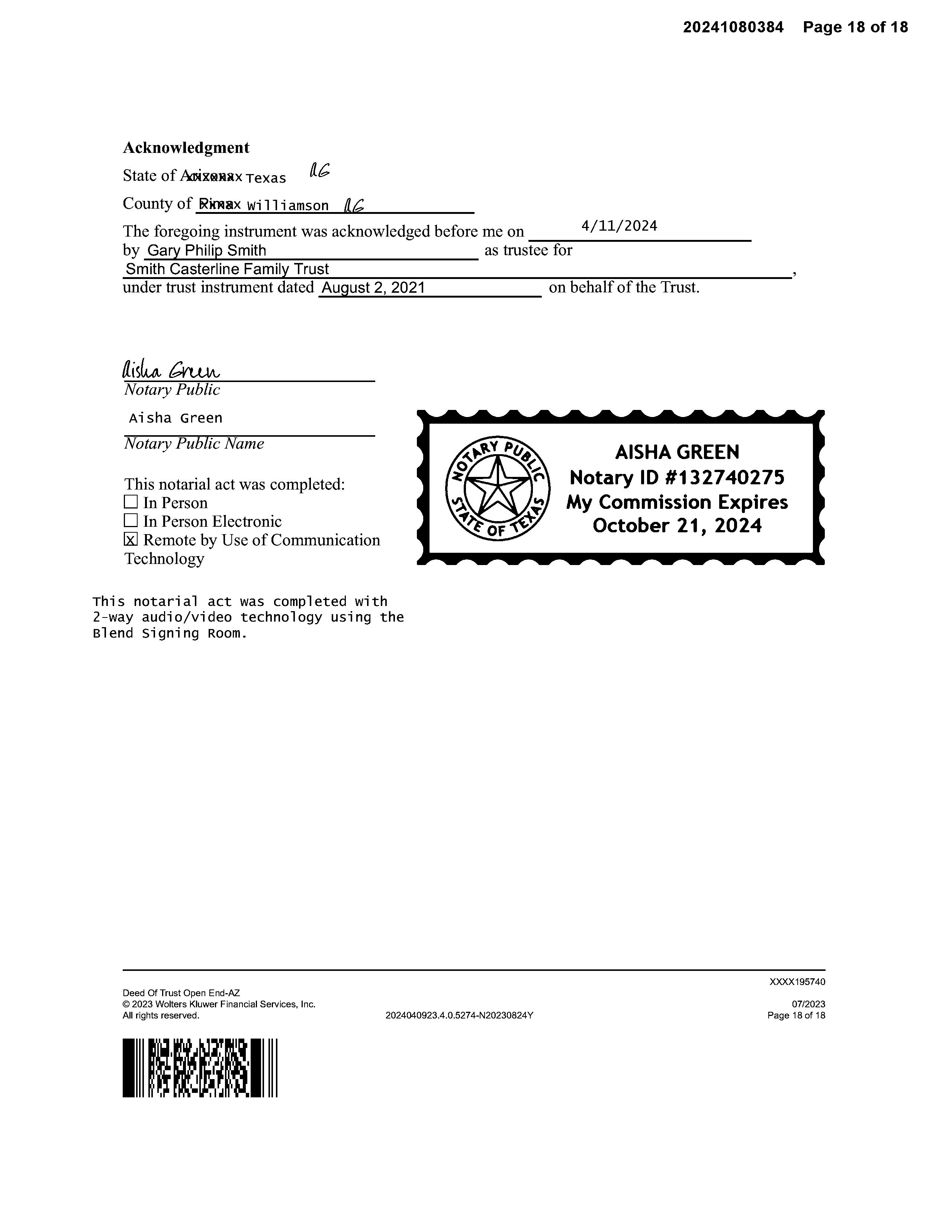 OWNER: SMITH CASTERLINE FAMILY TRU