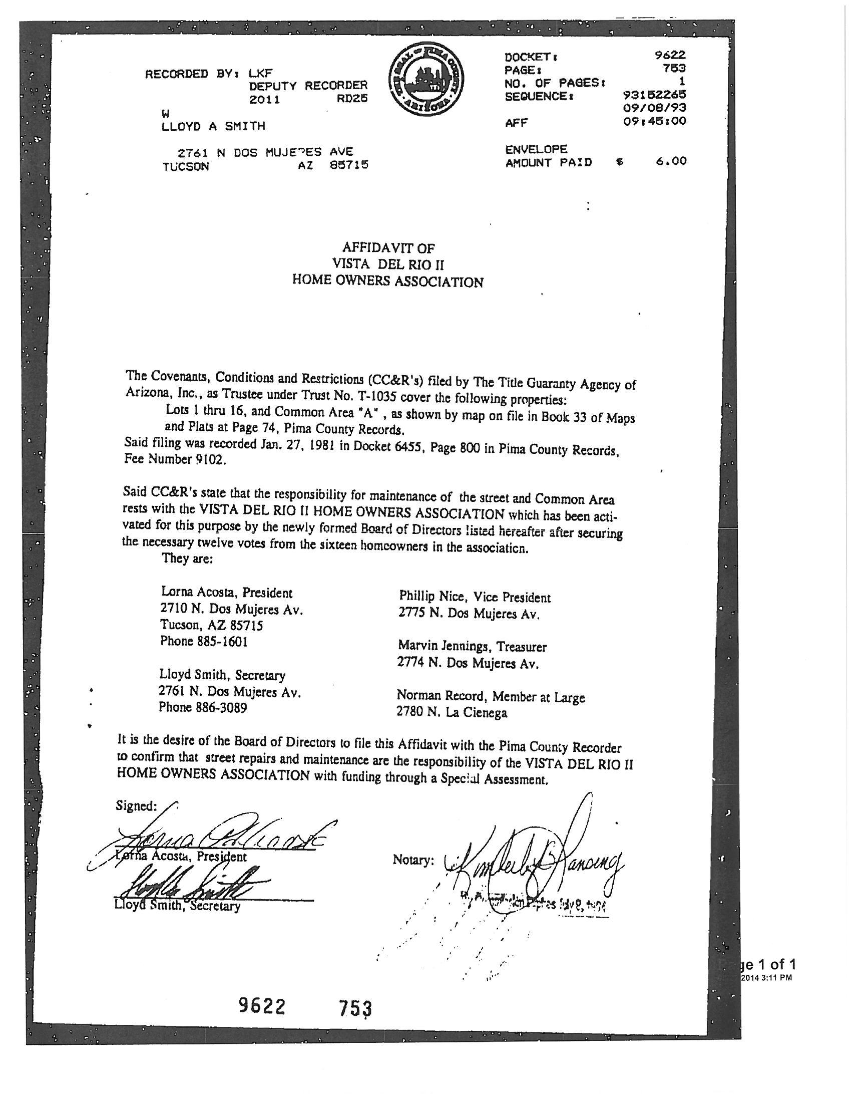 Subdivision / Tract: Vista Del Rio / Lot Size: 8,308