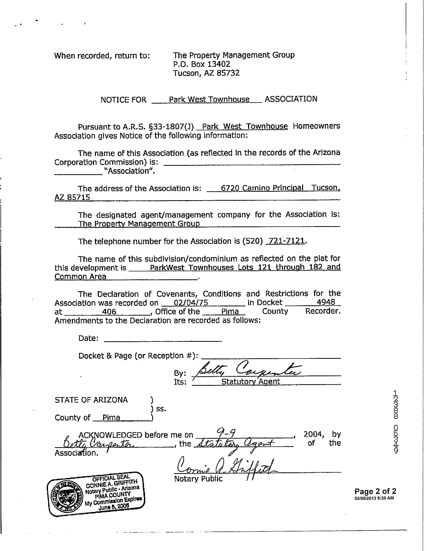 210 W Continental Road, Ste. 248 Green Valley, AZ 85622 phone 520-625-1095