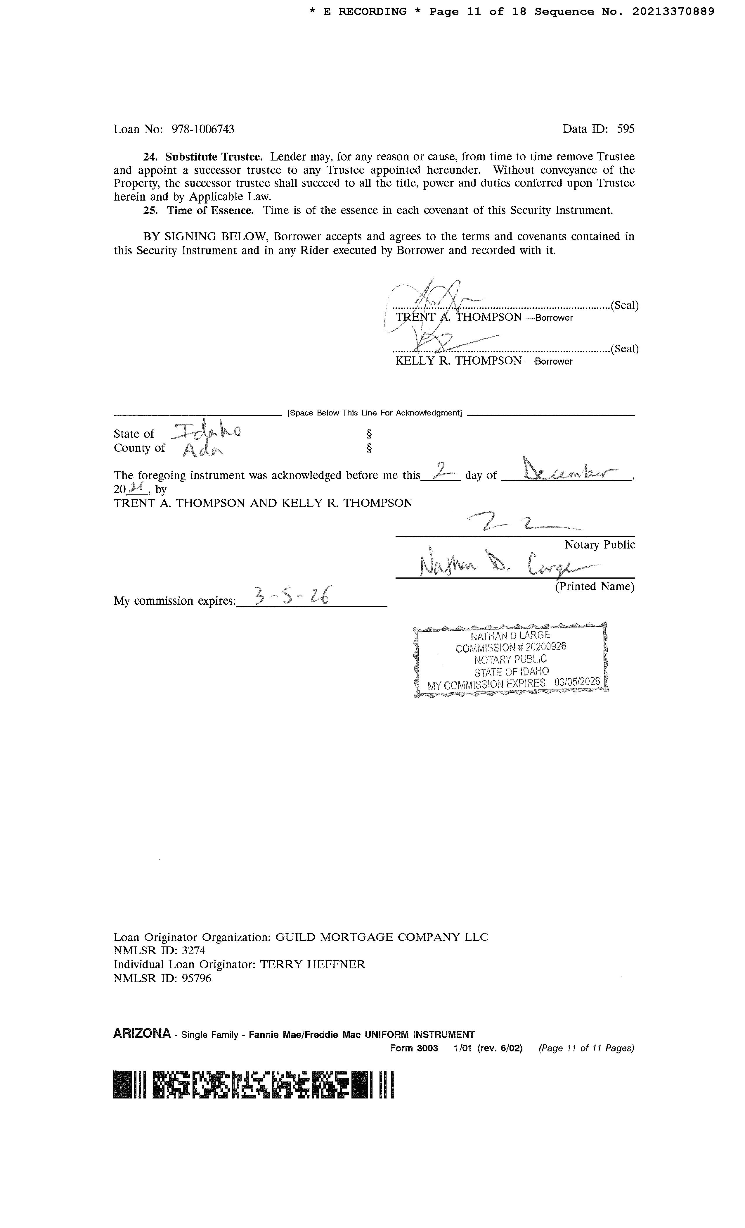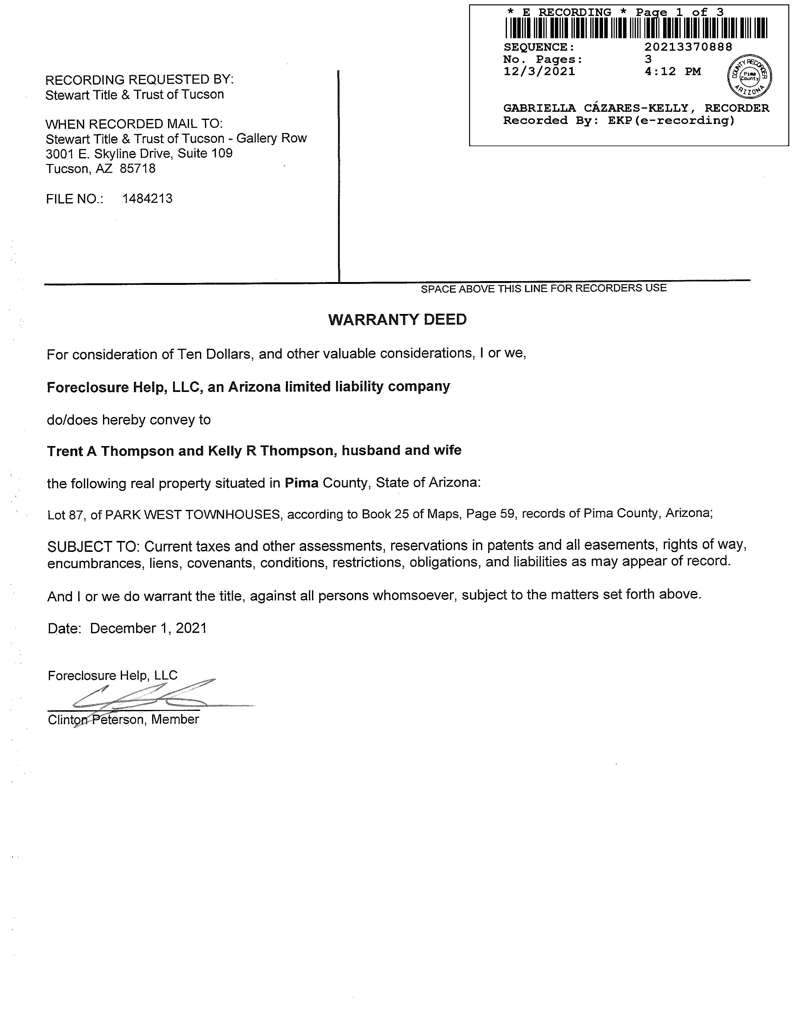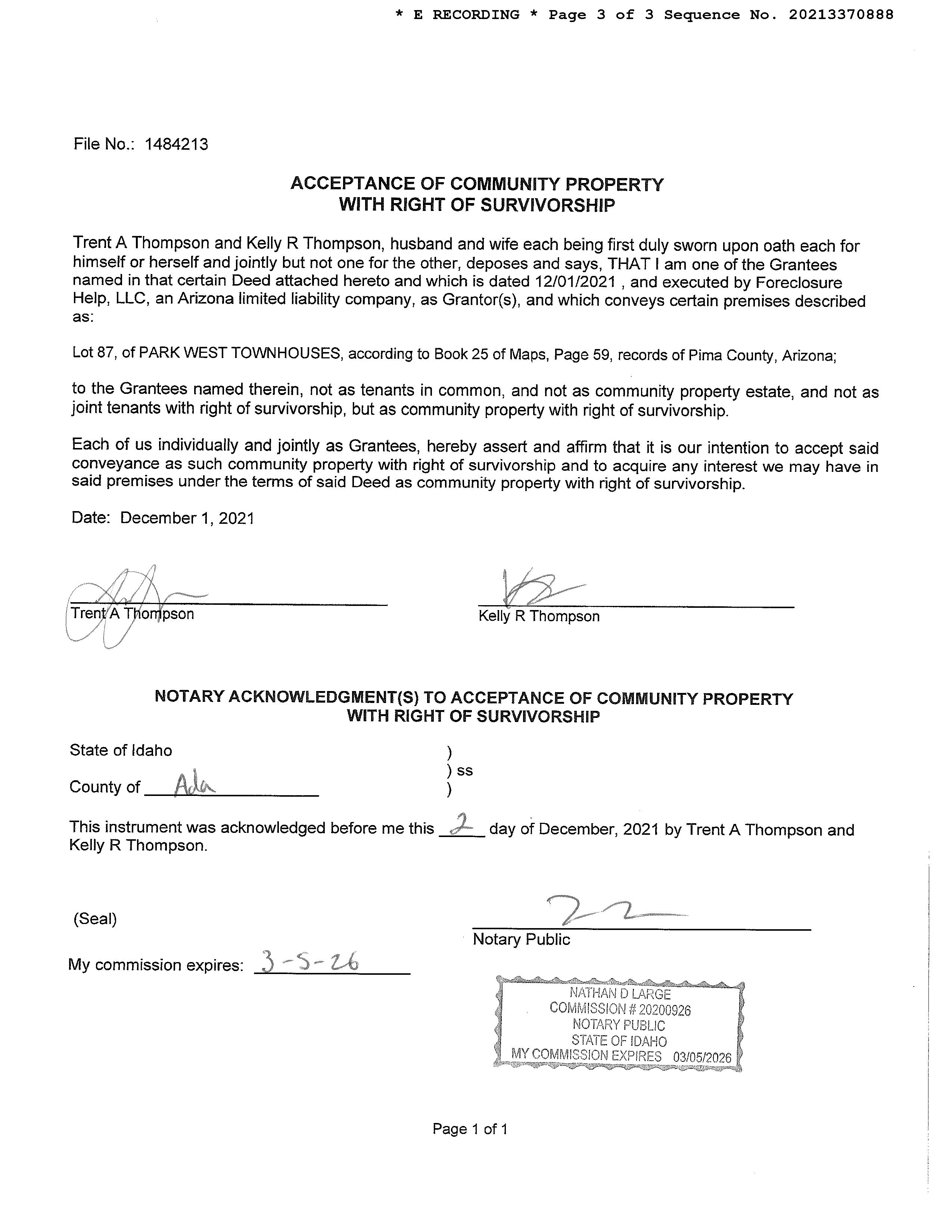 OWNER: THOMPSON TRENT & KELLY AFFIDAVIT 2021 3370888 12/03/2021