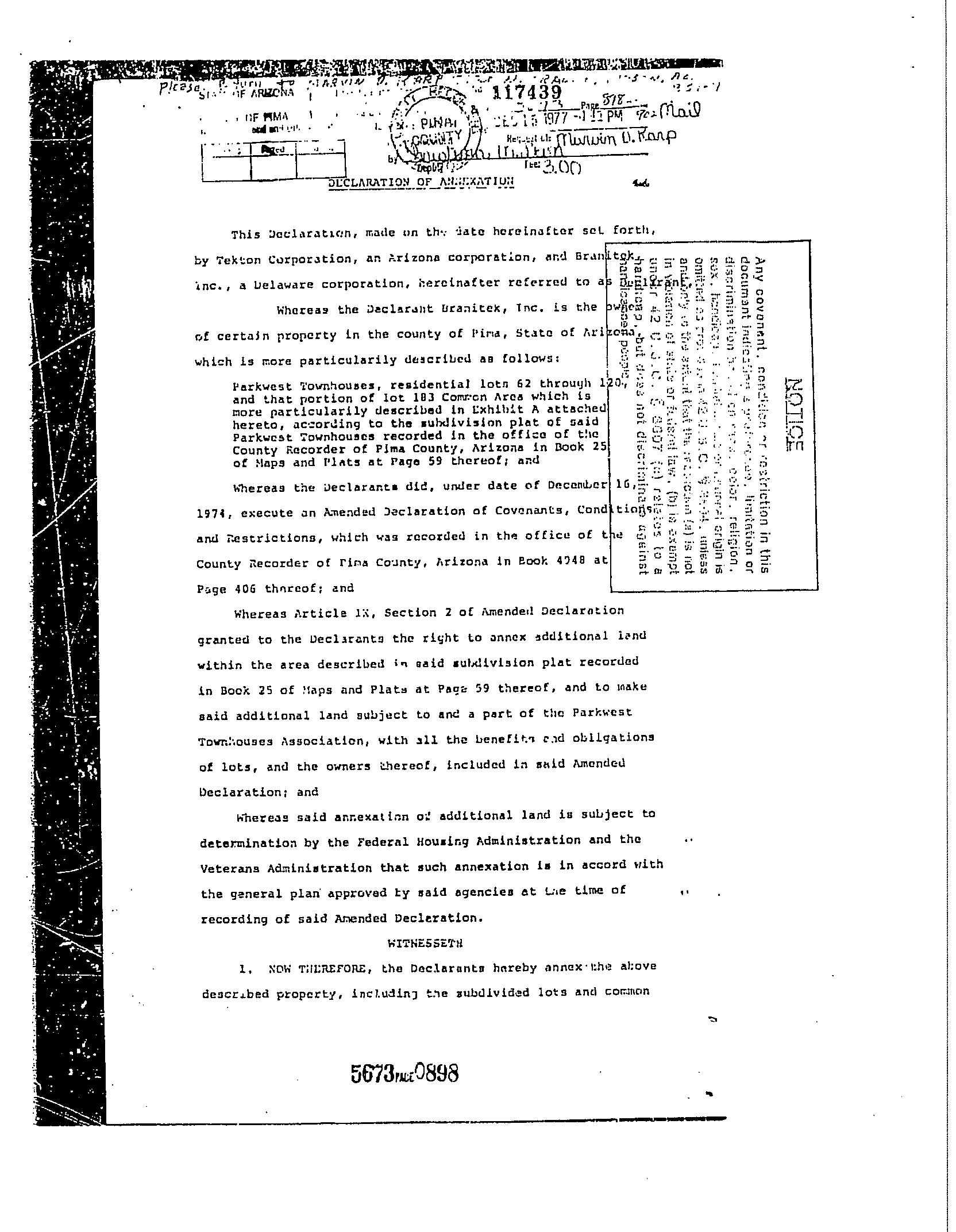 This information is furnished without fee and without benefit of a complete title search. No liability is assumed by First American Title. If it is desired that liability be assumed, you may apply for a policy of title insurance with First American Title Insurance Company.