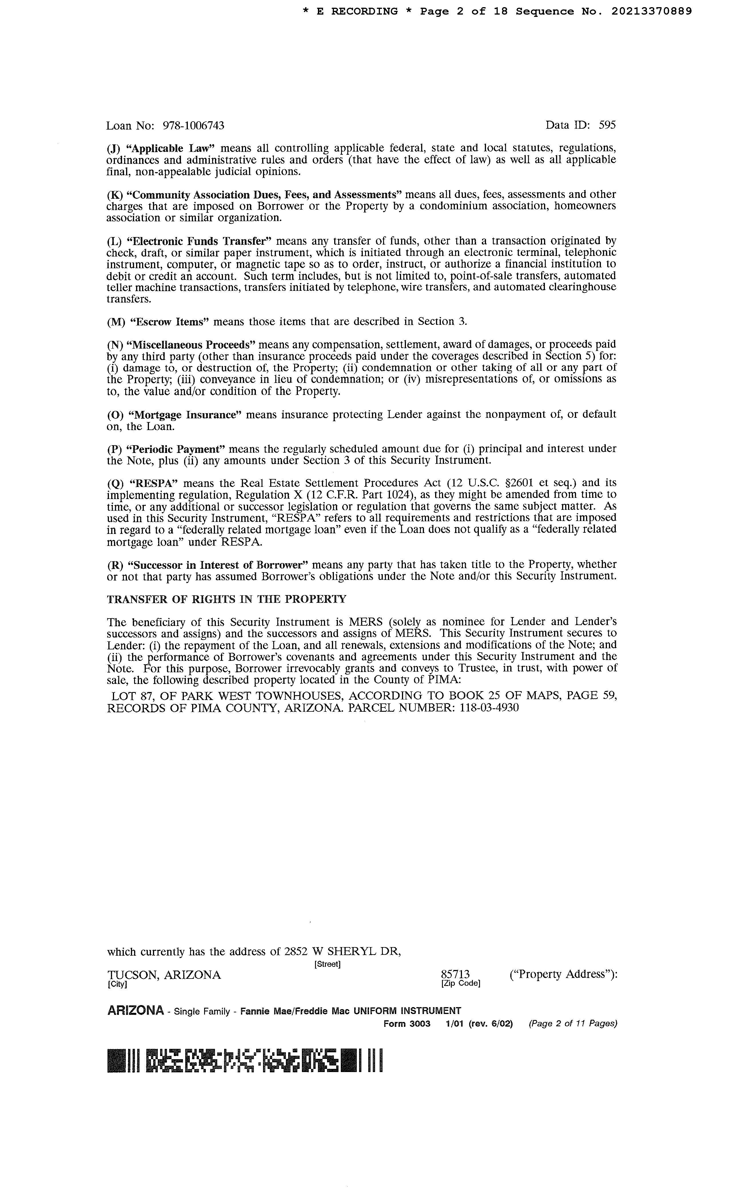 SITUS: 2852 W SHERYL DR TUC